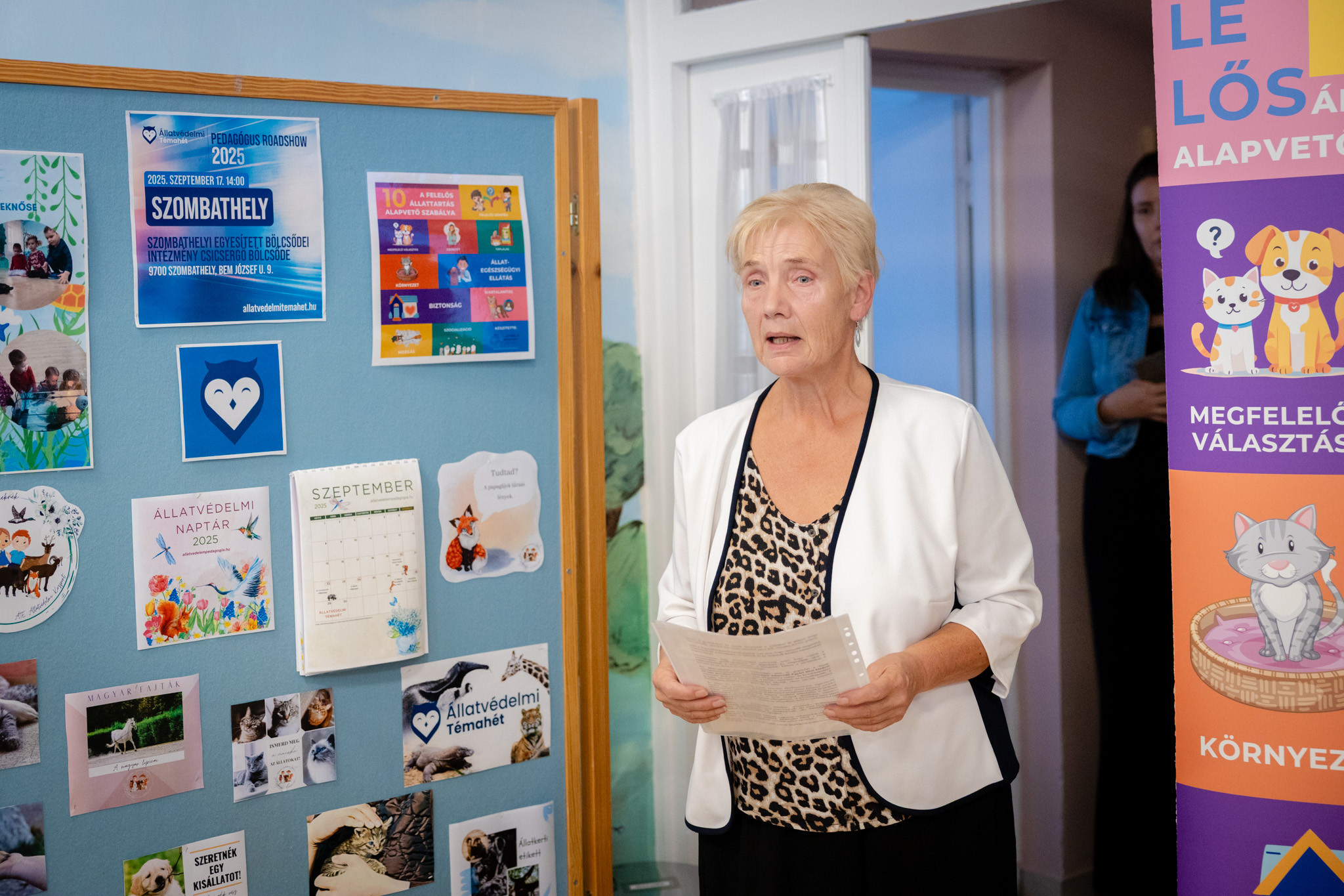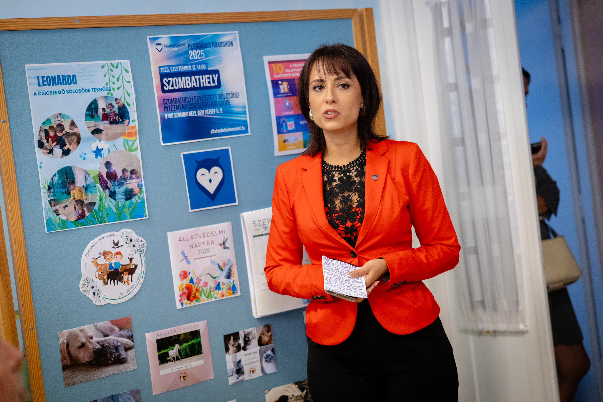 Szombathelyre érkezett az Állatvédelmi Témahetet és az állatvédelem-pedagógiát népszerűsítő Pedagógus Roadshow: szeptember 17-én a Szombathelyi EBI, Csicsergő Bölcsőde előadótermében pedagógusoknak, szakembereknek tartott előadást dr. Koska Hedvig. Az eseményen köszöntőt mondott Bokányi Adrienn, Szombathely MJV tanácsnoka.