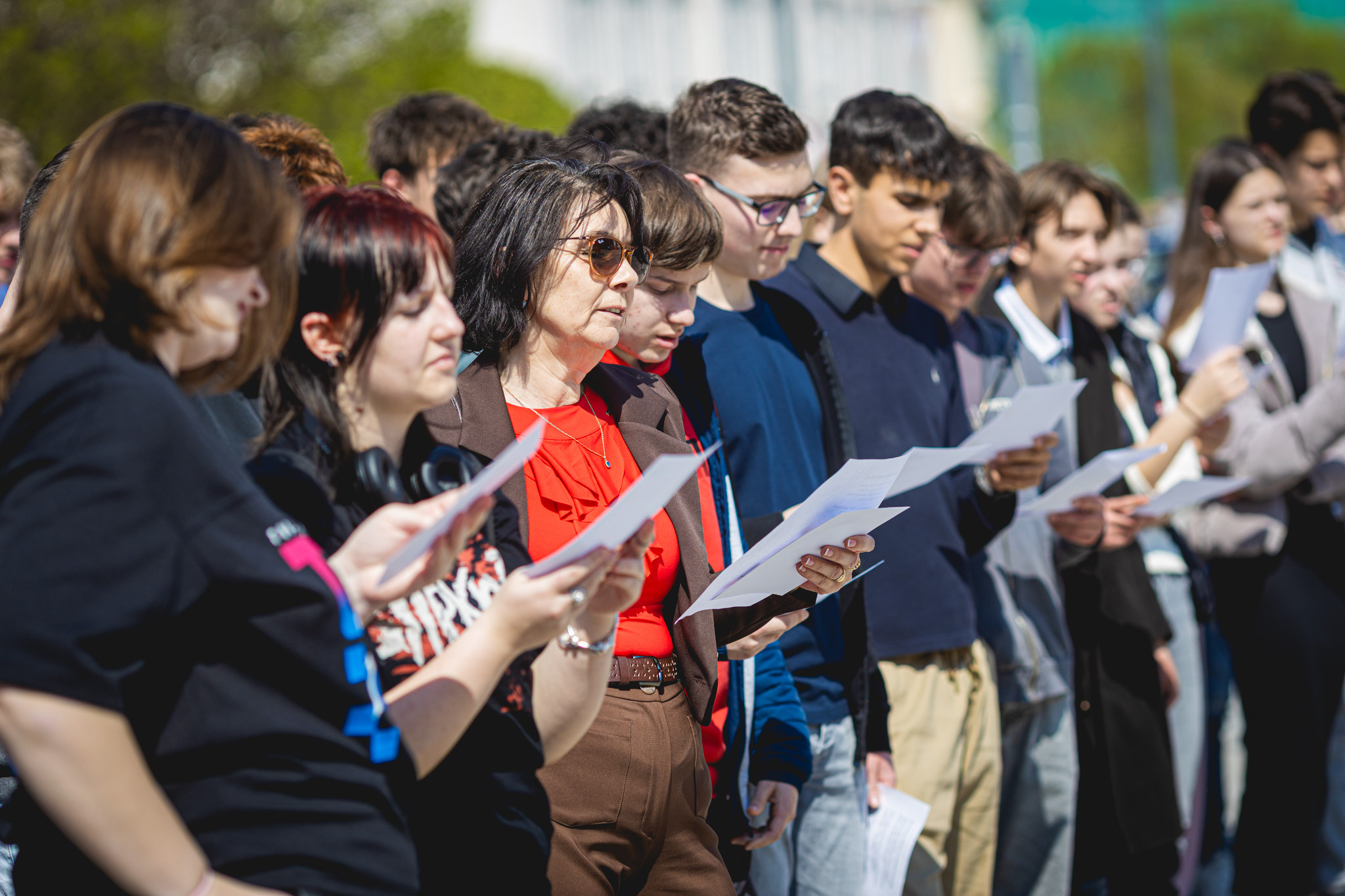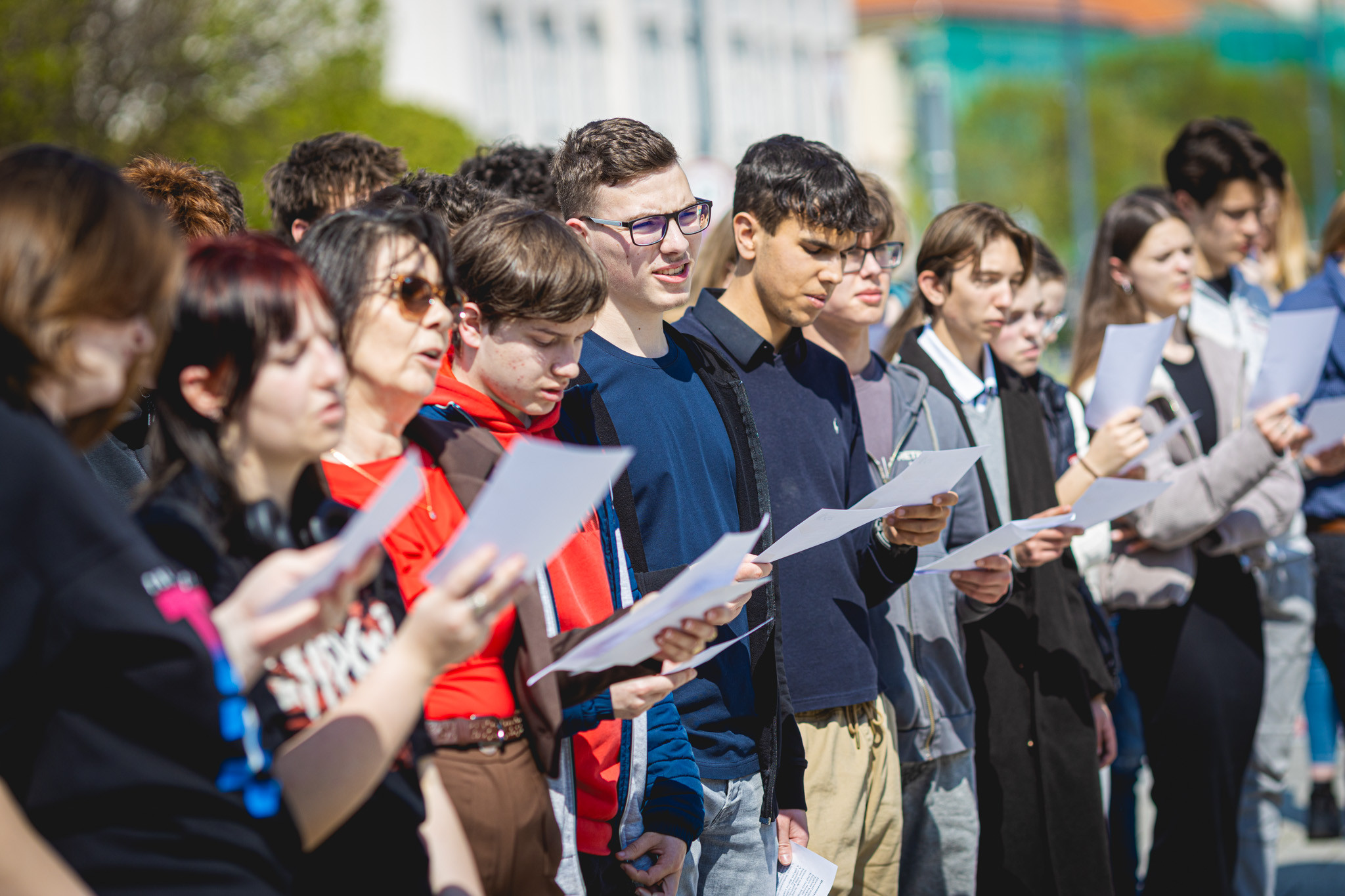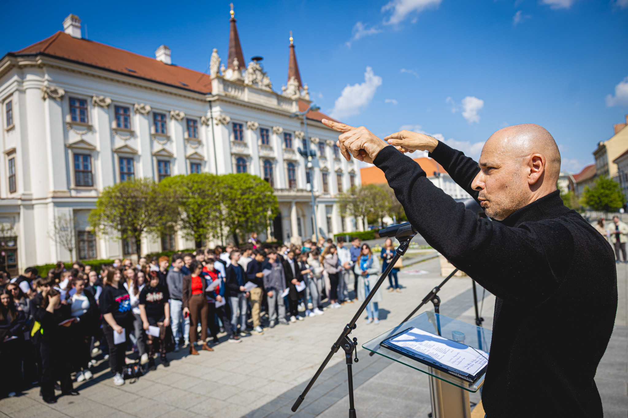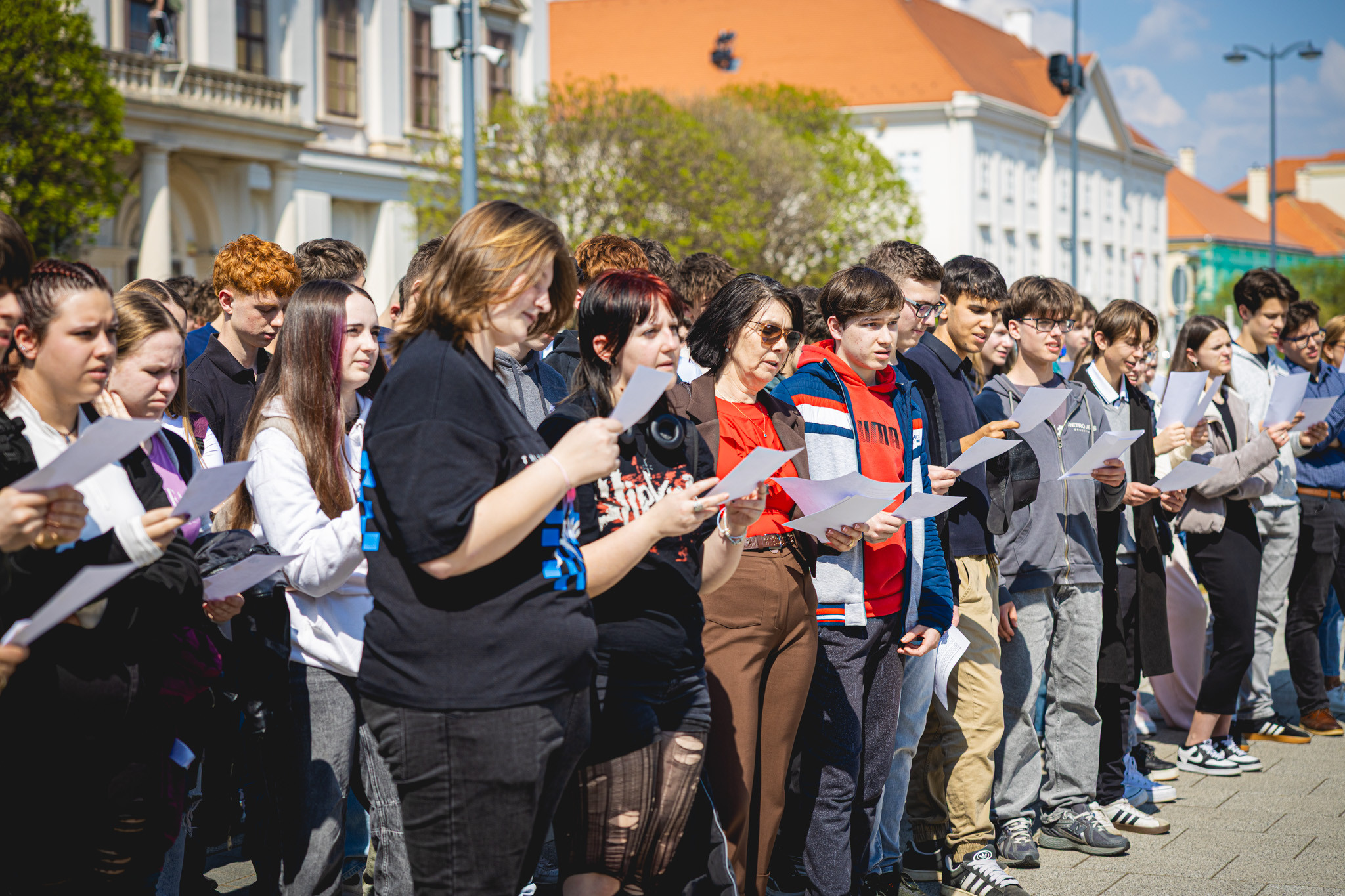 A szombathelyi középiskolákból 250 diák és tanárok érkeztek a Berzsenyi térre, és azon intézmények képviselői, akik aktív szerepet vállaltak az emlékév programjaiban. Így szavalt Horváth Soma alpolgármester, Putz Attila, a szombathelyi önkormányzat Kulturális, Oktatási és Civil Bizottságának elnöke, dr. Baráthné Molnár Mónika, a Berzsenyi könyvtár igazgatója, Majthényi László, a Vas Vármegyei Közgyűlés elnöke, Szabó Tibor, a Weöres Sándor Színház igazgatója is.