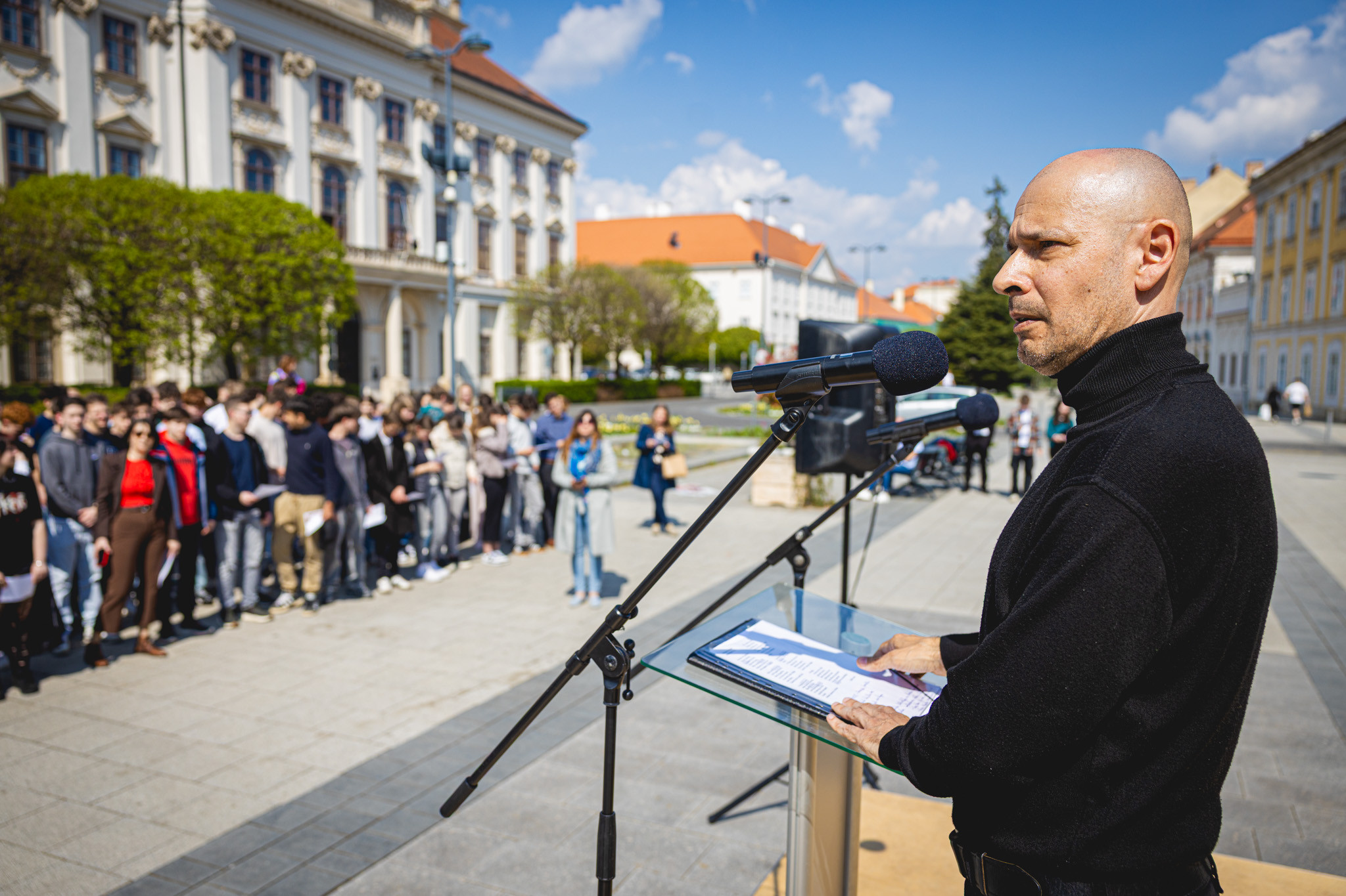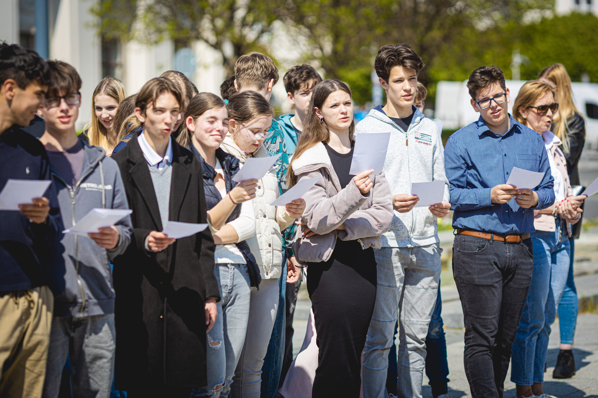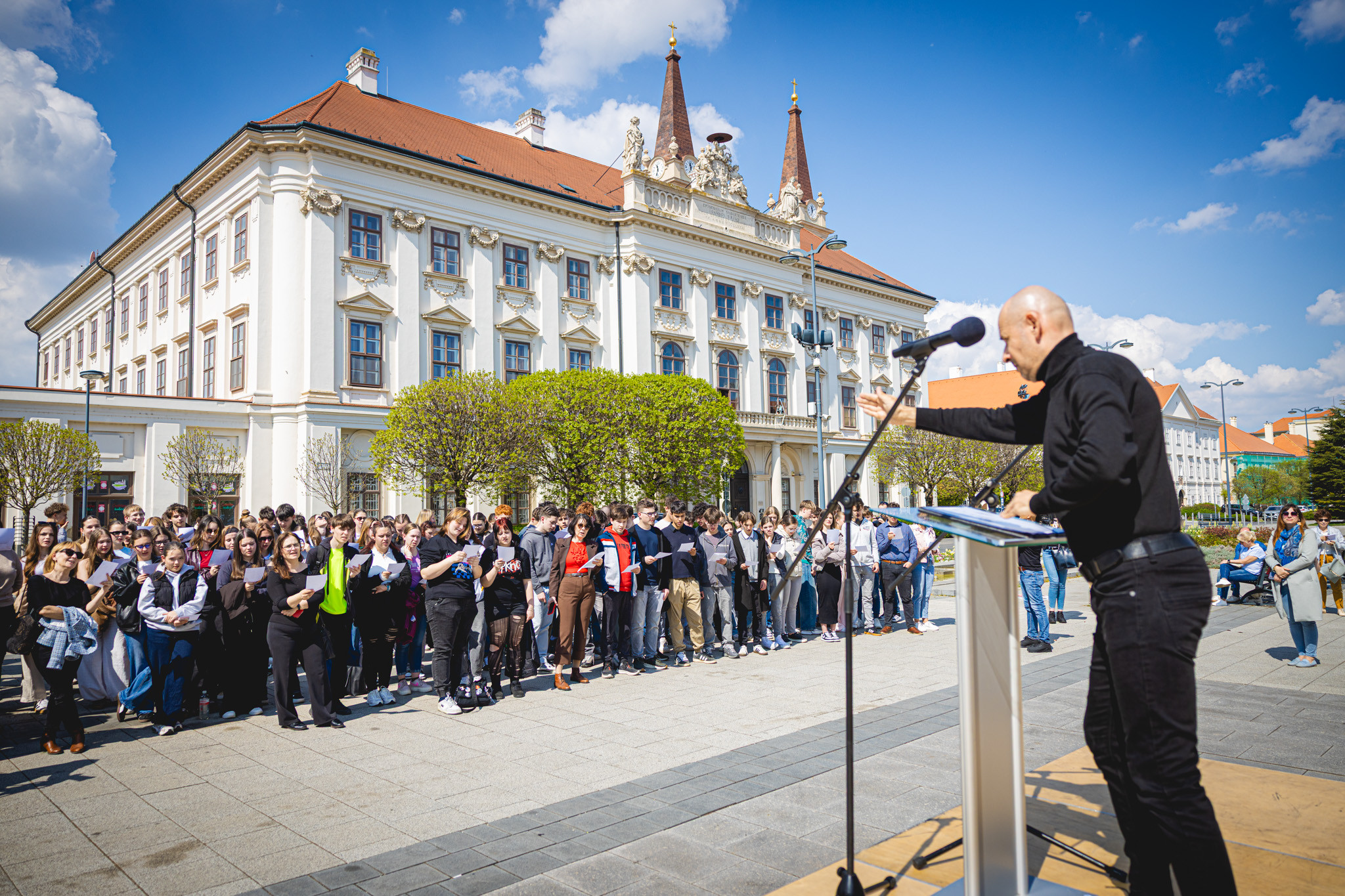 A szombathelyi középiskolákból 250 diák és tanárok érkeztek a Berzsenyi térre, és azon intézmények képviselői, akik aktív szerepet vállaltak az emlékév programjaiban. Így szavalt Horváth Soma alpolgármester, Putz Attila, a szombathelyi önkormányzat Kulturális, Oktatási és Civil Bizottságának elnöke, dr. Baráthné Molnár Mónika, a Berzsenyi könyvtár igazgatója, Majthényi László, a Vas Vármegyei Közgyűlés elnöke, Szabó Tibor, a Weöres Sándor Színház igazgatója is.
