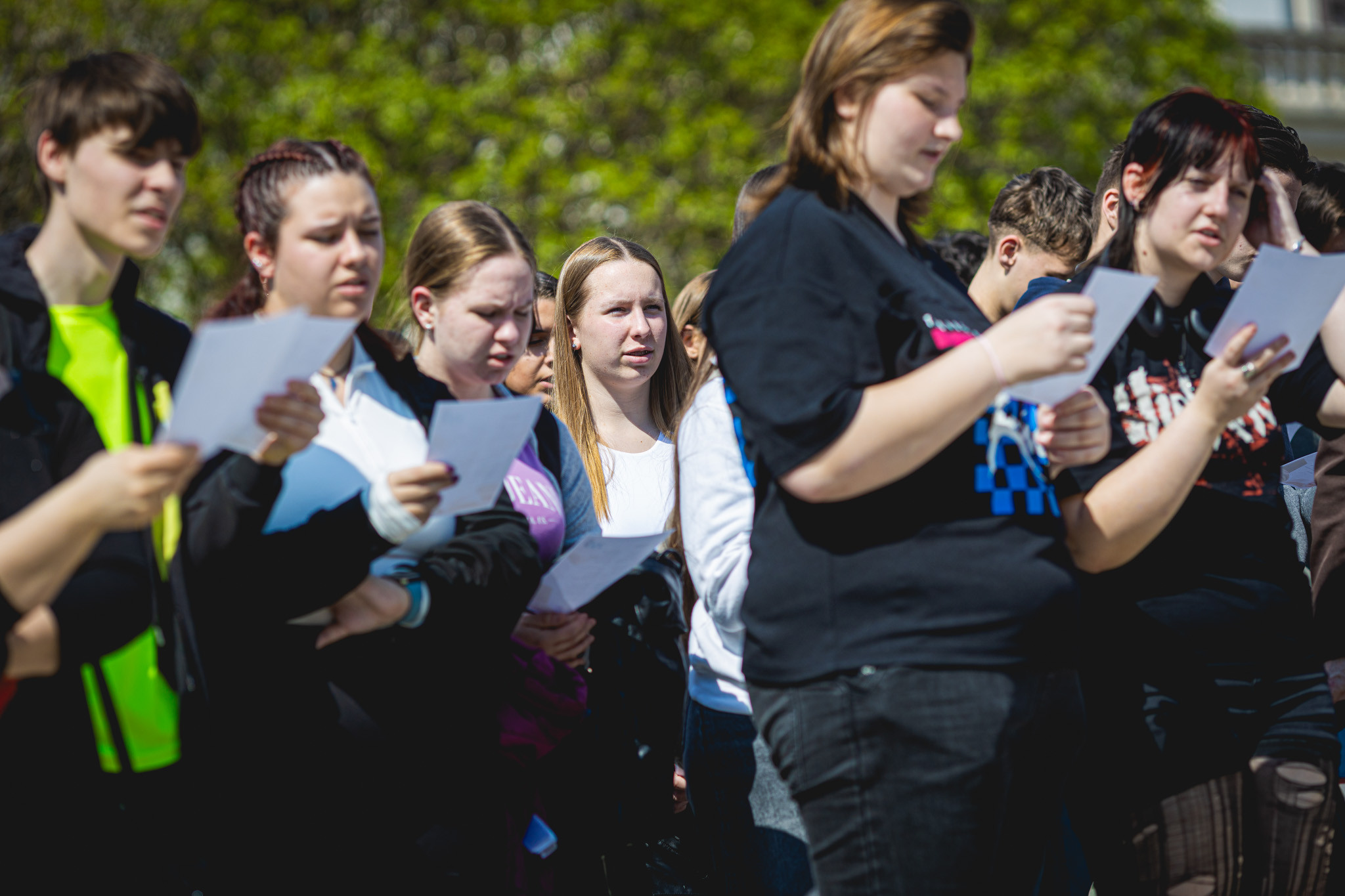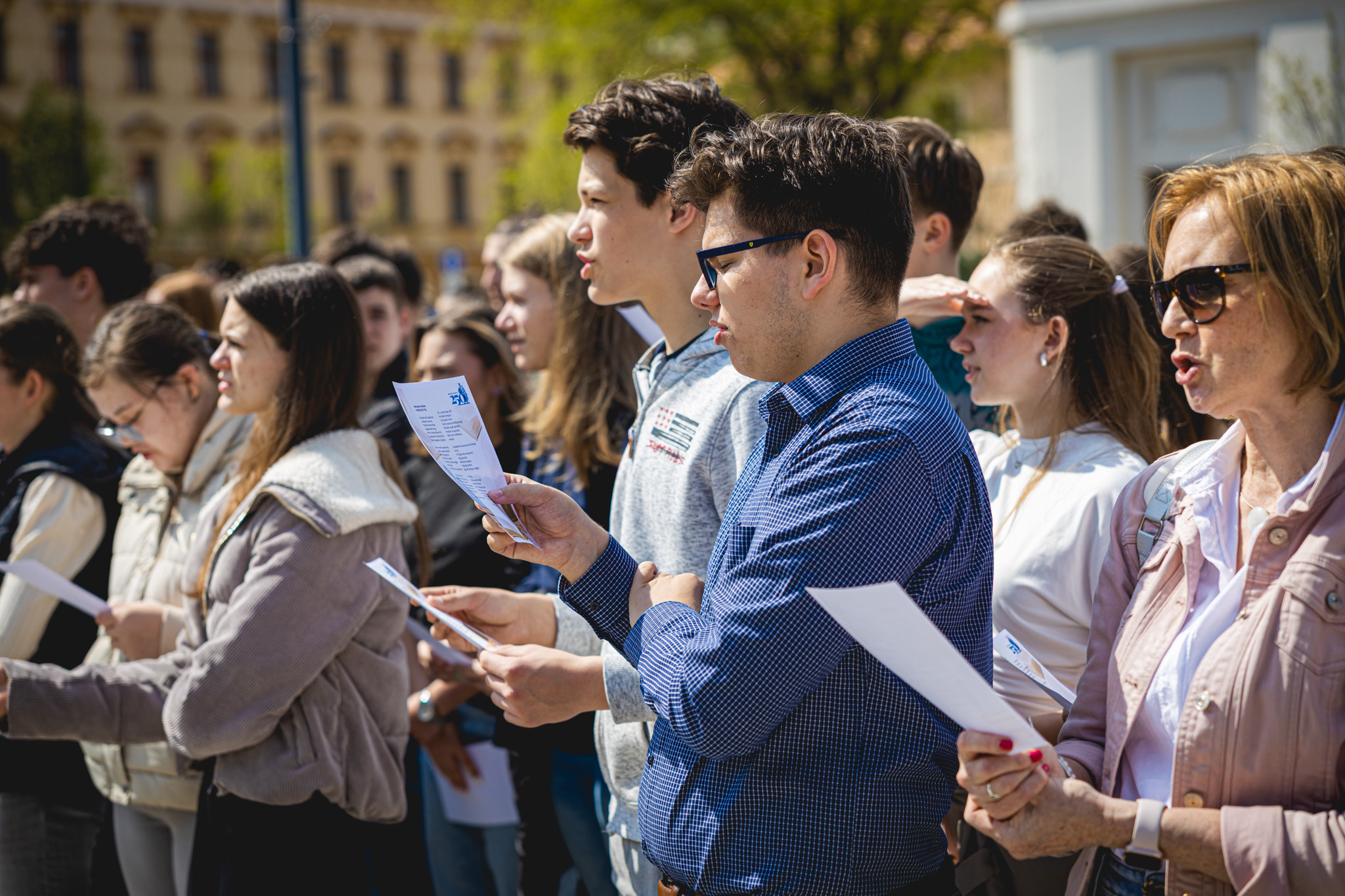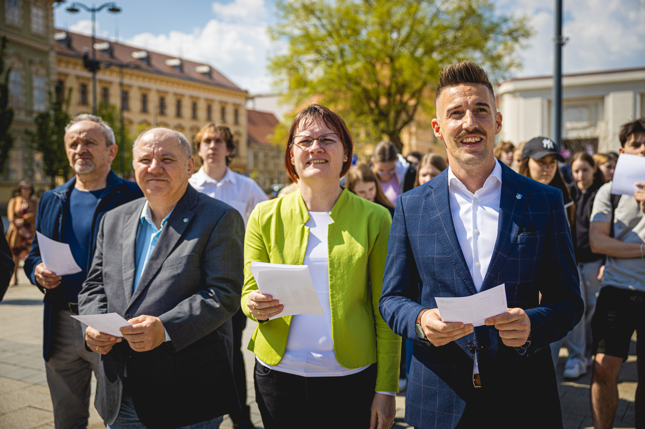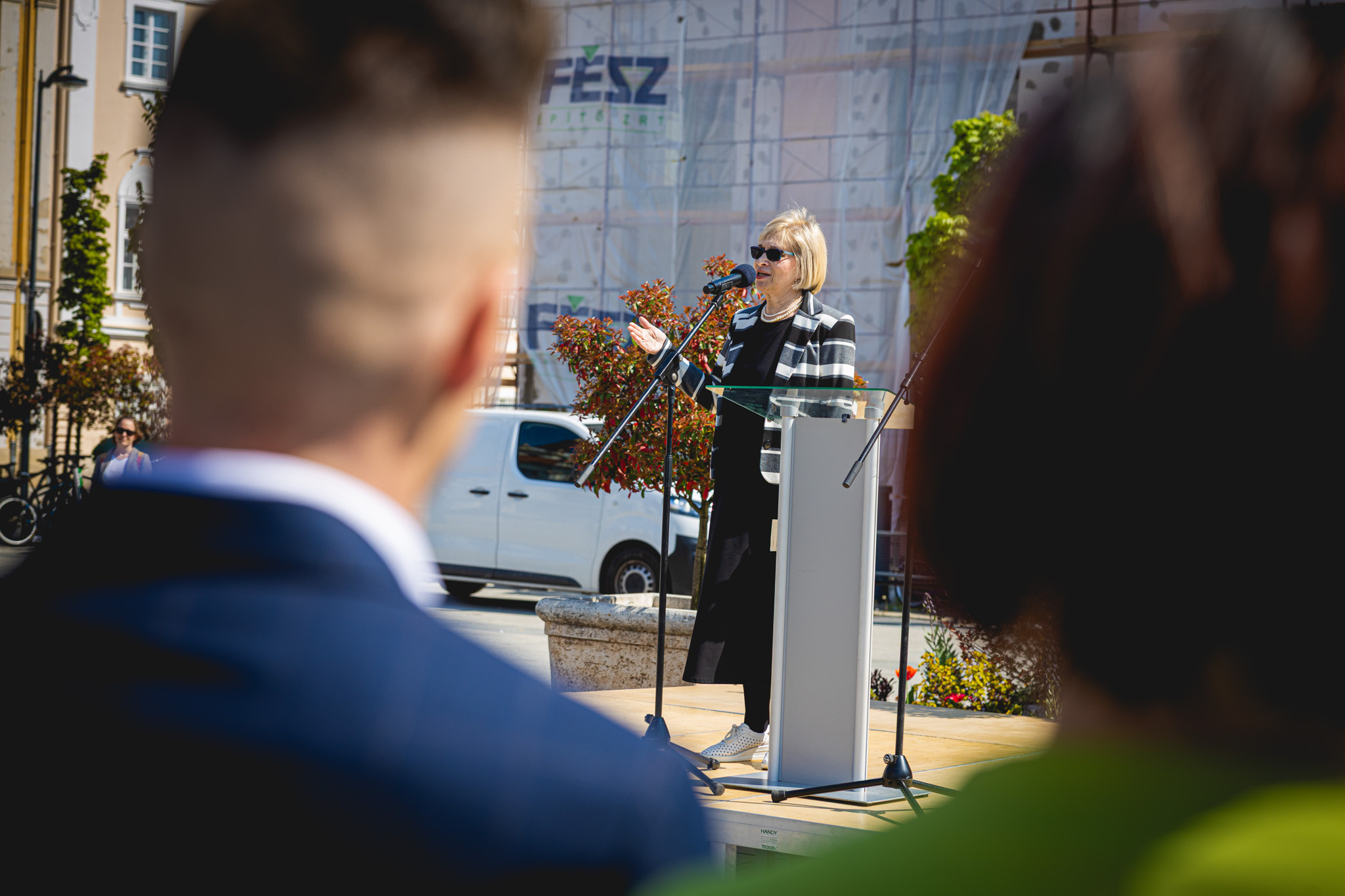 A szombathelyi középiskolákból 250 diák és tanárok érkeztek a Berzsenyi térre, és azon intézmények képviselői, akik aktív szerepet vállaltak az emlékév programjaiban. Így szavalt Horváth Soma alpolgármester, Putz Attila, a szombathelyi önkormányzat Kulturális, Oktatási és Civil Bizottságának elnöke, dr. Baráthné Molnár Mónika, a Berzsenyi könyvtár igazgatója, Majthényi László, a Vas Vármegyei Közgyűlés elnöke, Szabó Tibor, a Weöres Sándor Színház igazgatója is.