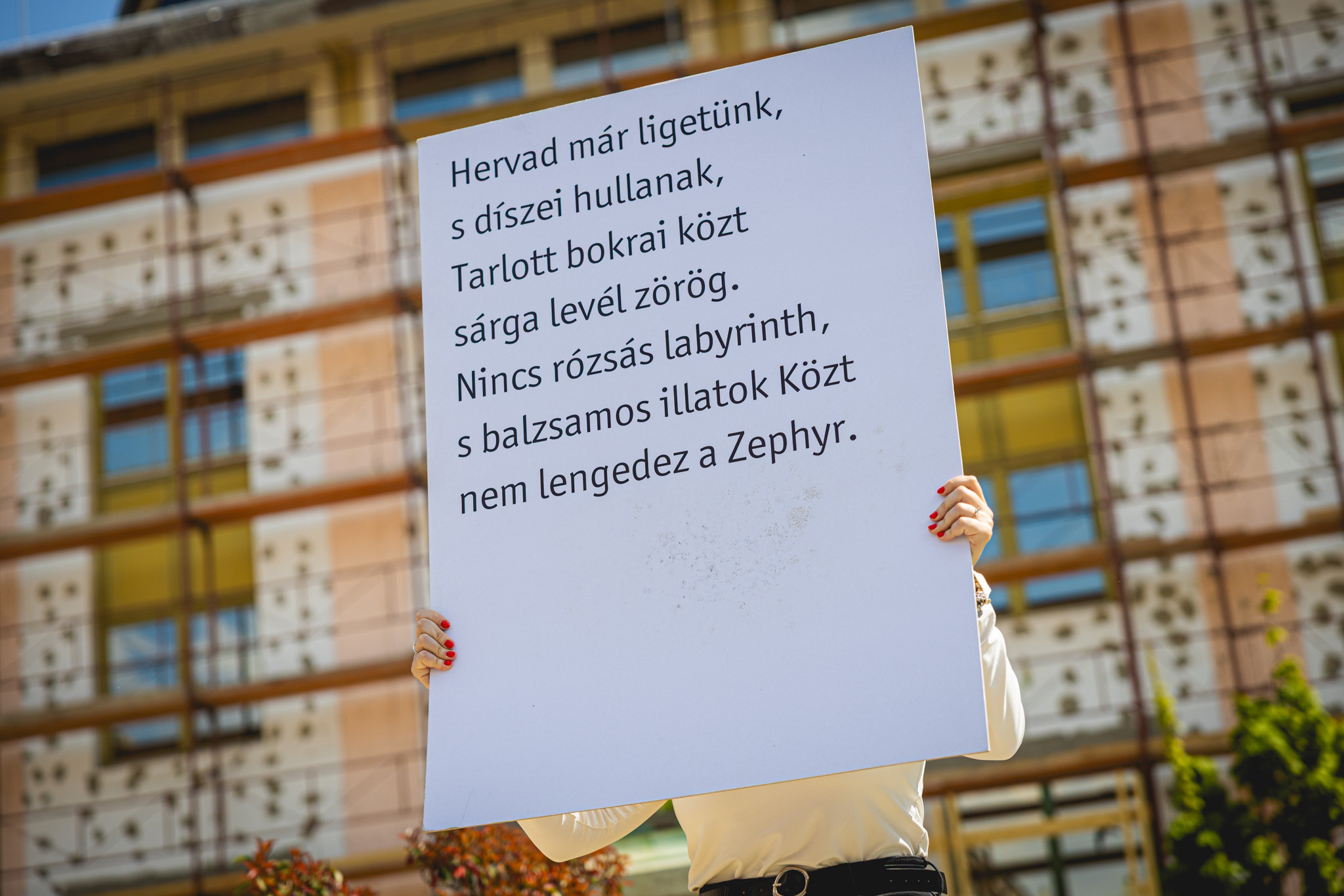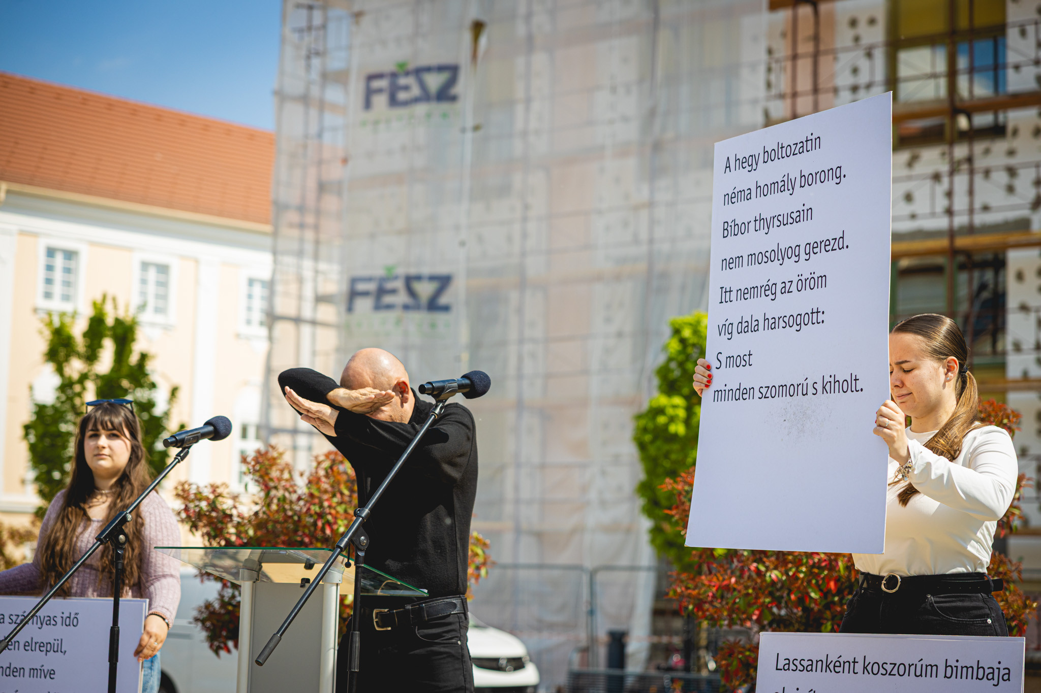 A nagy versmondást az alkalmi színpadról Kelemen Zoltán, a Weöres sándor Színház művésze vezényelte, sikerrel: két "főpróba" után teljes összehangban zengette többszáz ember A közelítő telet Berzsenyi szobra előtt. A versmondás zenei háttereként Schubert Hattyúdala hangzott el.