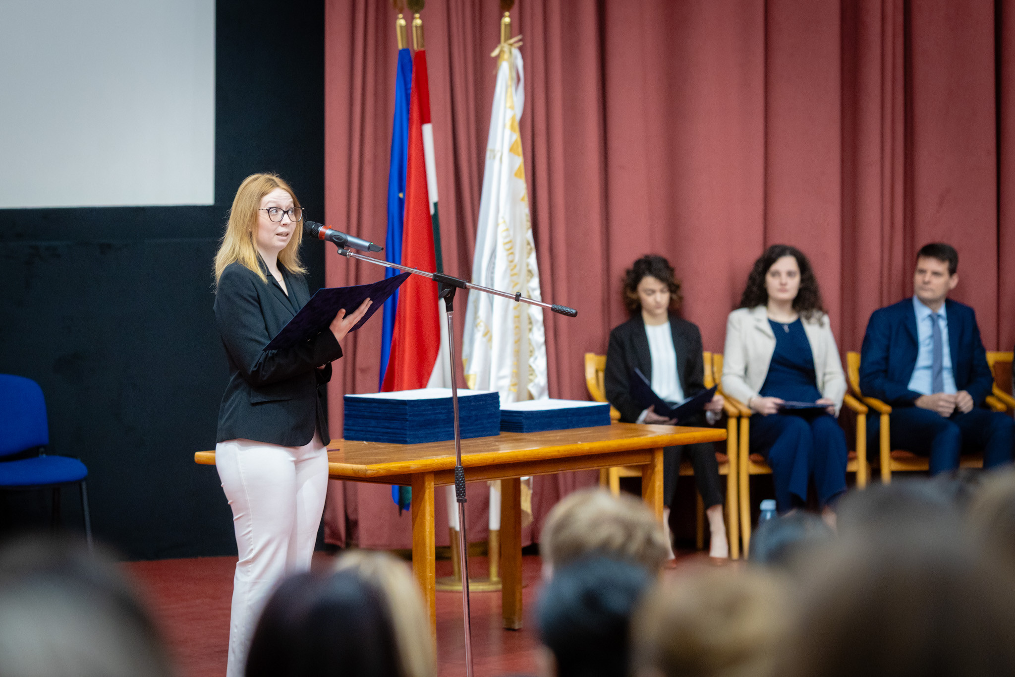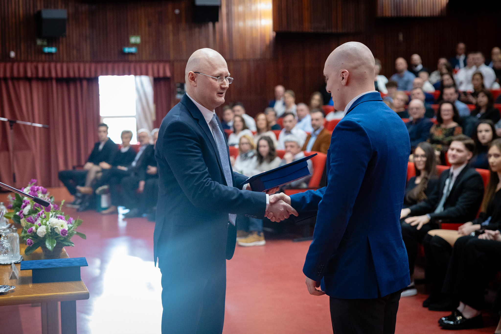 A frissen végzett hallgatók fogadalomtételüket követően átvehették diplomáikat. A délelőtti ünnepségen dr. Lenner Tibor, a Berzsenyi Dániel Pedagógusképző Központ igazgatója, valamint Heszteráné dr. Ekler Judit, a Pedagógiai és Pszichológiai Kar intézetigazgatója, a délutáni ünnepségen pedig dr. Varga Imre, a Társadalomtudományi Kar intézetigazgatója és prof. dr. Szidor György, Informatikai Kar dékánhelyettese adták át az okleveleket.
