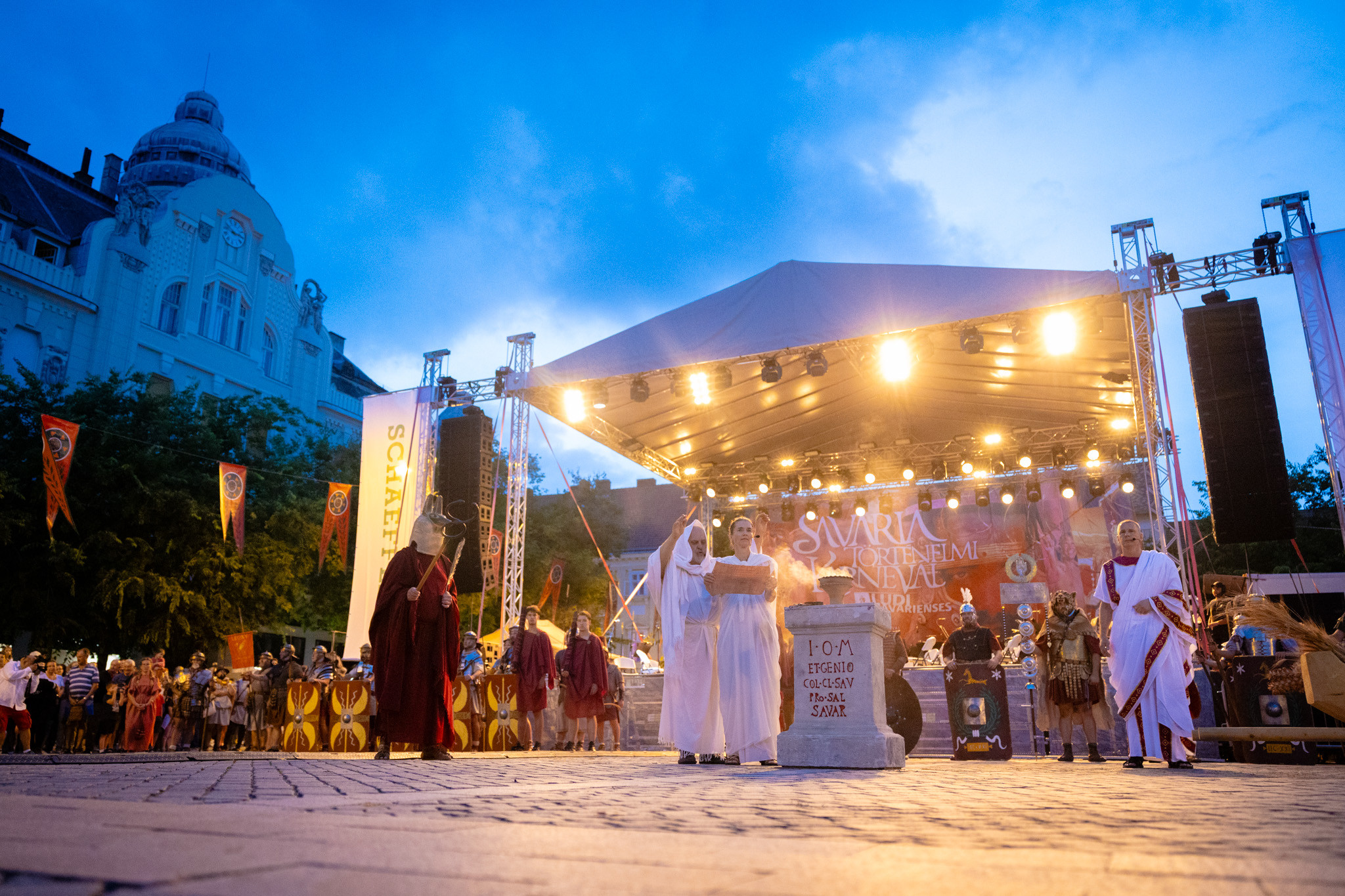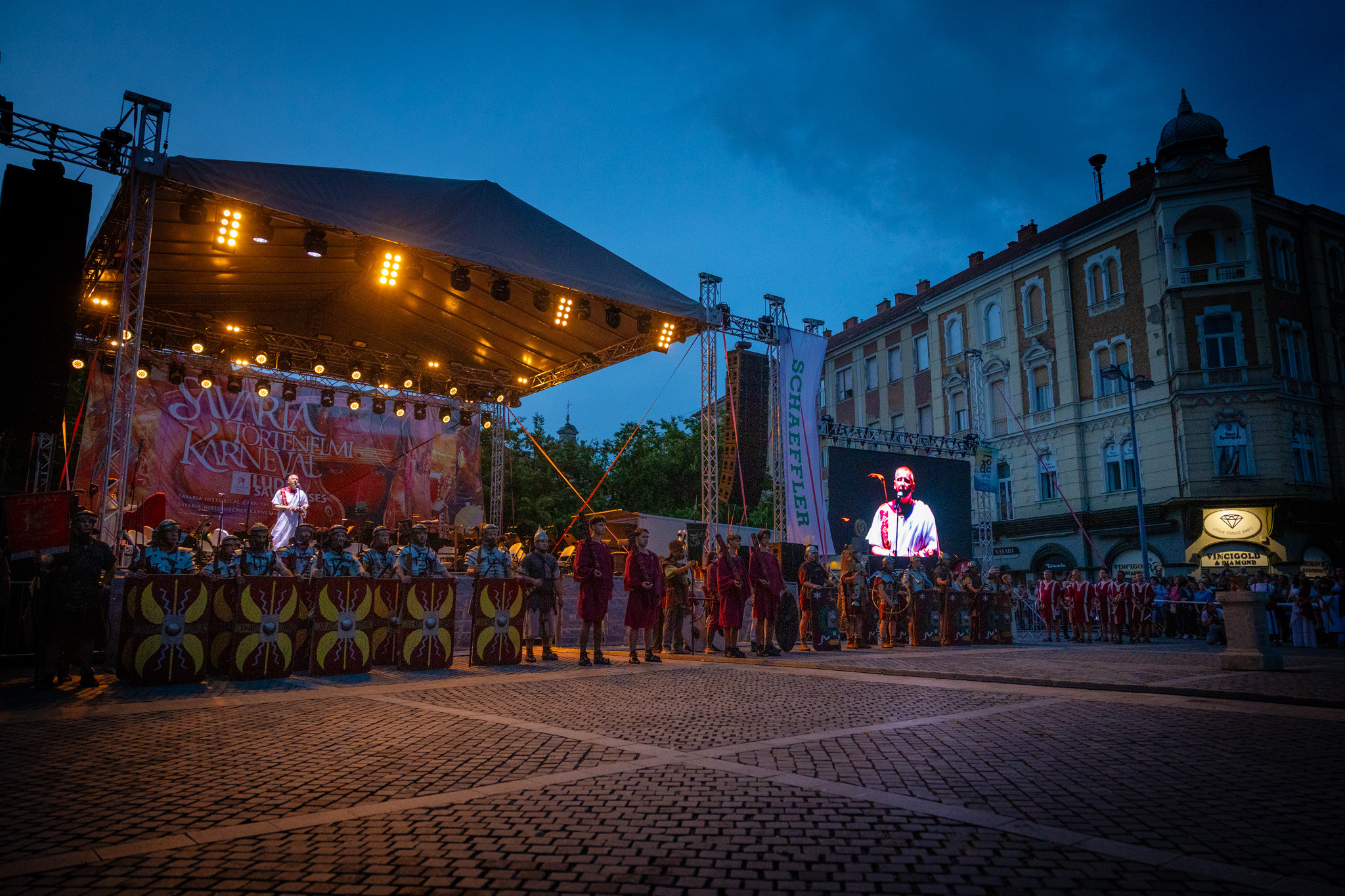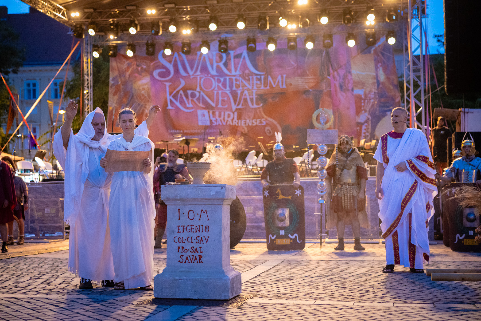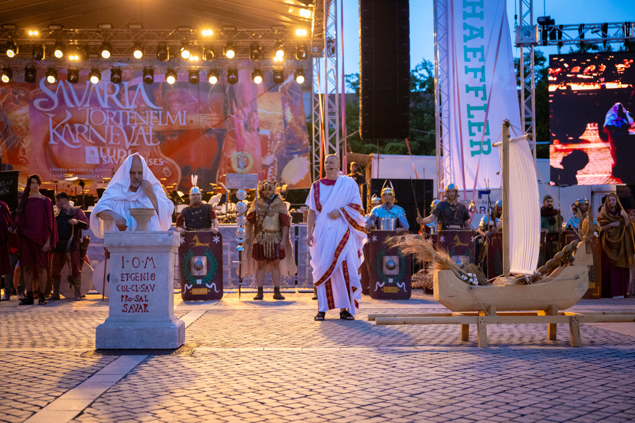 Ave Savaria, ave Szombathely! - ezekkel a szavakkal köszöntötte Szombathely népét és a városba látogatókat dr. Nemény András polgármester (a karneváli játékok alatt duumvir, a kolónia legfőbb magisztrátusa), miután a város elöljáróival és a legiósokkal együtt bevonult a Forum színpad előtti térre, ahol kezdetét vette a XXIV. Savaria Történelmi Karnevál megnyitója.