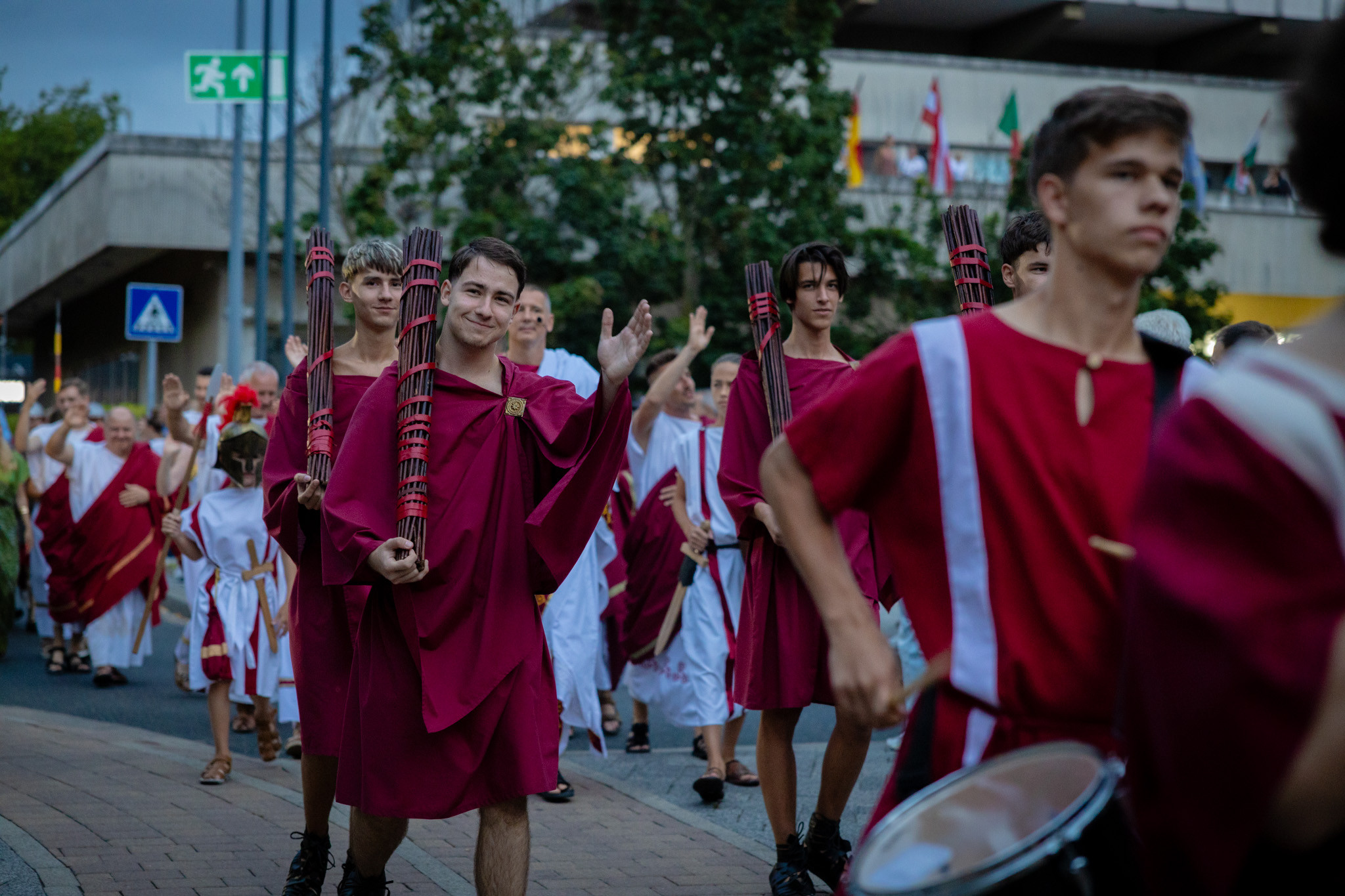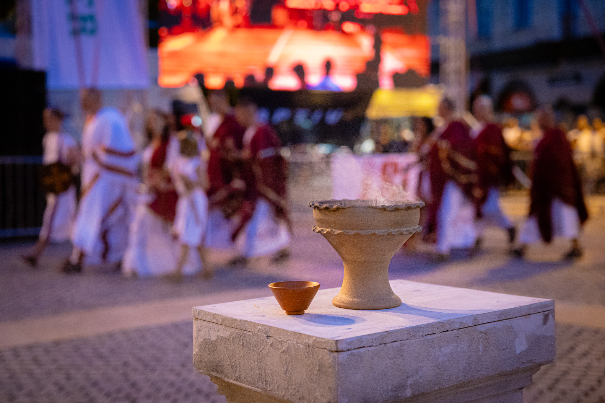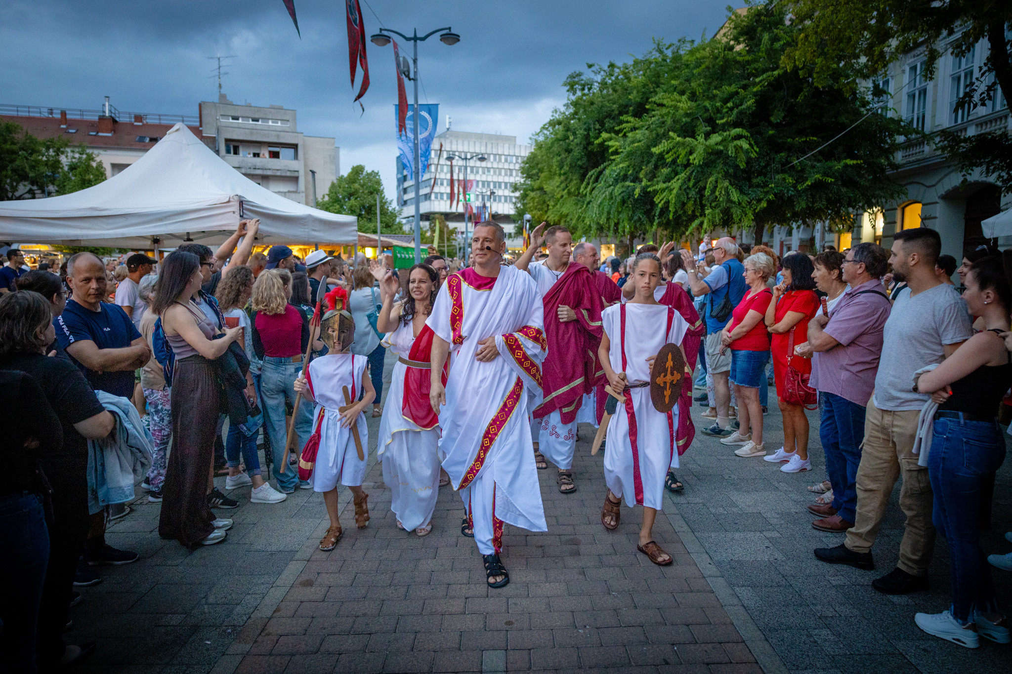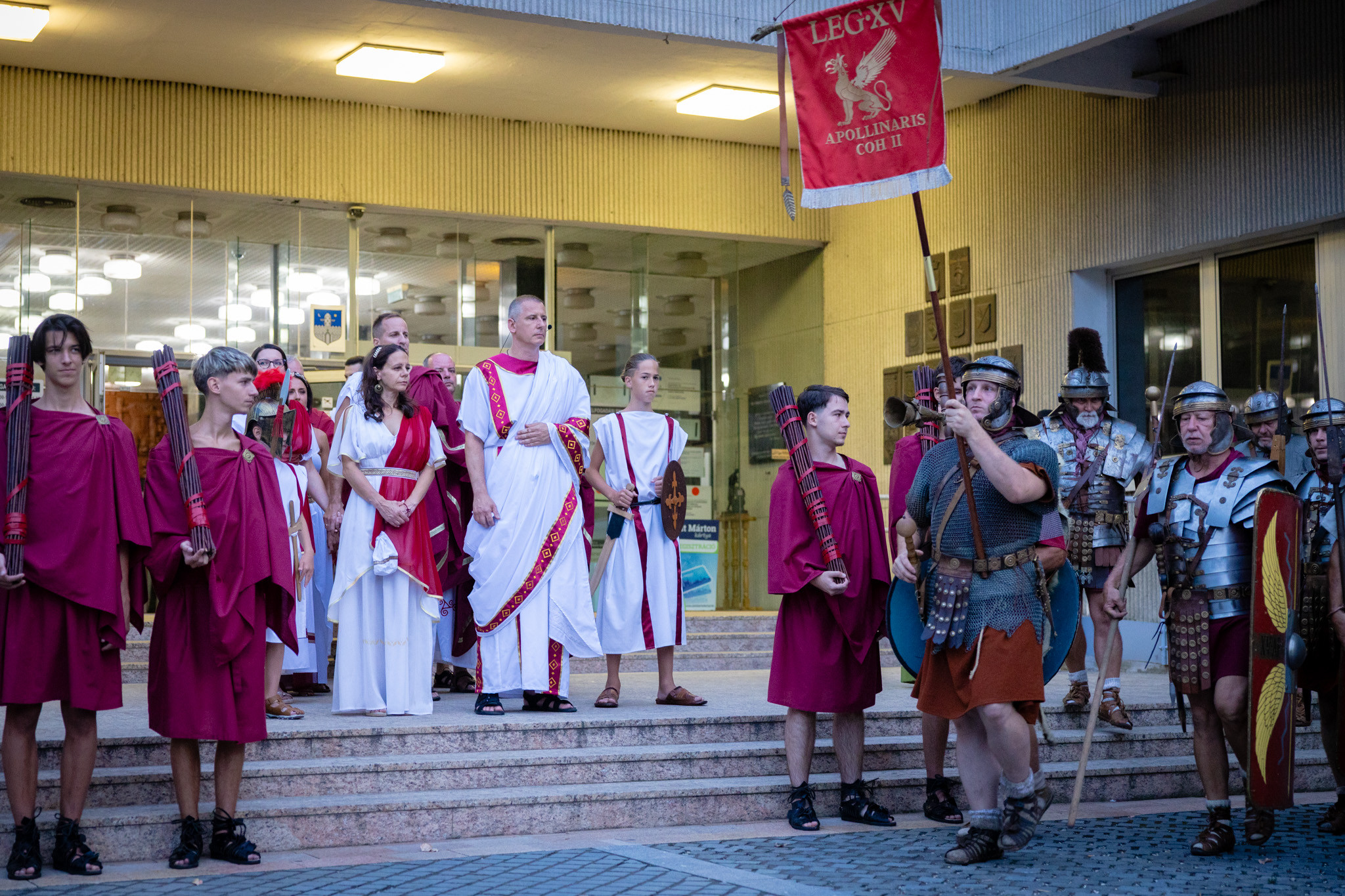 Ave Savaria, ave Szombathely! - ezekkel a szavakkal köszöntötte Szombathely népét és a városba látogatókat dr. Nemény András polgármester (a karneváli játékok alatt duumvir, a kolónia legfőbb magisztrátusa), miután a város elöljáróival és a legiósokkal együtt bevonult a Forum színpad előtti térre, ahol kezdetét vette a XXIV. Savaria Történelmi Karnevál megnyitója.
