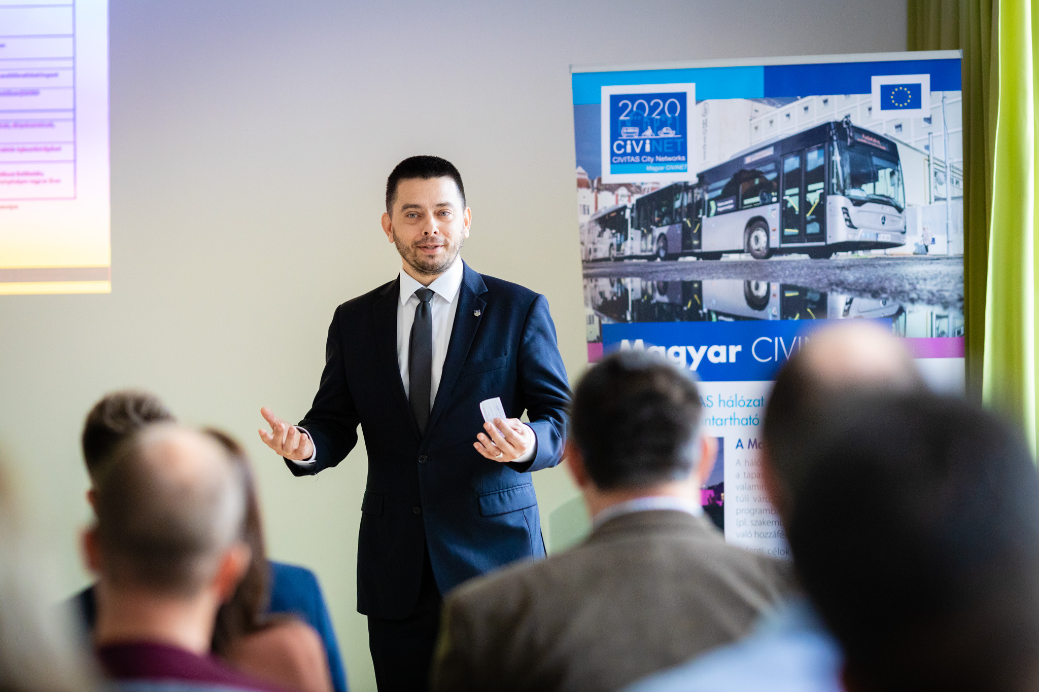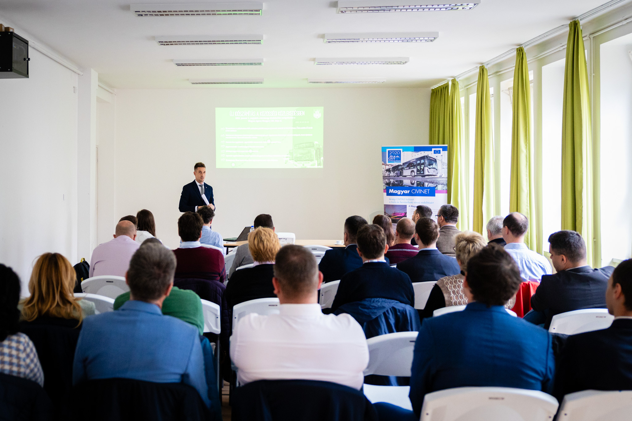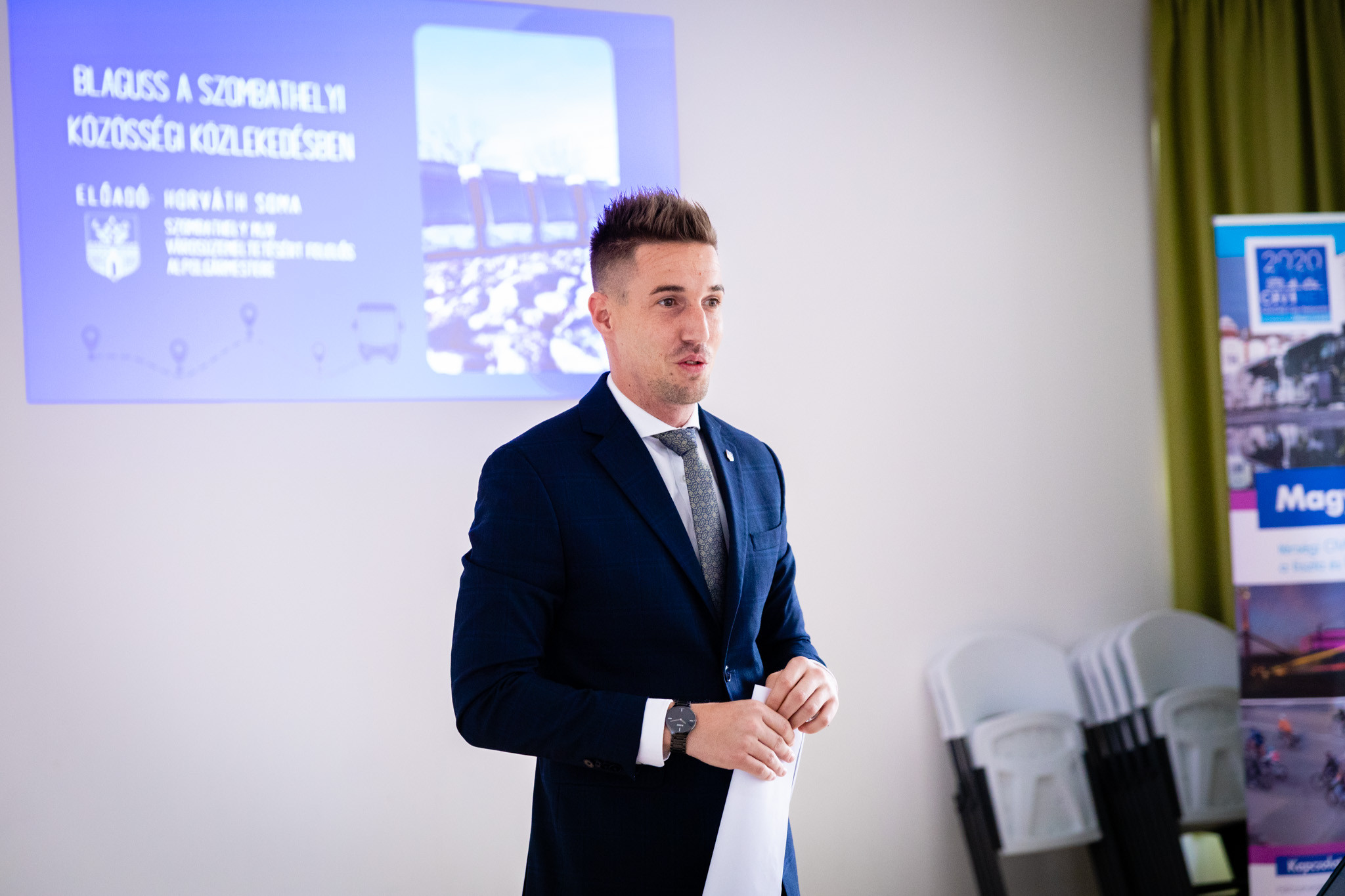 A közösségi közlekedésről szóló egész napos konferencián a szakmai szervezetek képviselői, közlekedési cégek és más városok vezetői is részt vettek, ahol a város újonnan felállított közösségi közlekedését mutathatta be Horváth Soma alpogármester, majd Ekés András, Fejér Balázs, a Mobilissimus részéről; Alexander Klein, a Mobilitätsverbünde Österreich; Halinka Péter, a Nyugat-Pannon NKft.; Füzesi Balázs, a RealCity és végül Török Máté, a BKK részéről tartott előadást.