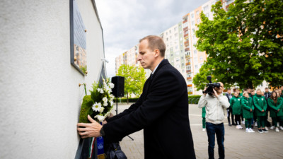 Megemlékezés és koszorúzás Derkovits Gyula szobránál