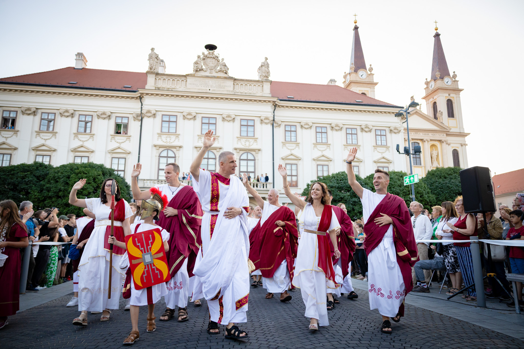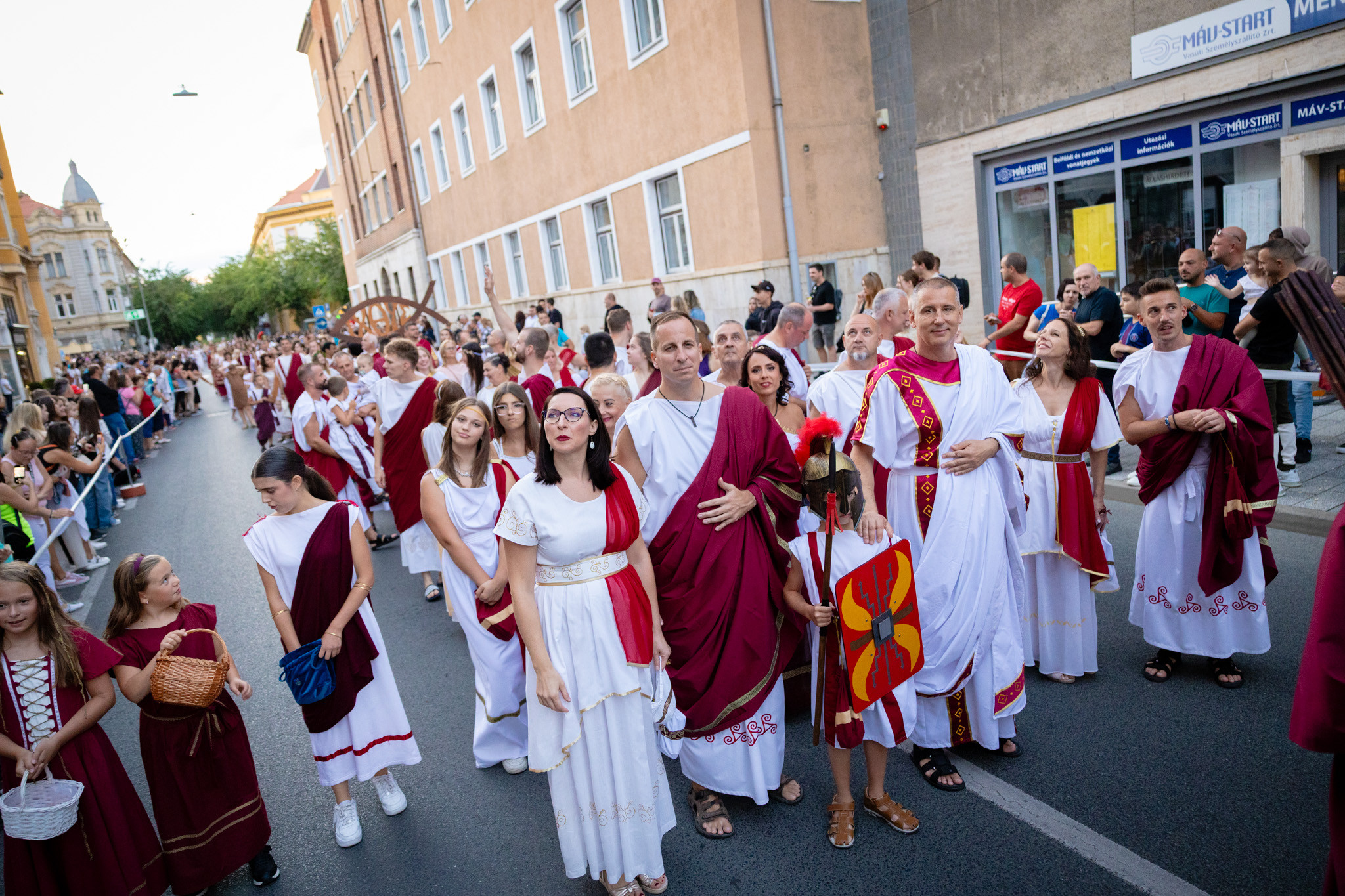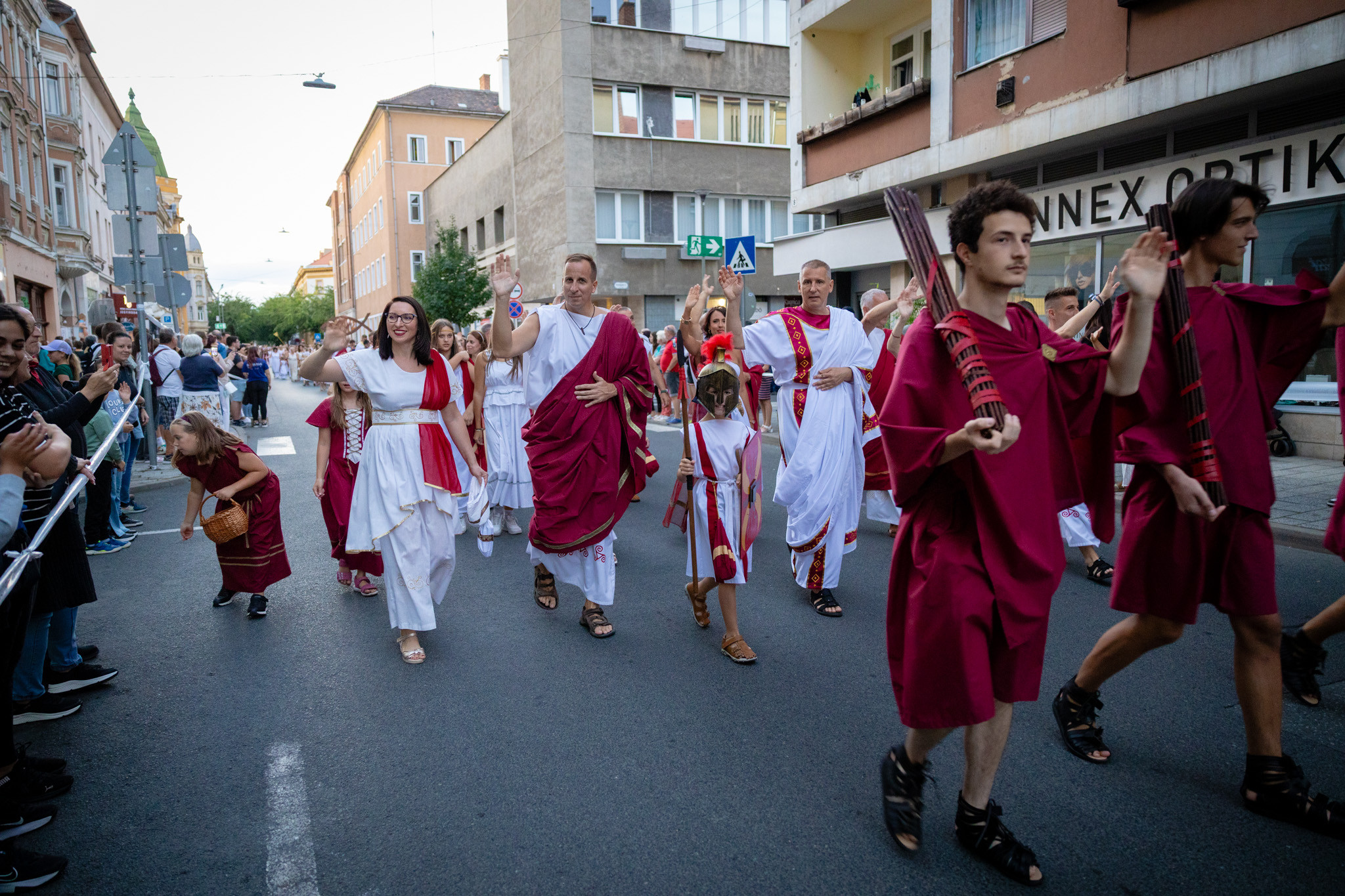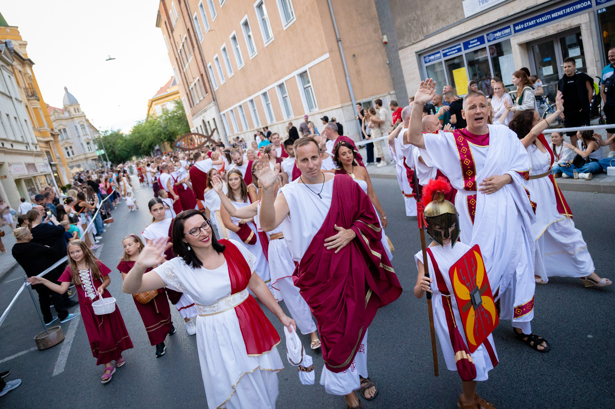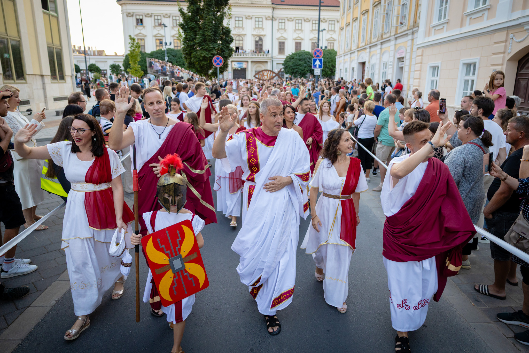 Augusztus 22-én, pénteken a Karnevál időkereke kétezer esztendő történelmi korait, a rómaiaktól a második világháborúig terjedő időszak kiemelten fontos szereplőit és eseményeit vonultatta fel a belváros ünnepi kulisszái között. A város és Pannónia dicső történetét, híres szülötteit, a magyar történelem emblematikus figuráit felvonultató menetet gólyalábasok, dobosok, zenészek, tűznyelő és tűzfújó mutatványosok, valamint zászlóforgatók produkciói színesítették. A hagyományoknak megfelelően a városvezetés is korhű jelmezbe öltözött.