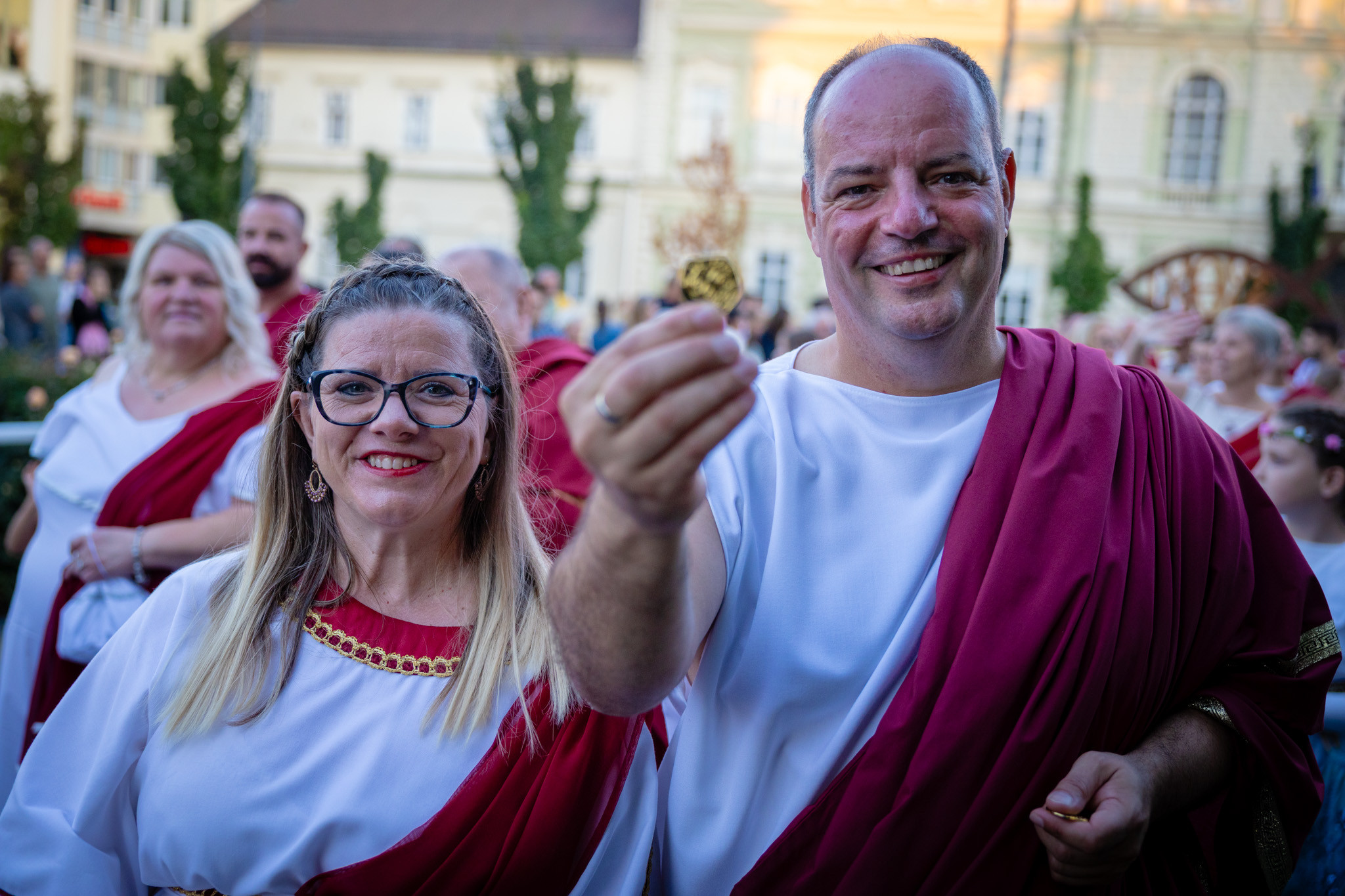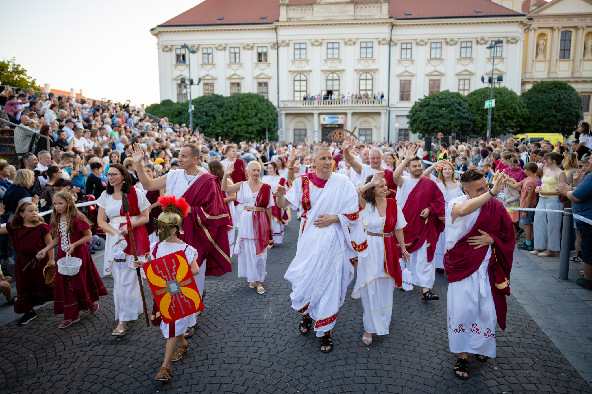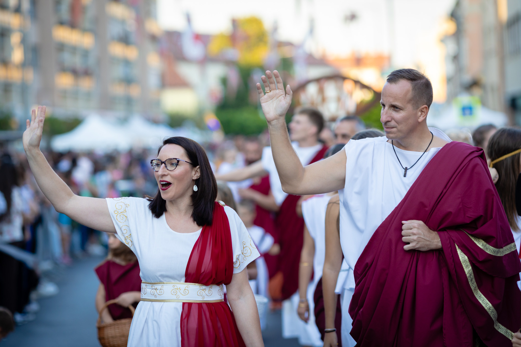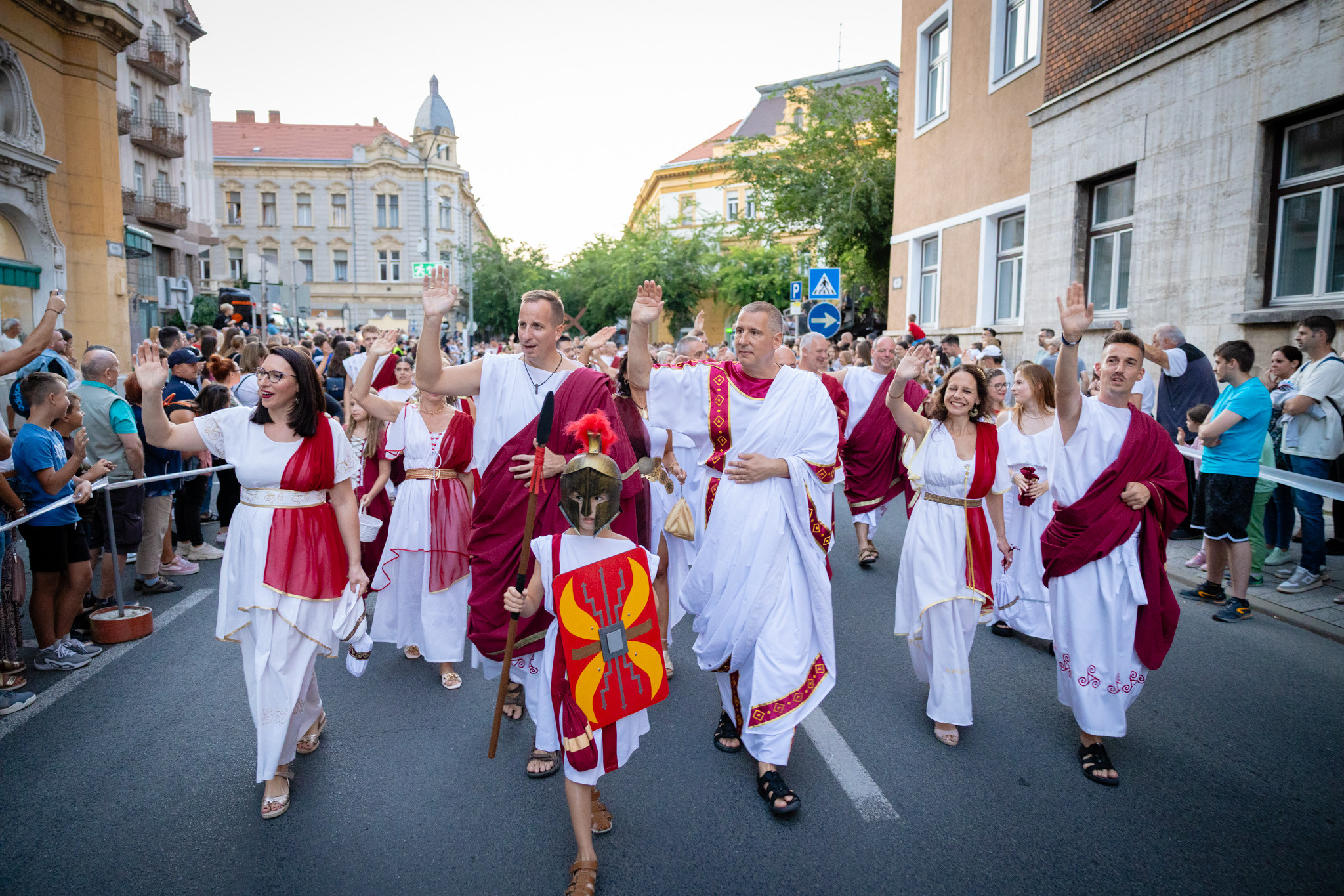 Augusztus 22-én, pénteken a Karnevál időkereke kétezer esztendő történelmi korait, a rómaiaktól a második világháborúig terjedő időszak kiemelten fontos szereplőit és eseményeit vonultatta fel a belváros ünnepi kulisszái között. A város és Pannónia dicső történetét, híres szülötteit, a magyar történelem emblematikus figuráit felvonultató menetet gólyalábasok, dobosok, zenészek, tűznyelő és tűzfújó mutatványosok, valamint zászlóforgatók produkciói színesítették. A hagyományoknak megfelelően a városvezetés is korhű jelmezbe öltözött.