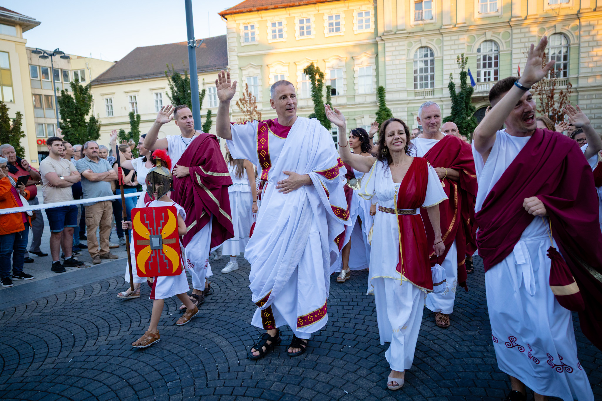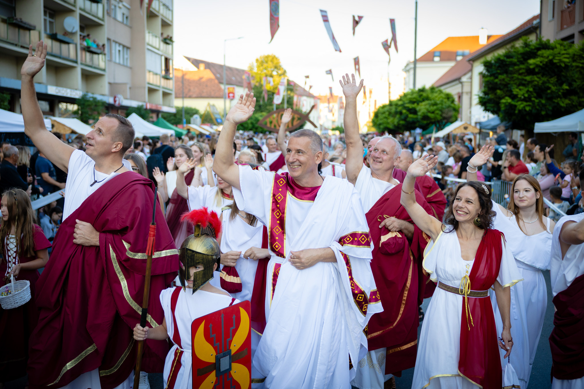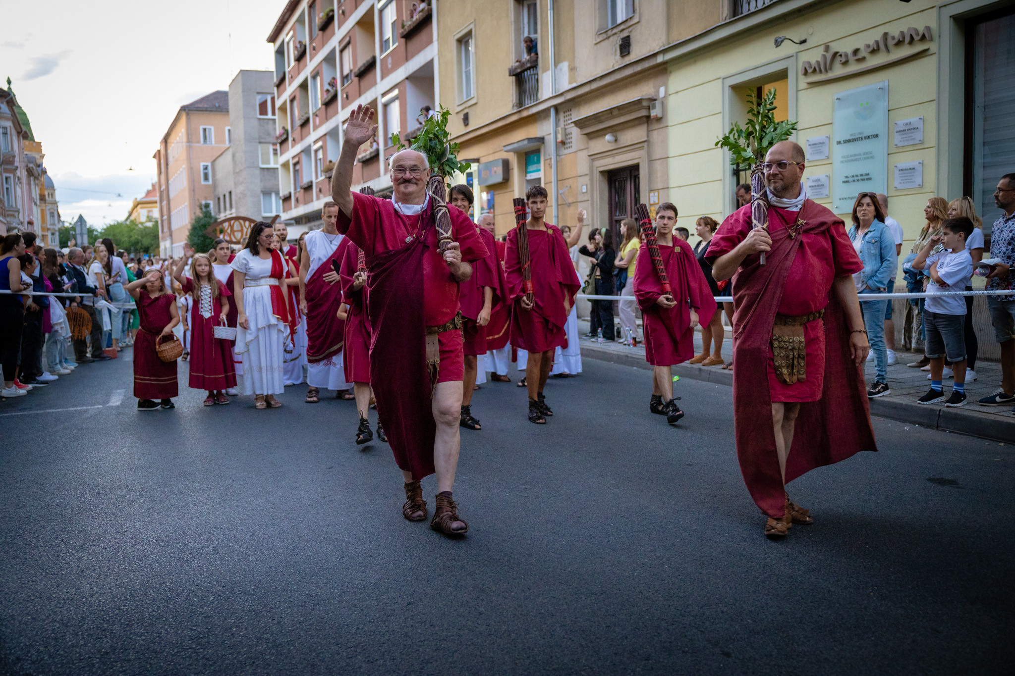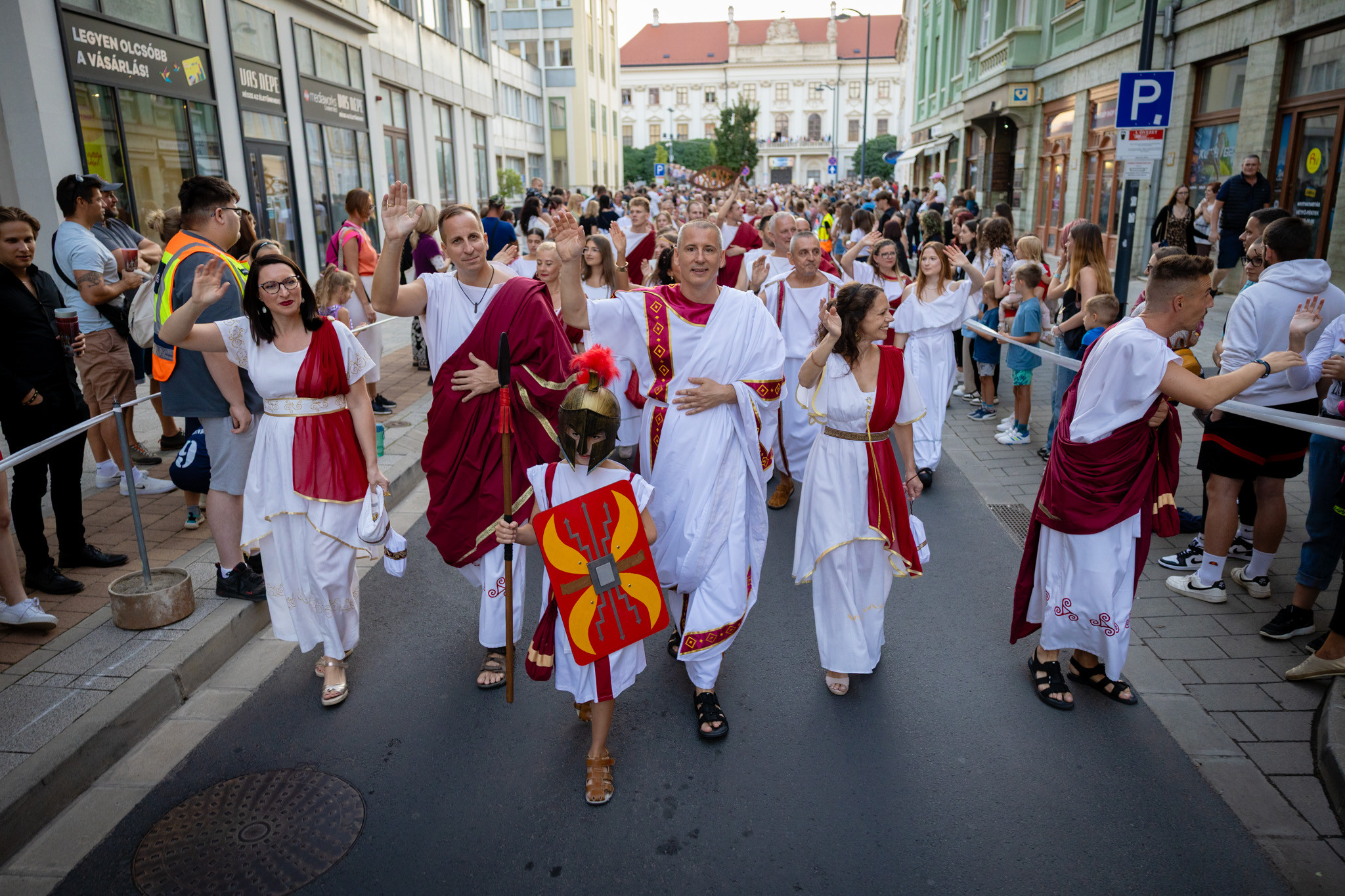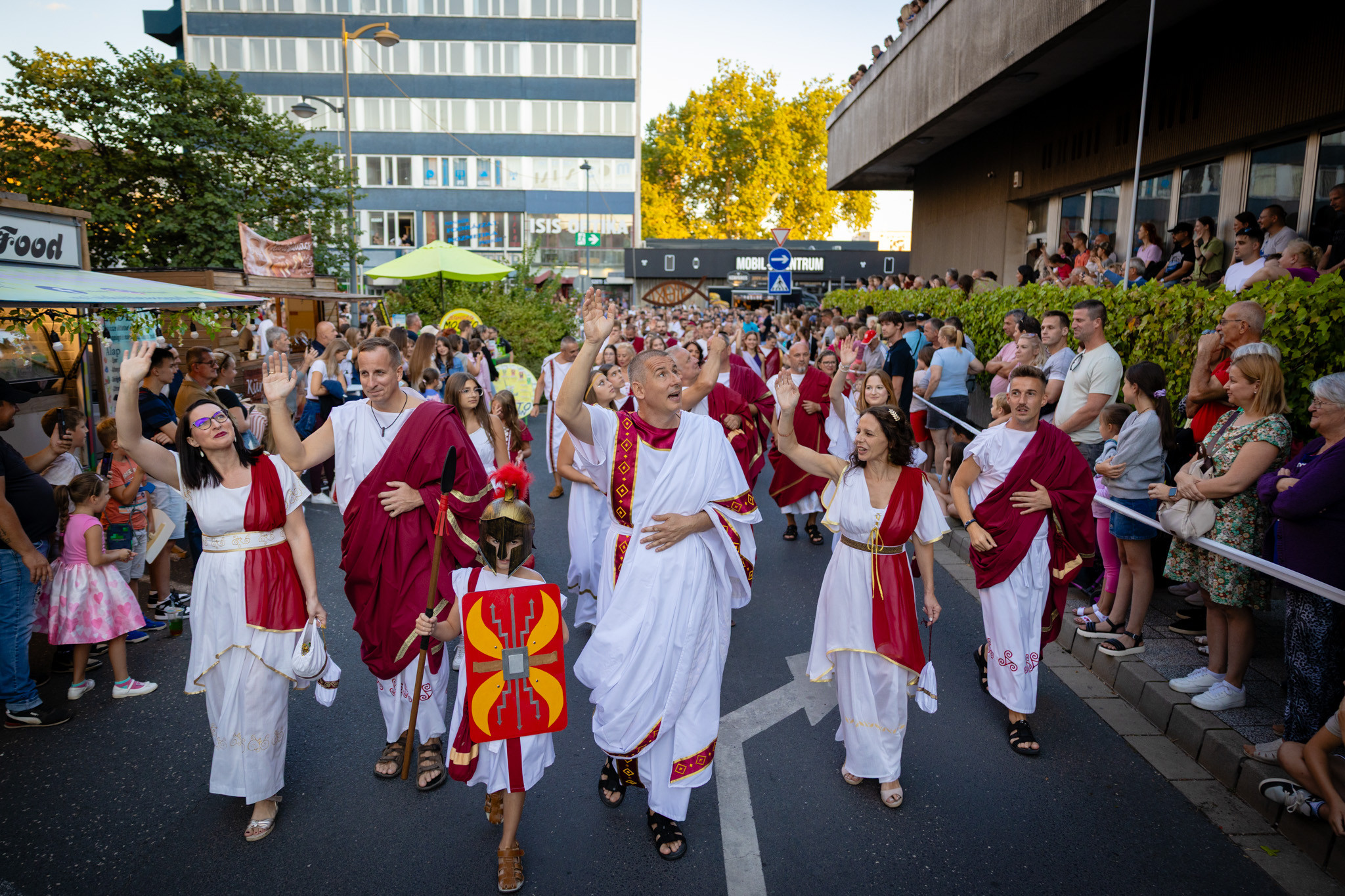Augusztus 22-én, pénteken a Karnevál időkereke kétezer esztendő történelmi korait, a rómaiaktól a második világháborúig terjedő időszak kiemelten fontos szereplőit és eseményeit vonultatta fel a belváros ünnepi kulisszái között. A város és Pannónia dicső történetét, híres szülötteit, a magyar történelem emblematikus figuráit felvonultató menetet gólyalábasok, dobosok, zenészek, tűznyelő és tűzfújó mutatványosok, valamint zászlóforgatók produkciói színesítették. A hagyományoknak megfelelően a városvezetés is korhű jelmezbe öltözött.