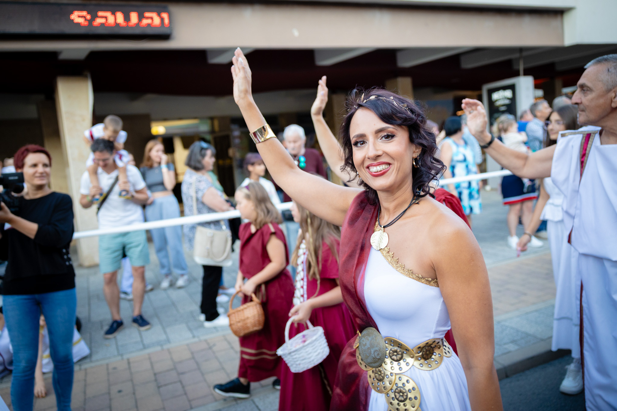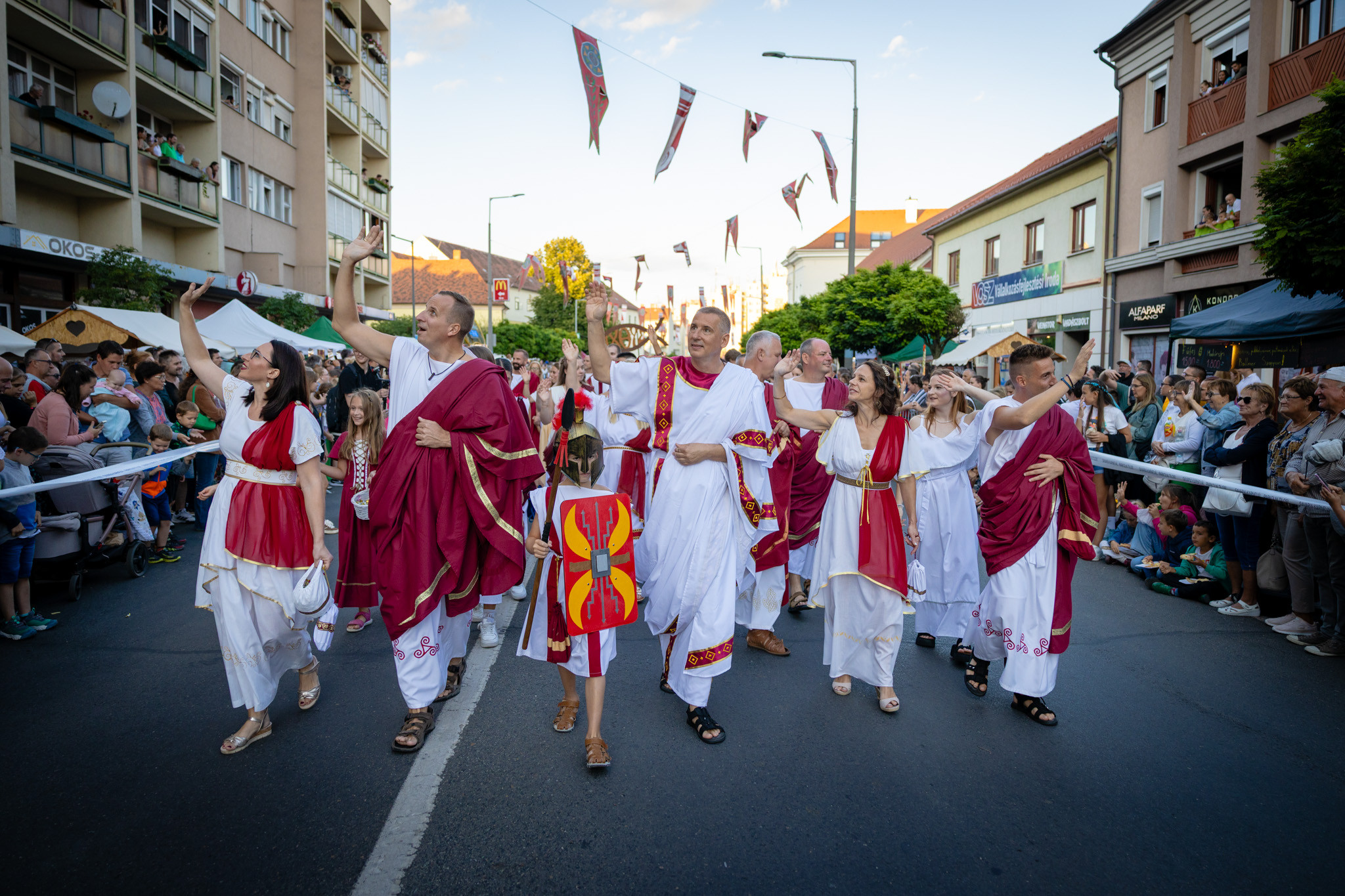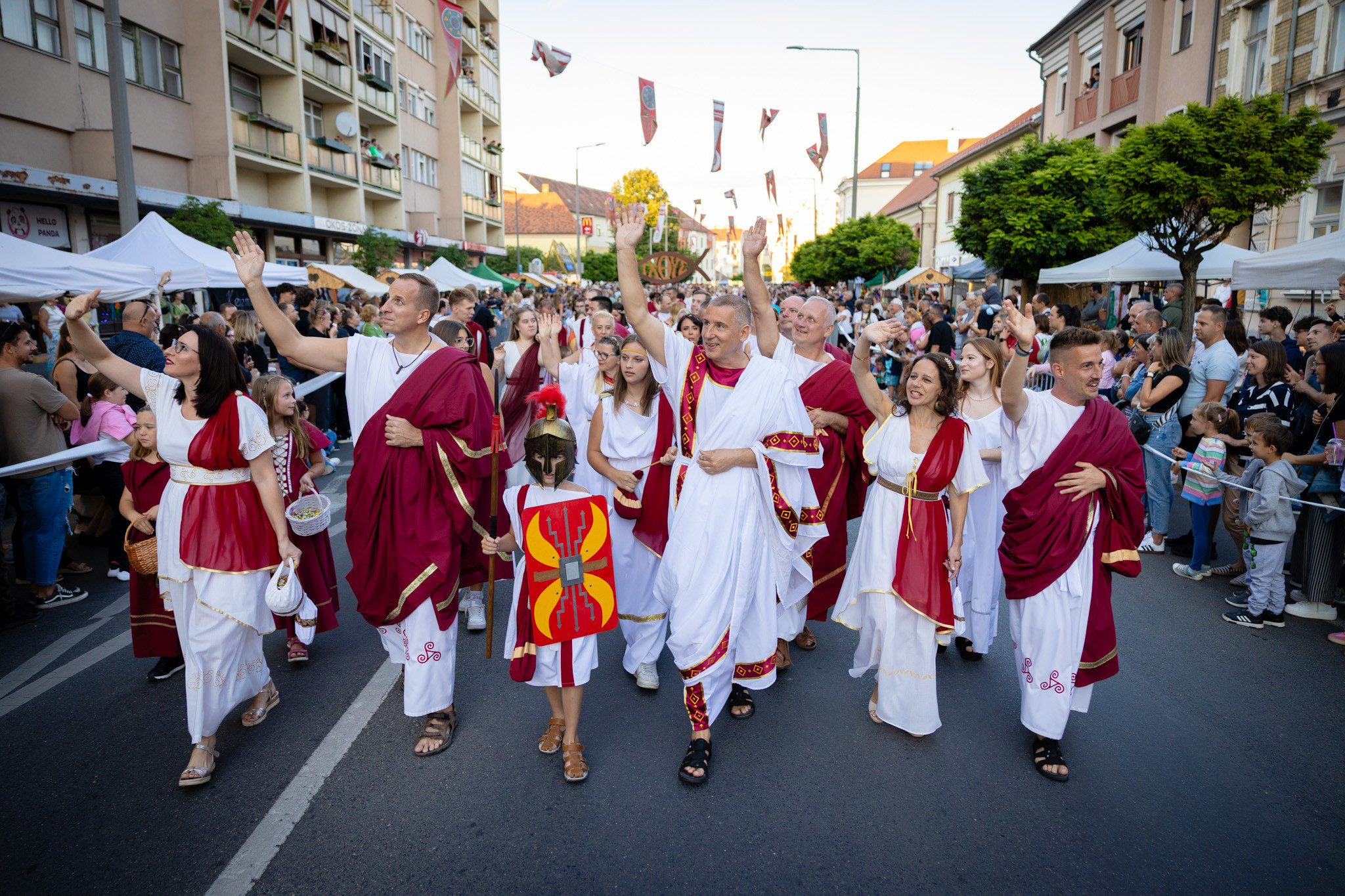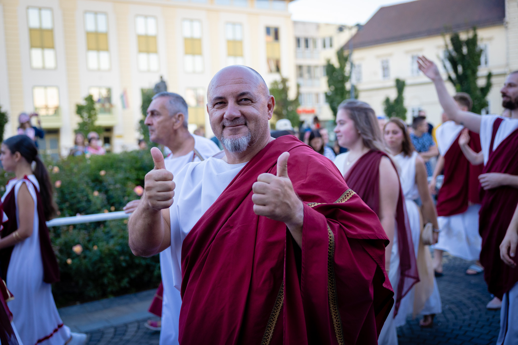 Augusztus 22-én, pénteken a Karnevál időkereke kétezer esztendő történelmi korait, a rómaiaktól a második világháborúig terjedő időszak kiemelten fontos szereplőit és eseményeit vonultatta fel a belváros ünnepi kulisszái között. A város és Pannónia dicső történetét, híres szülötteit, a magyar történelem emblematikus figuráit felvonultató menetet gólyalábasok, dobosok, zenészek, tűznyelő és tűzfújó mutatványosok, valamint zászlóforgatók produkciói színesítették. A hagyományoknak megfelelően a városvezetés is korhű jelmezbe öltözött.