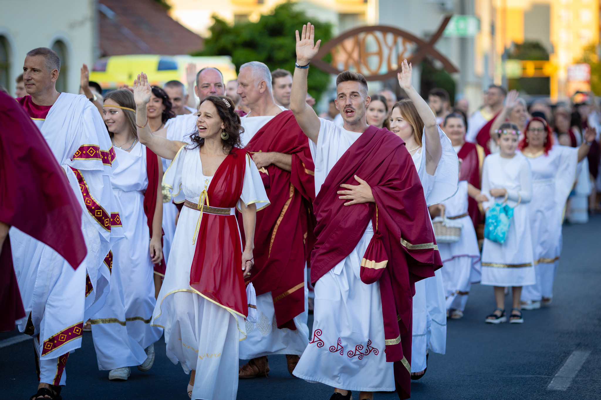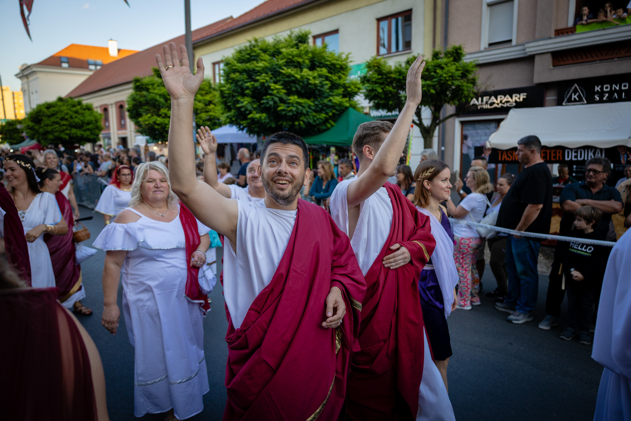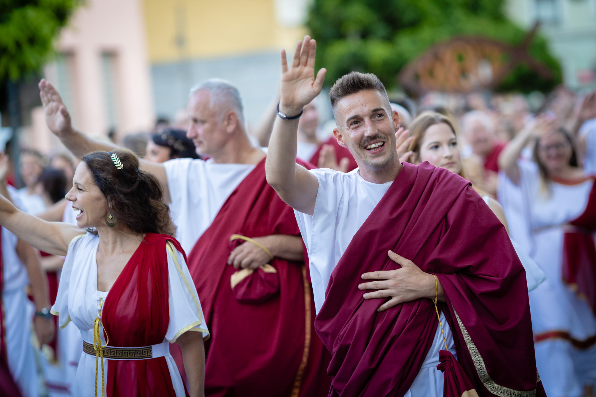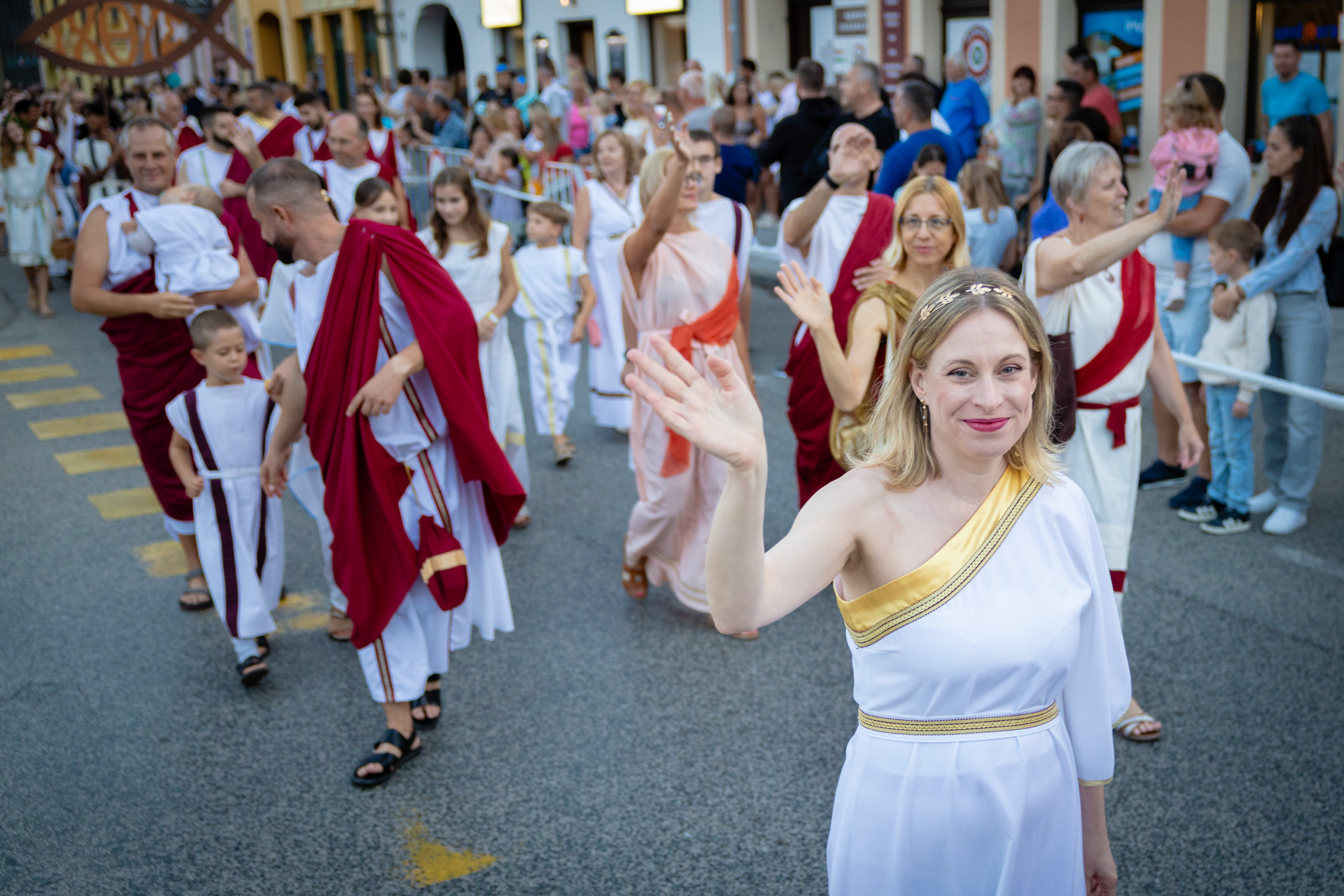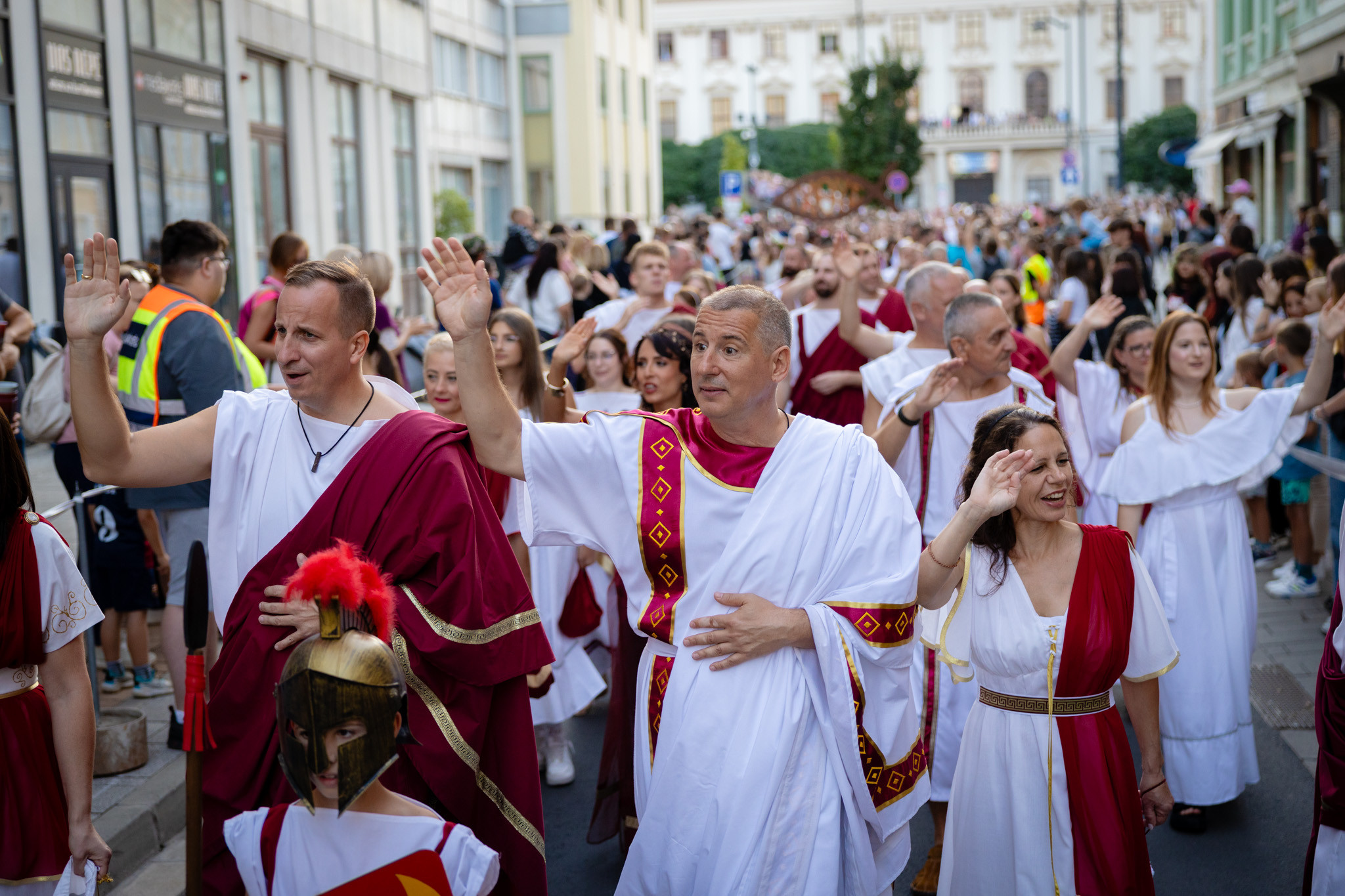 Augusztus 22-én, pénteken a Karnevál időkereke kétezer esztendő történelmi korait, a rómaiaktól a második világháborúig terjedő időszak kiemelten fontos szereplőit és eseményeit vonultatta fel a belváros ünnepi kulisszái között. A város és Pannónia dicső történetét, híres szülötteit, a magyar történelem emblematikus figuráit felvonultató menetet gólyalábasok, dobosok, zenészek, tűznyelő és tűzfújó mutatványosok, valamint zászlóforgatók produkciói színesítették. A hagyományoknak megfelelően a városvezetés is korhű jelmezbe öltözött.
