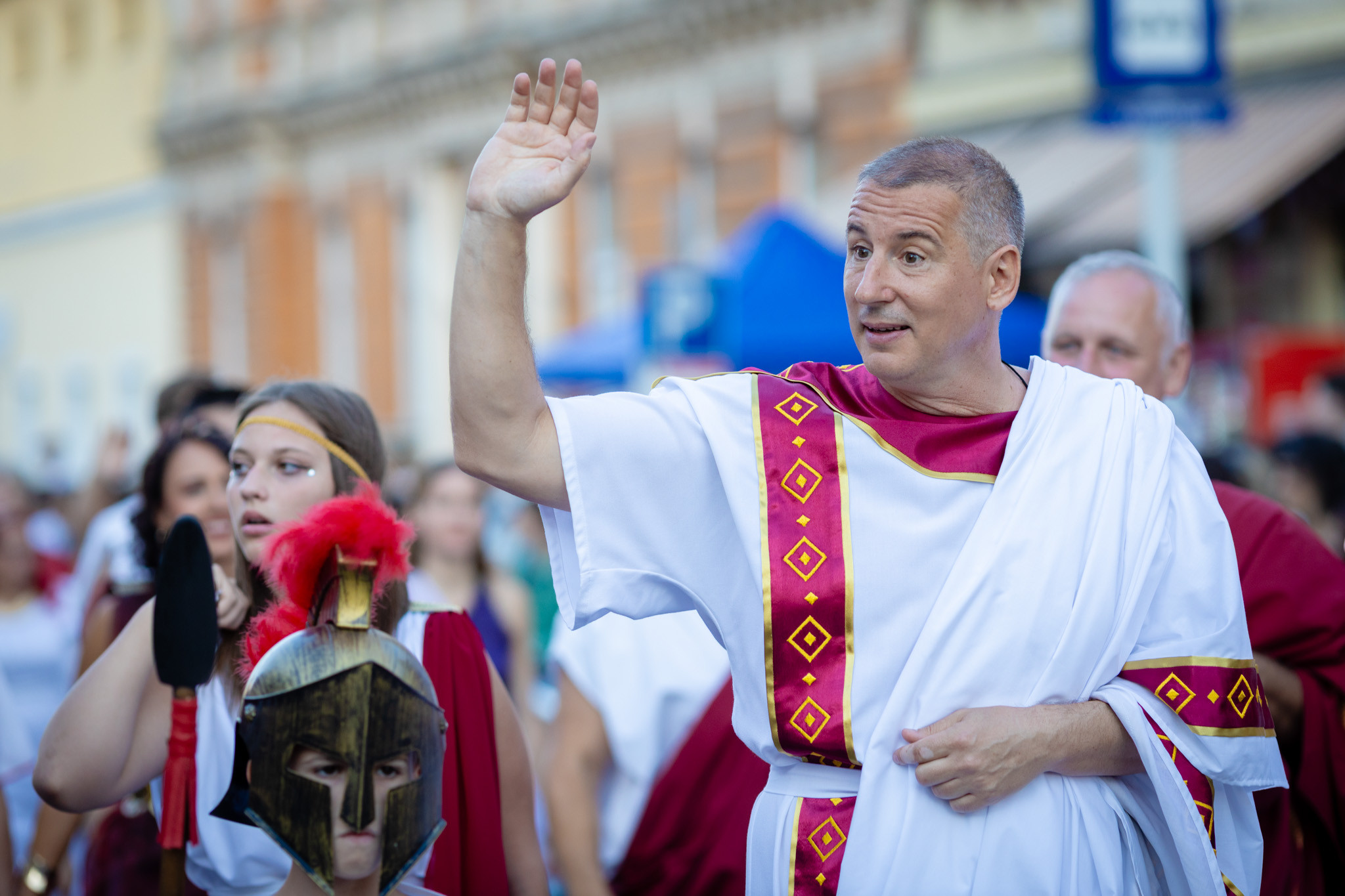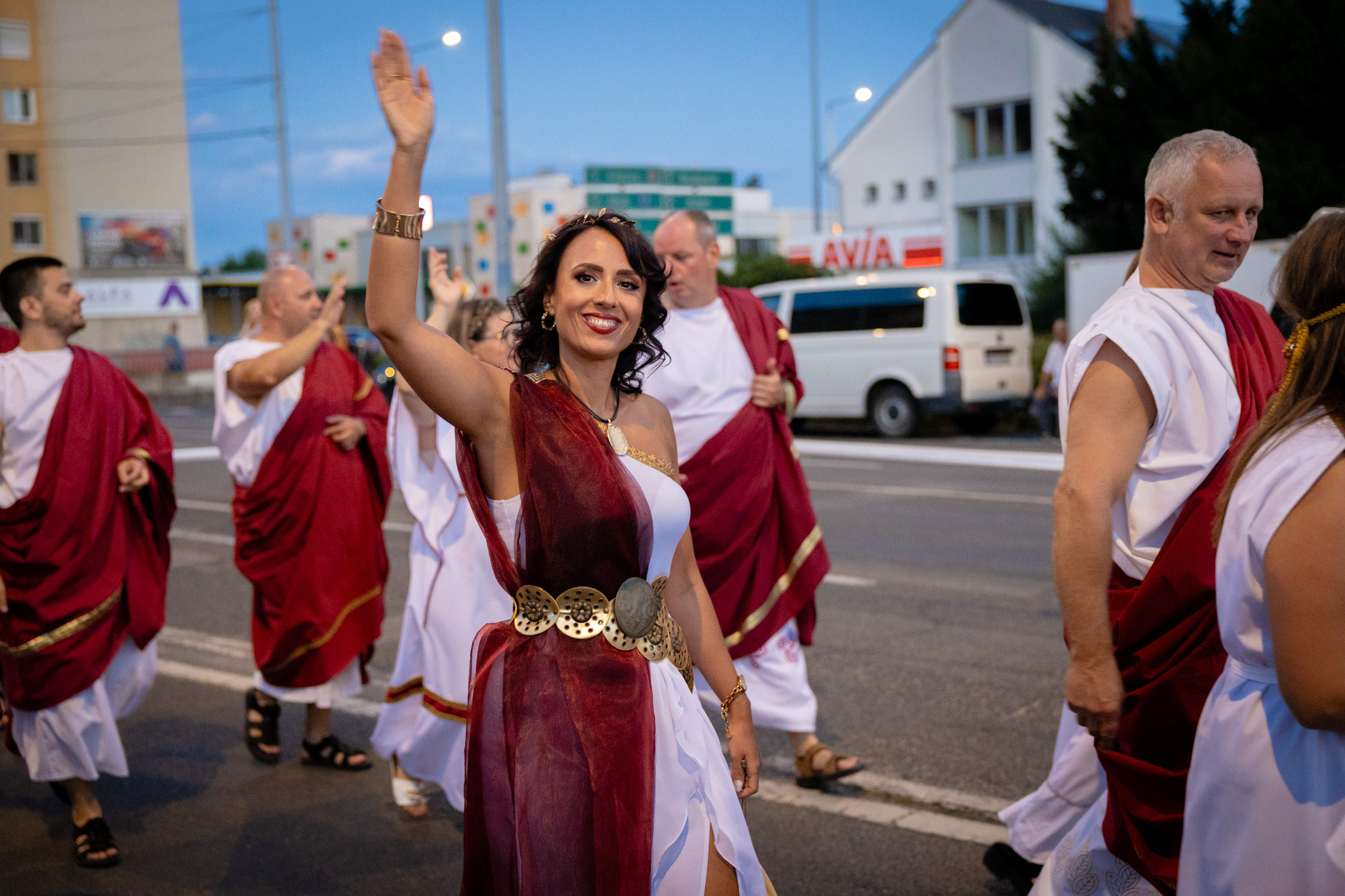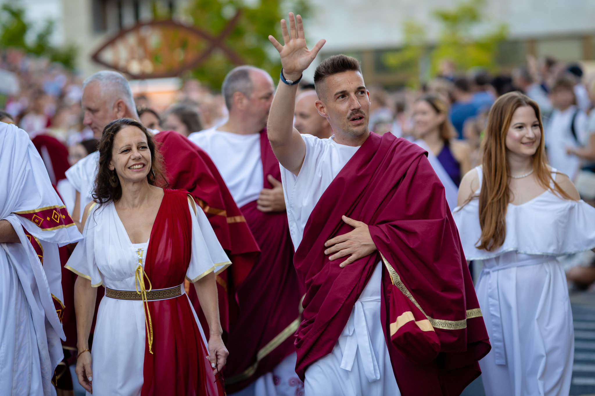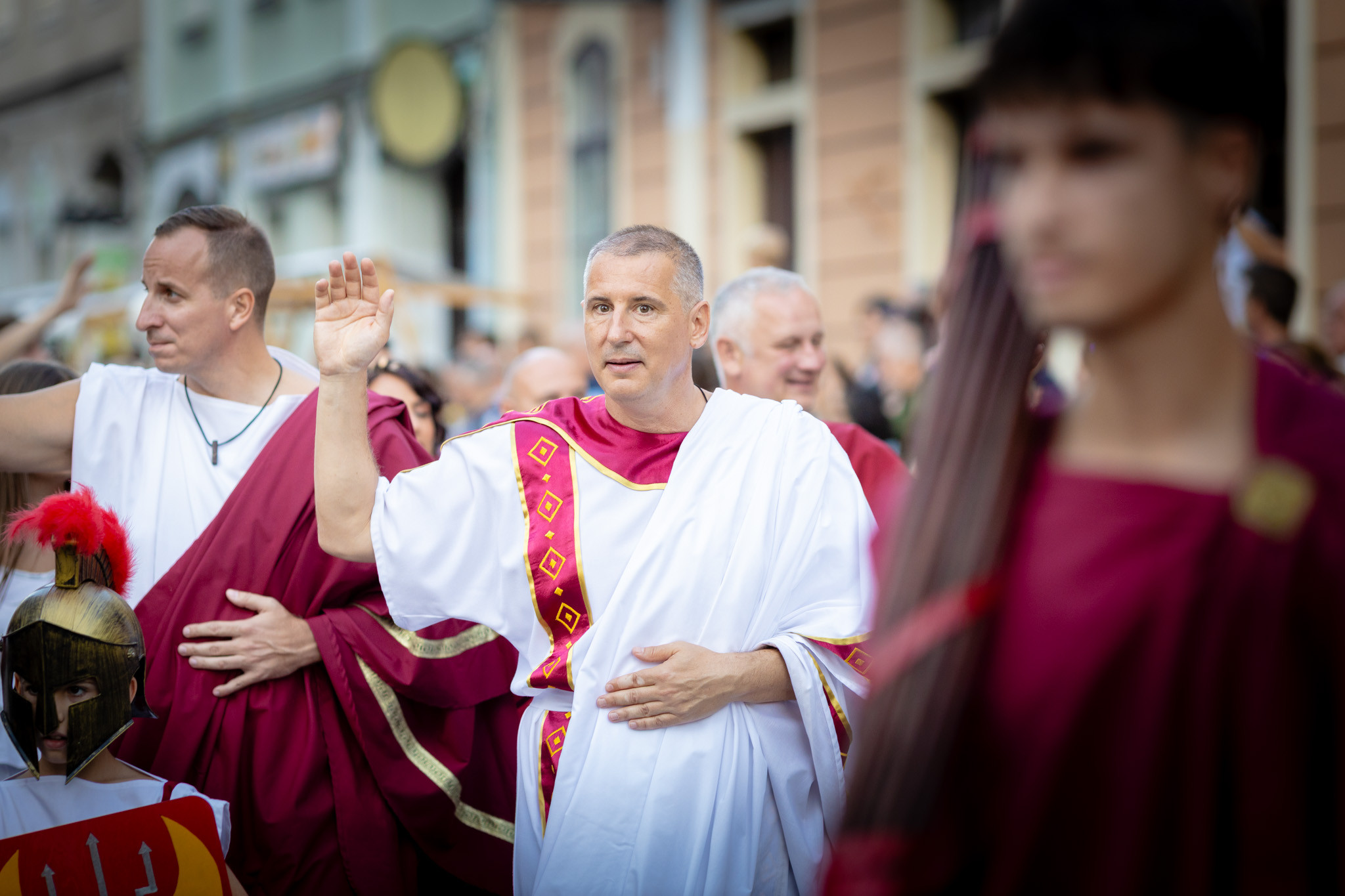 Augusztus 22-én, pénteken a Karnevál időkereke kétezer esztendő történelmi korait, a rómaiaktól a második világháborúig terjedő időszak kiemelten fontos szereplőit és eseményeit vonultatta fel a belváros ünnepi kulisszái között. A város és Pannónia dicső történetét, híres szülötteit, a magyar történelem emblematikus figuráit felvonultató menetet gólyalábasok, dobosok, zenészek, tűznyelő és tűzfújó mutatványosok, valamint zászlóforgatók produkciói színesítették. A hagyományoknak megfelelően a városvezetés is korhű jelmezbe öltözött.