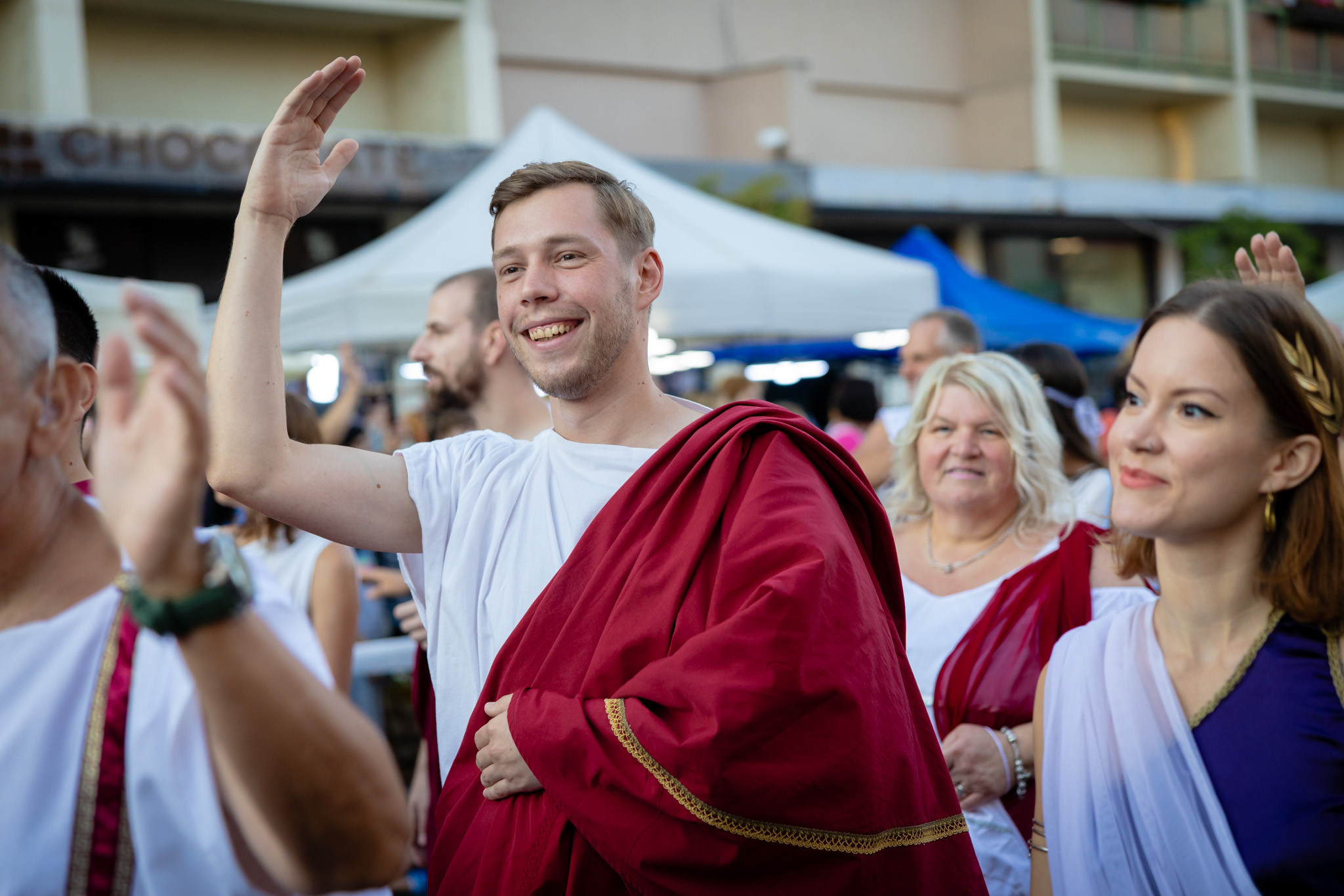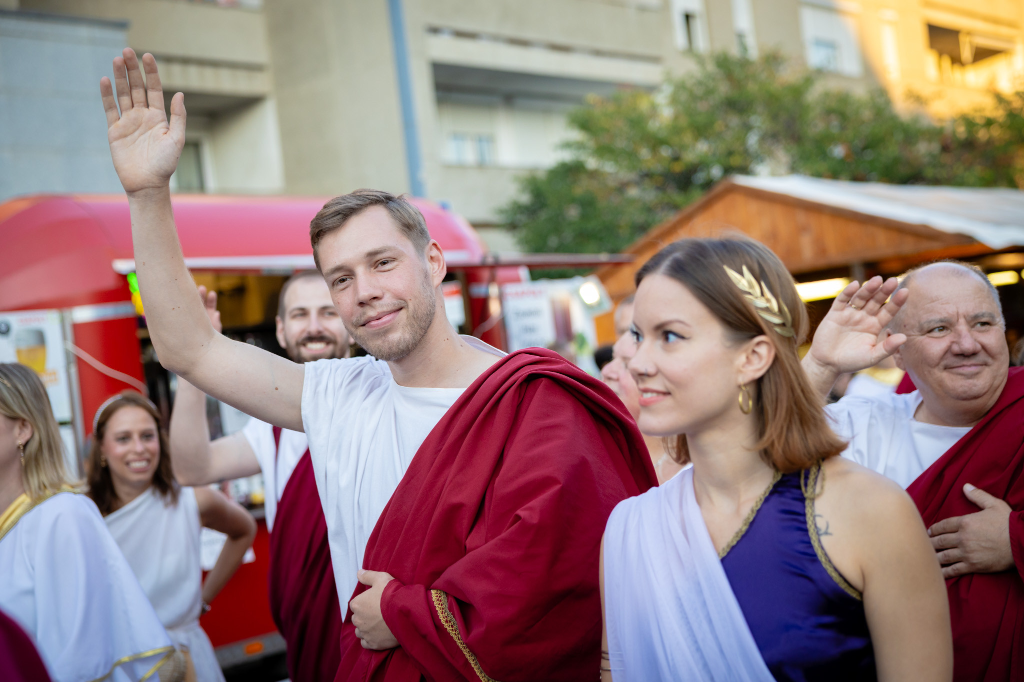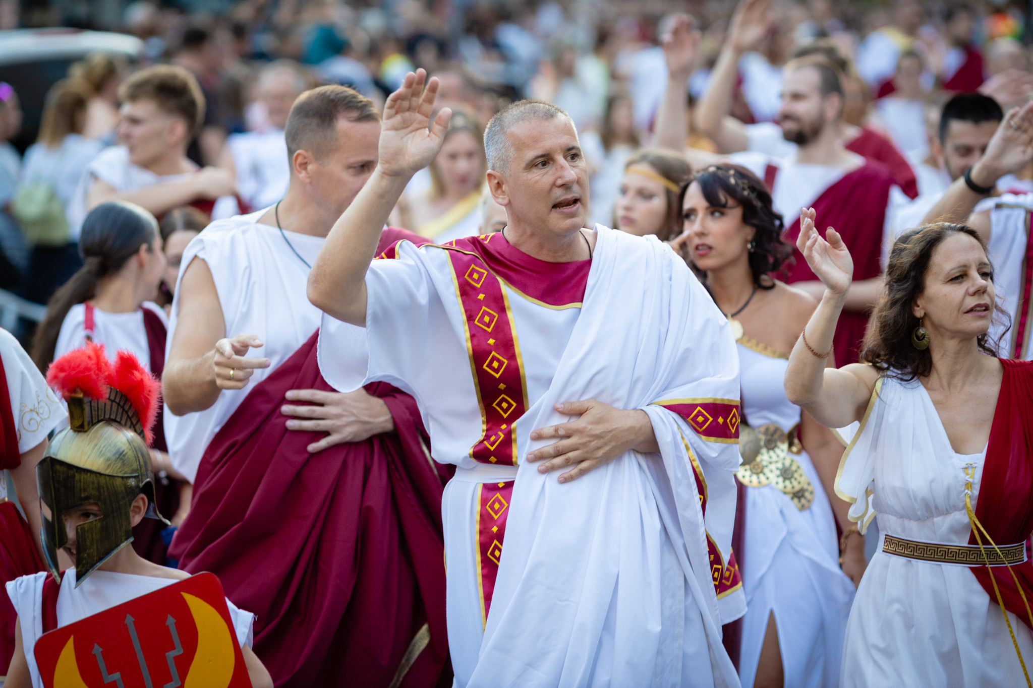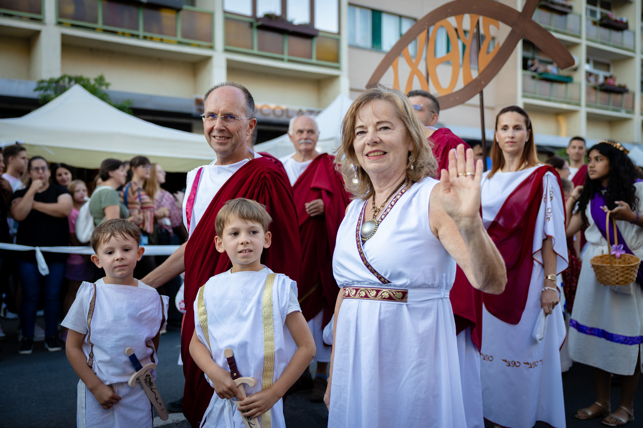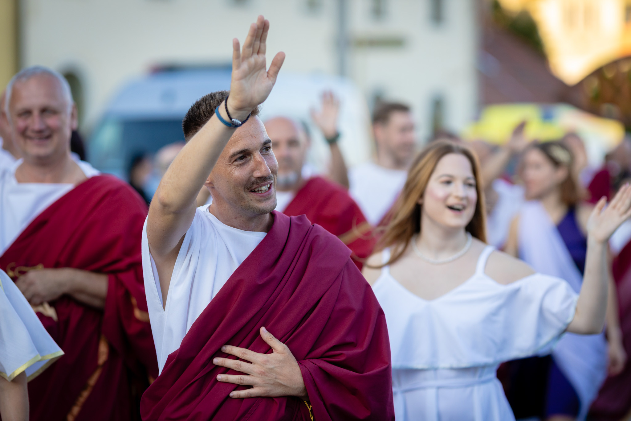 Augusztus 22-én, pénteken a Karnevál időkereke kétezer esztendő történelmi korait, a rómaiaktól a második világháborúig terjedő időszak kiemelten fontos szereplőit és eseményeit vonultatta fel a belváros ünnepi kulisszái között. A város és Pannónia dicső történetét, híres szülötteit, a magyar történelem emblematikus figuráit felvonultató menetet gólyalábasok, dobosok, zenészek, tűznyelő és tűzfújó mutatványosok, valamint zászlóforgatók produkciói színesítették. A hagyományoknak megfelelően a városvezetés is korhű jelmezbe öltözött.
