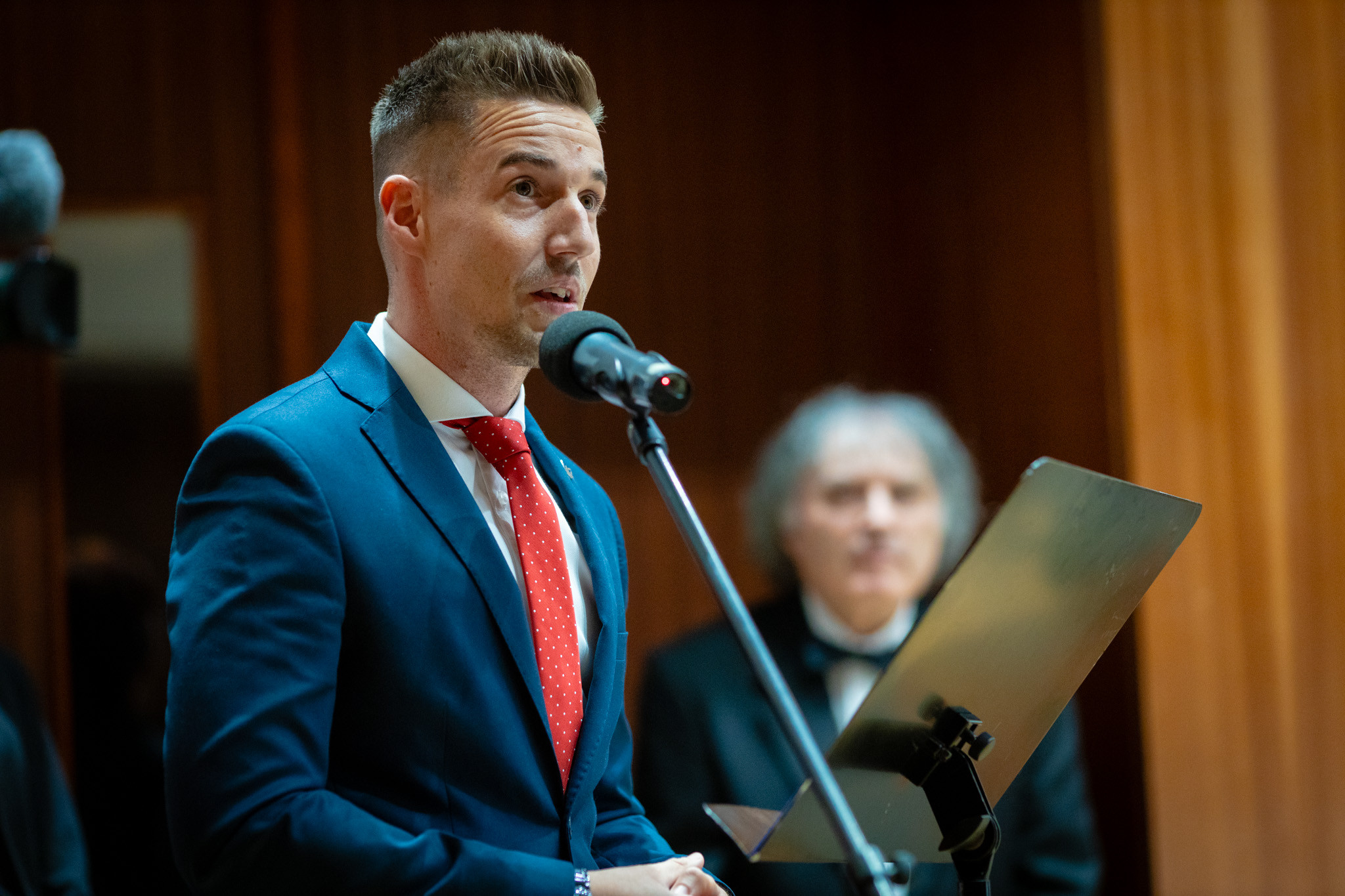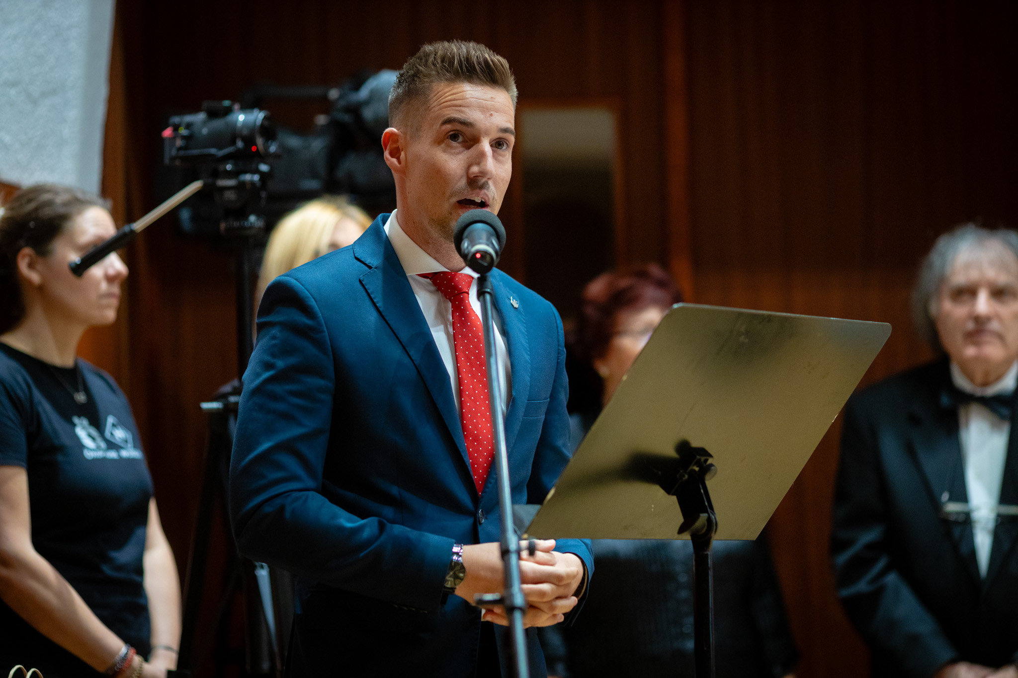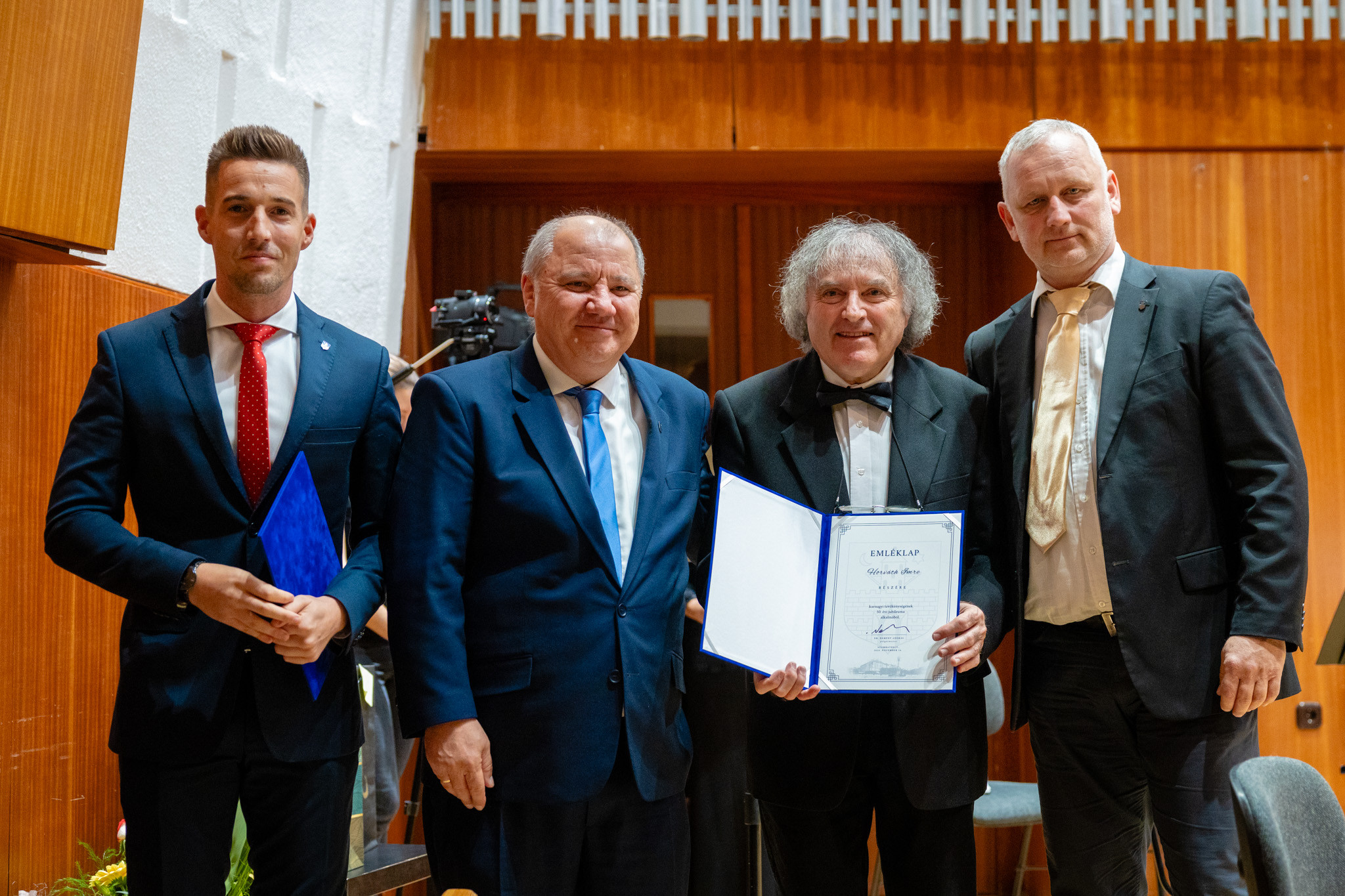 A koncert előtt ünnepi köszöntőt mondott Horváth Soma, kultúráért is felelős alpolgármester, majd Putz Attila, és Tóth Kálmán bizottsági elnökökkel közösen a város nevében emléklappal ismerték el Horváth Imre karnagy 50 éves karnagyi tevékenységét.