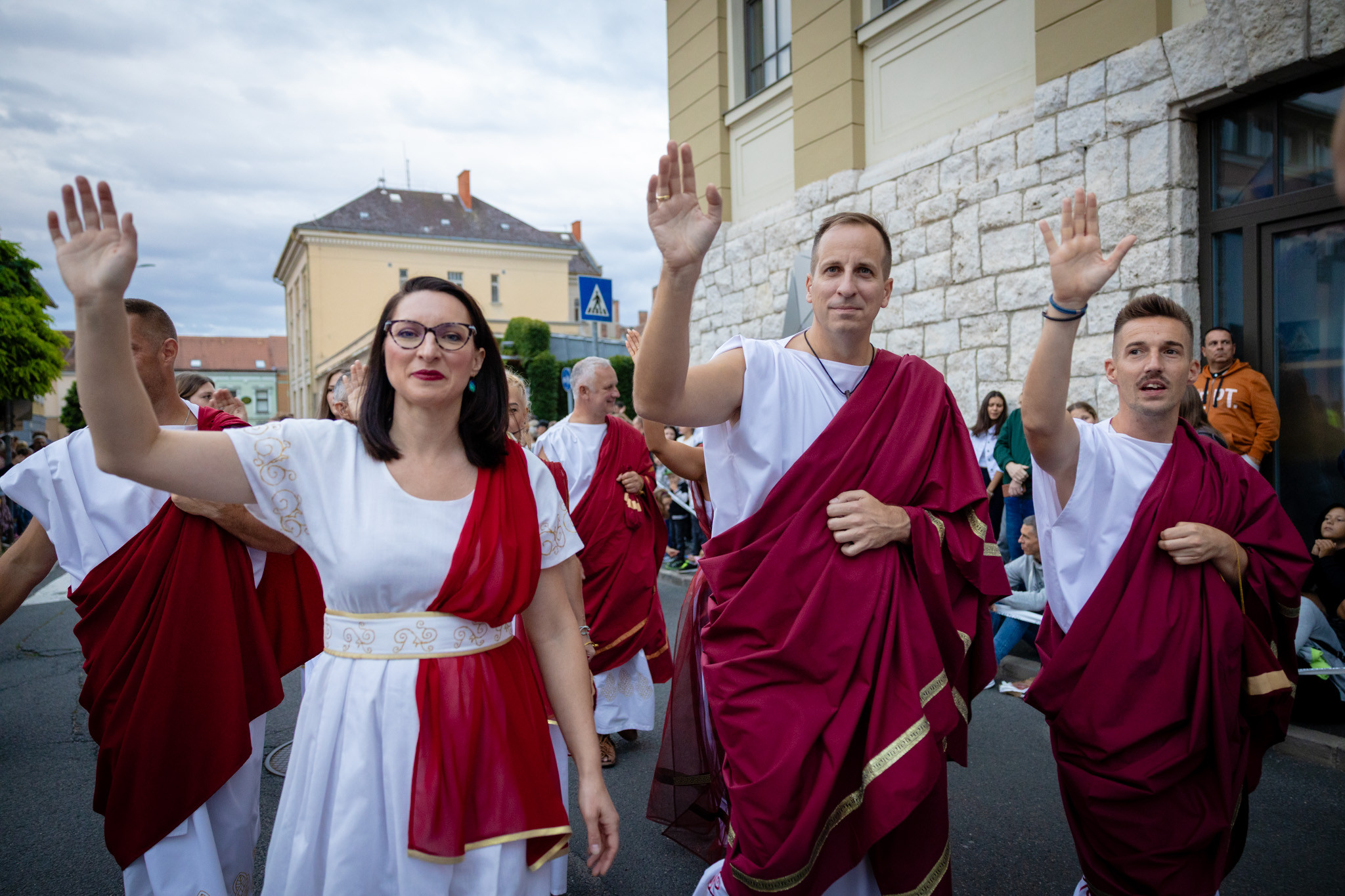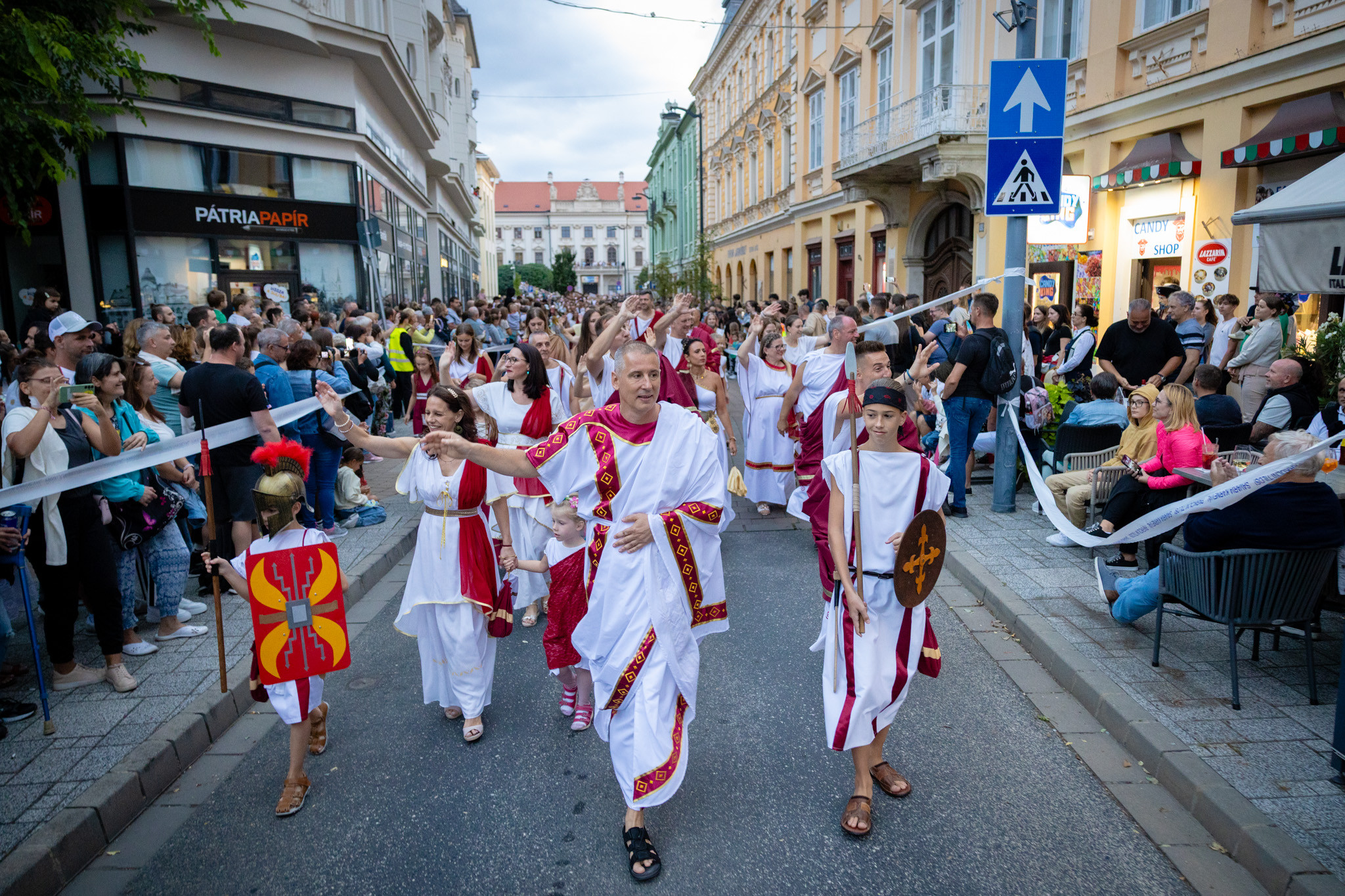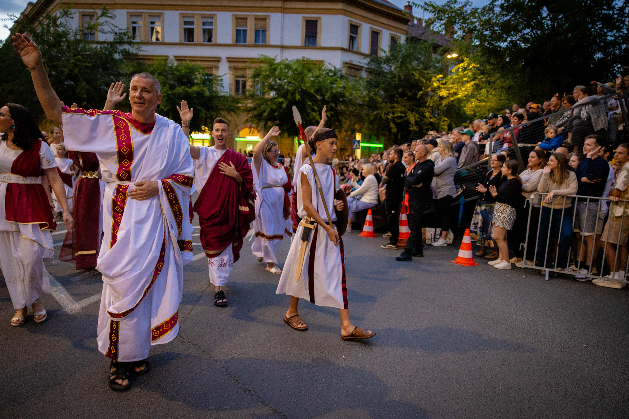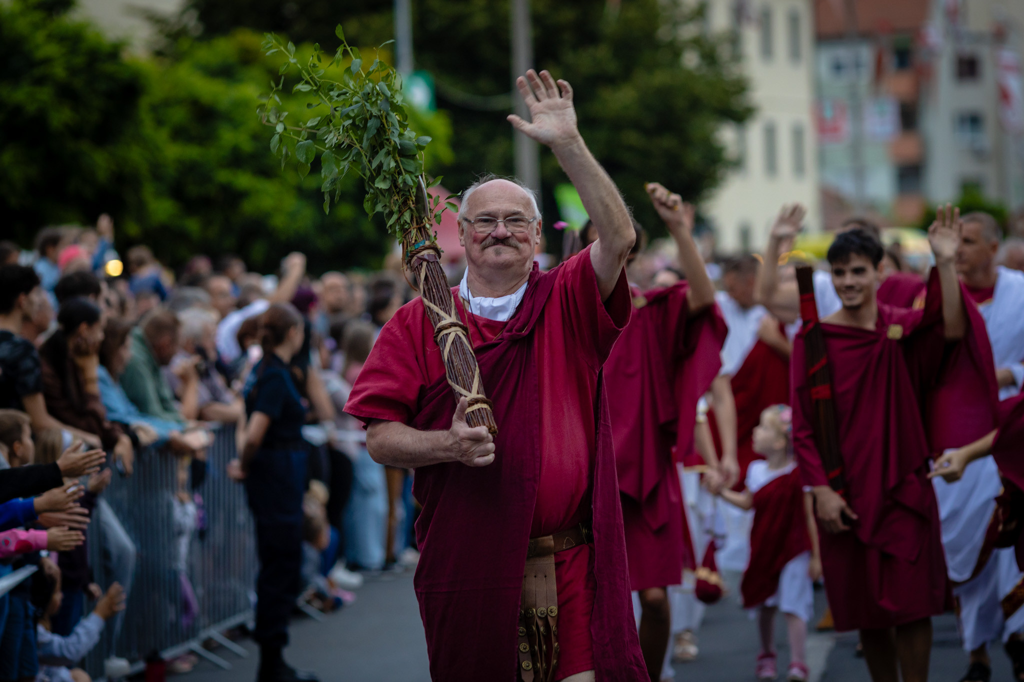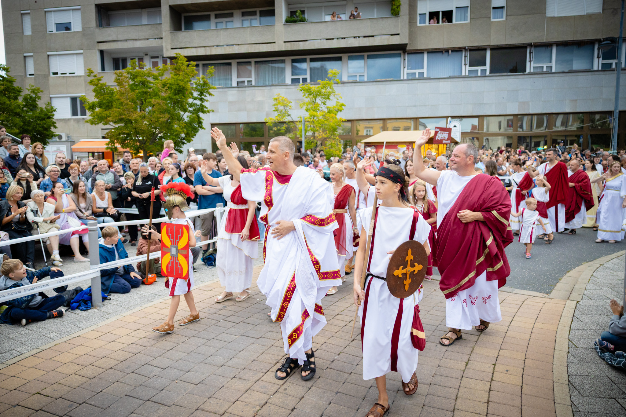 Augusztus 23-án, szombaton a Karnevál időkereke kétezer esztendő történelmi korait, a rómaiaktól a második világháborúig terjedő időszak kiemelten fontos szereplőit és eseményeit vonultatta fel a belváros ünnepi kulisszái között, hasonlóan a pénteki felvonuláshoz. A város és Pannónia dicső történetét, híres szülötteit, a magyar történelem emblematikus figuráit felvonultató menetet gólyalábasok, dobosok, zenészek, tűznyelő és tűzfújó mutatványosok, valamint zászlóforgatók produkciói színesítették.