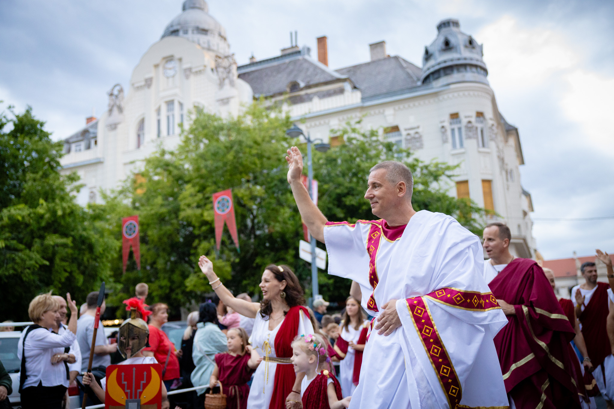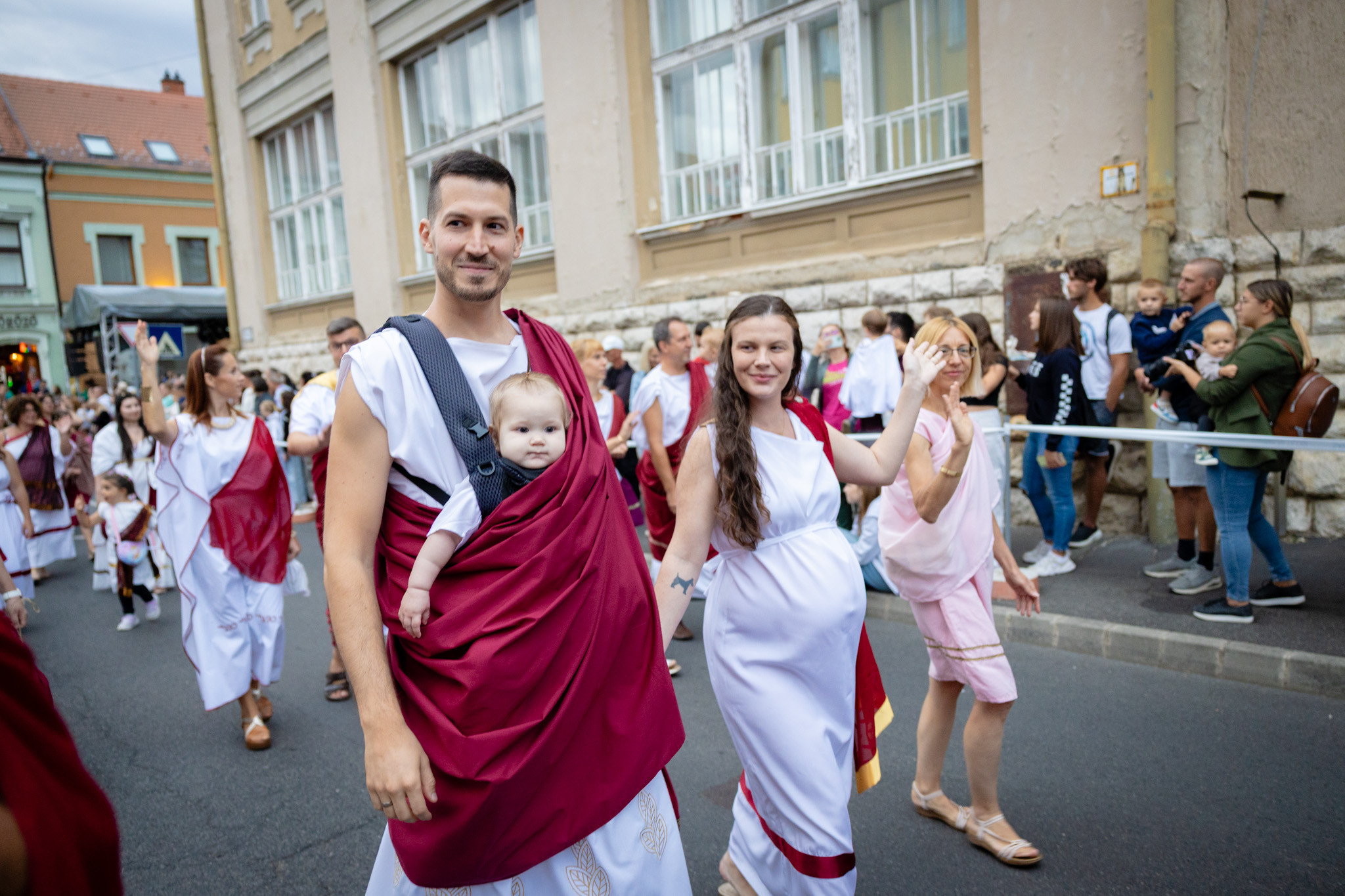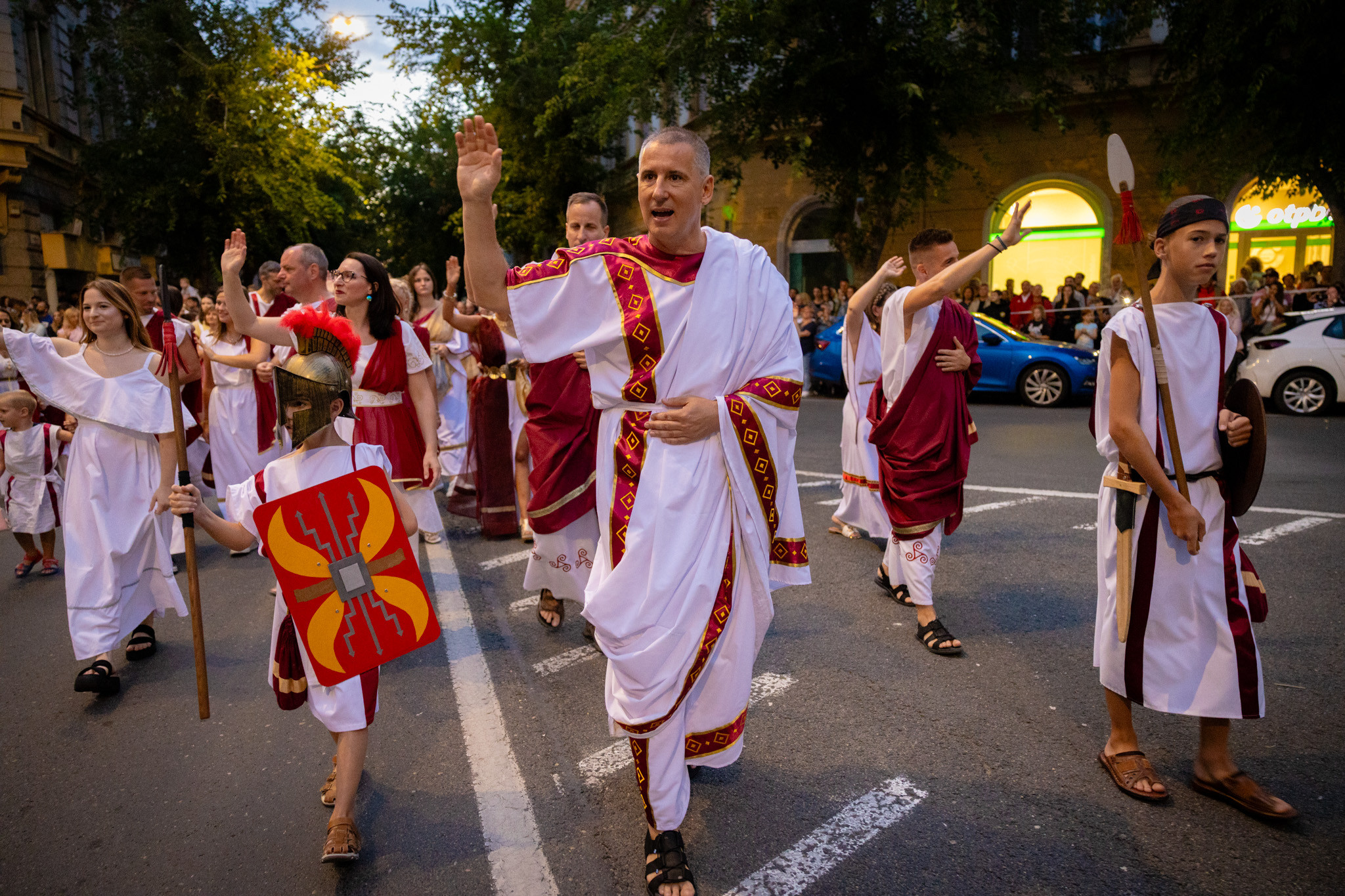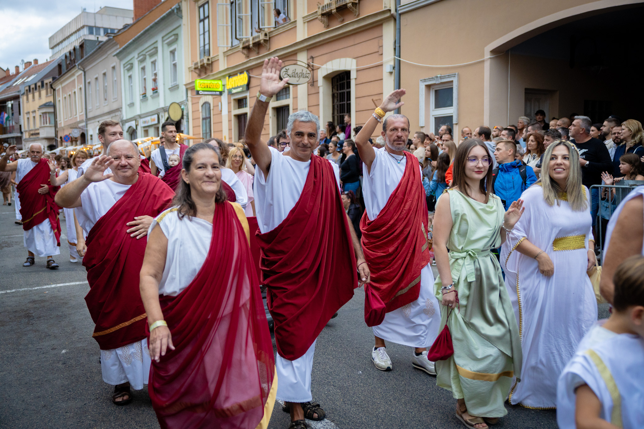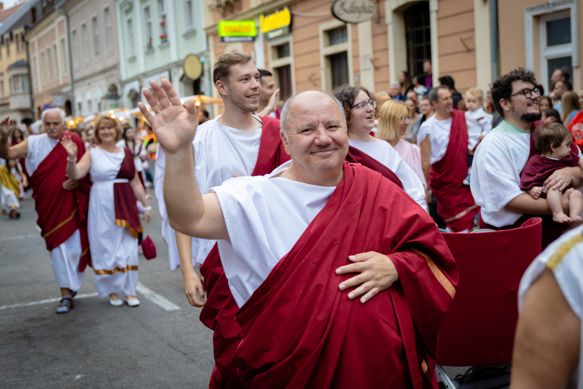 Augusztus 23-án, szombaton a Karnevál időkereke kétezer esztendő történelmi korait, a rómaiaktól a második világháborúig terjedő időszak kiemelten fontos szereplőit és eseményeit vonultatta fel a belváros ünnepi kulisszái között, hasonlóan a pénteki felvonuláshoz. A város és Pannónia dicső történetét, híres szülötteit, a magyar történelem emblematikus figuráit felvonultató menetet gólyalábasok, dobosok, zenészek, tűznyelő és tűzfújó mutatványosok, valamint zászlóforgatók produkciói színesítették.
