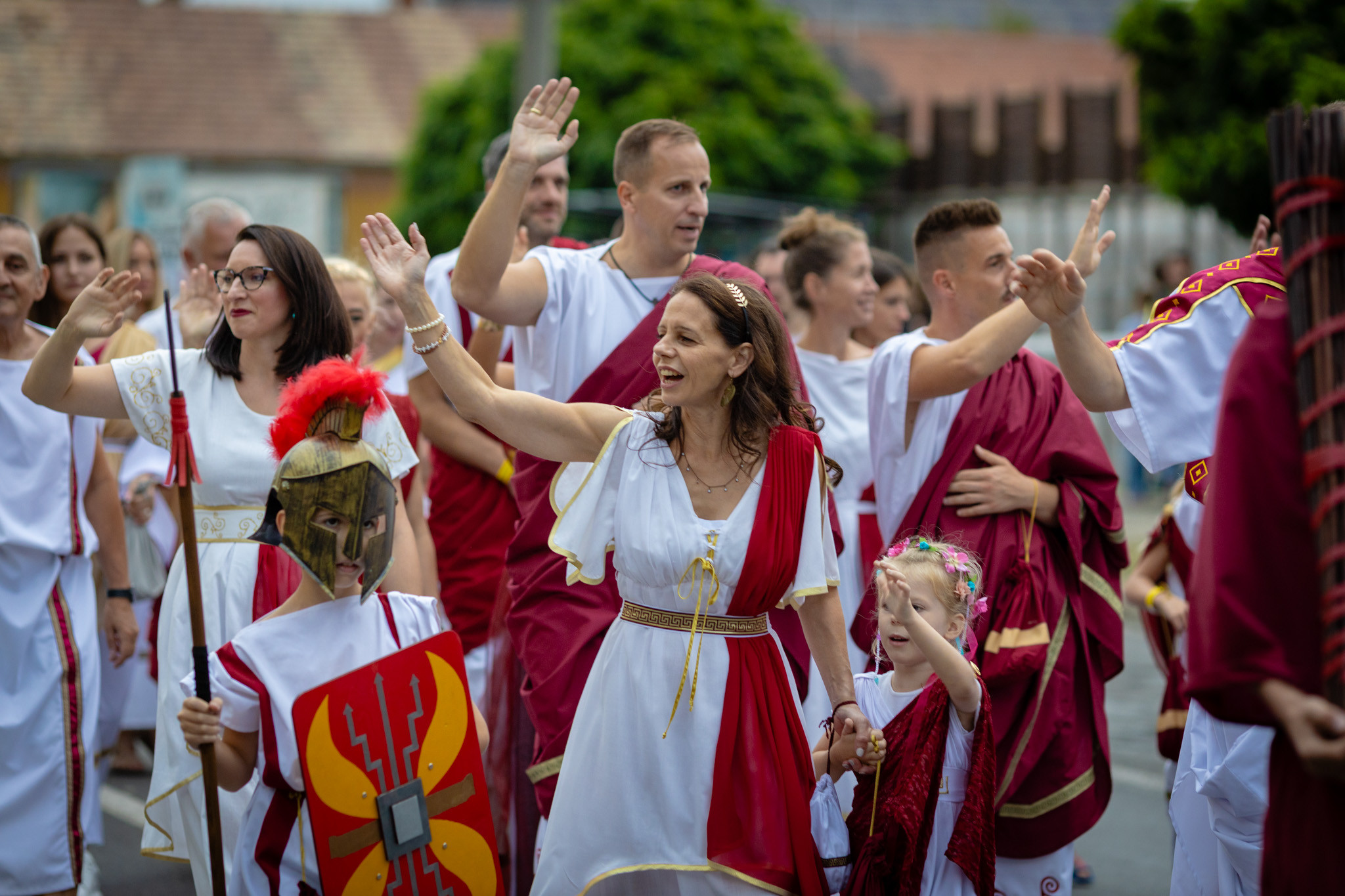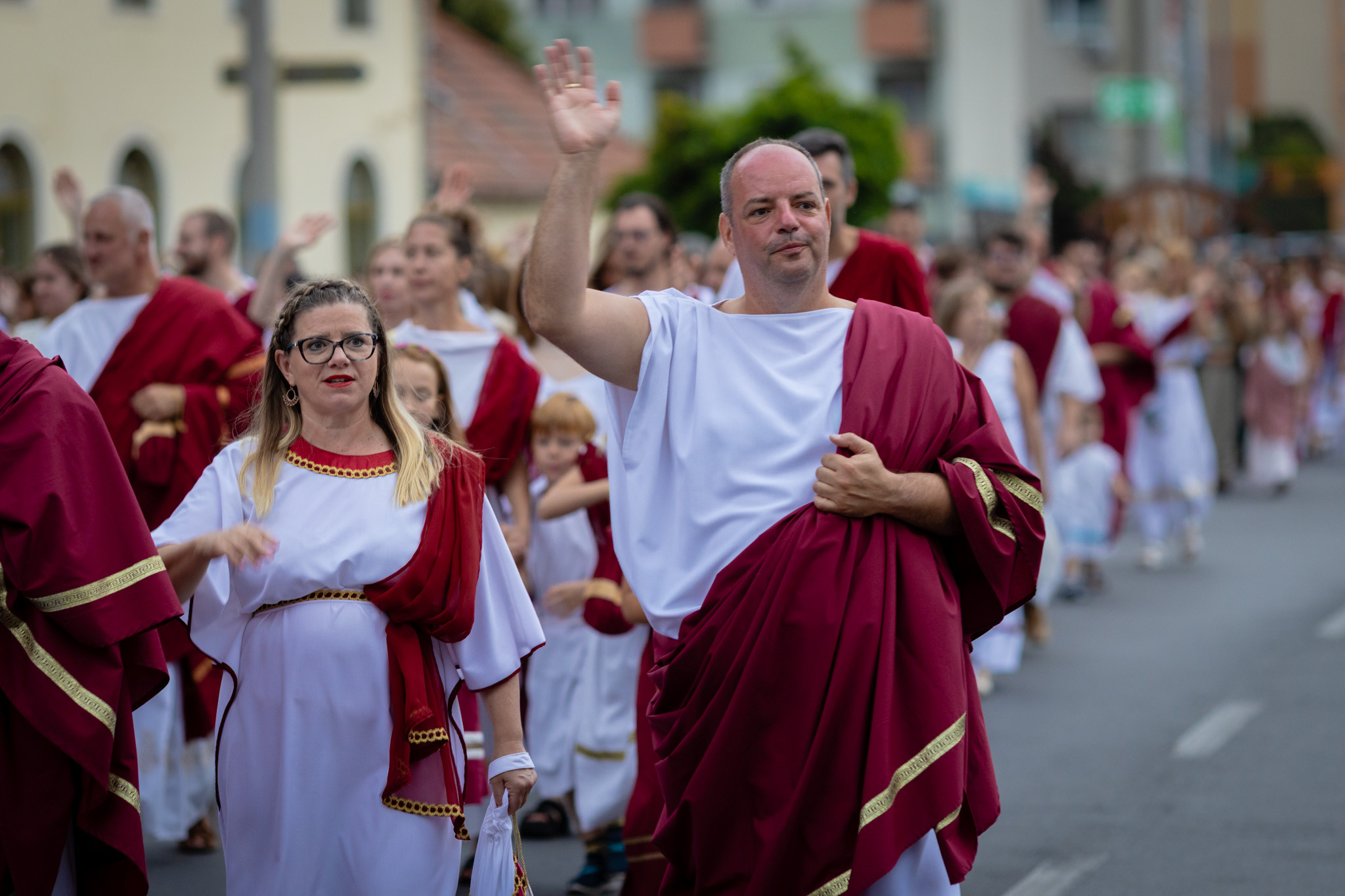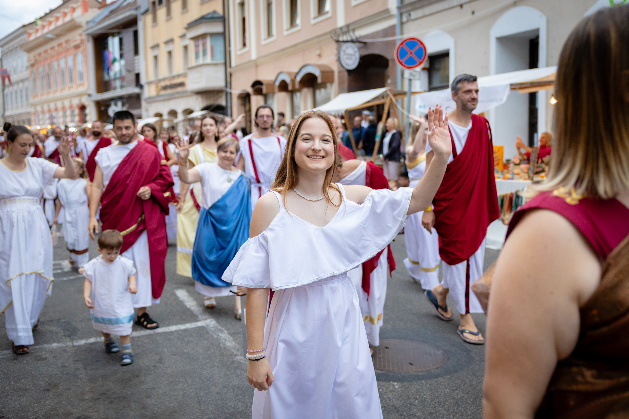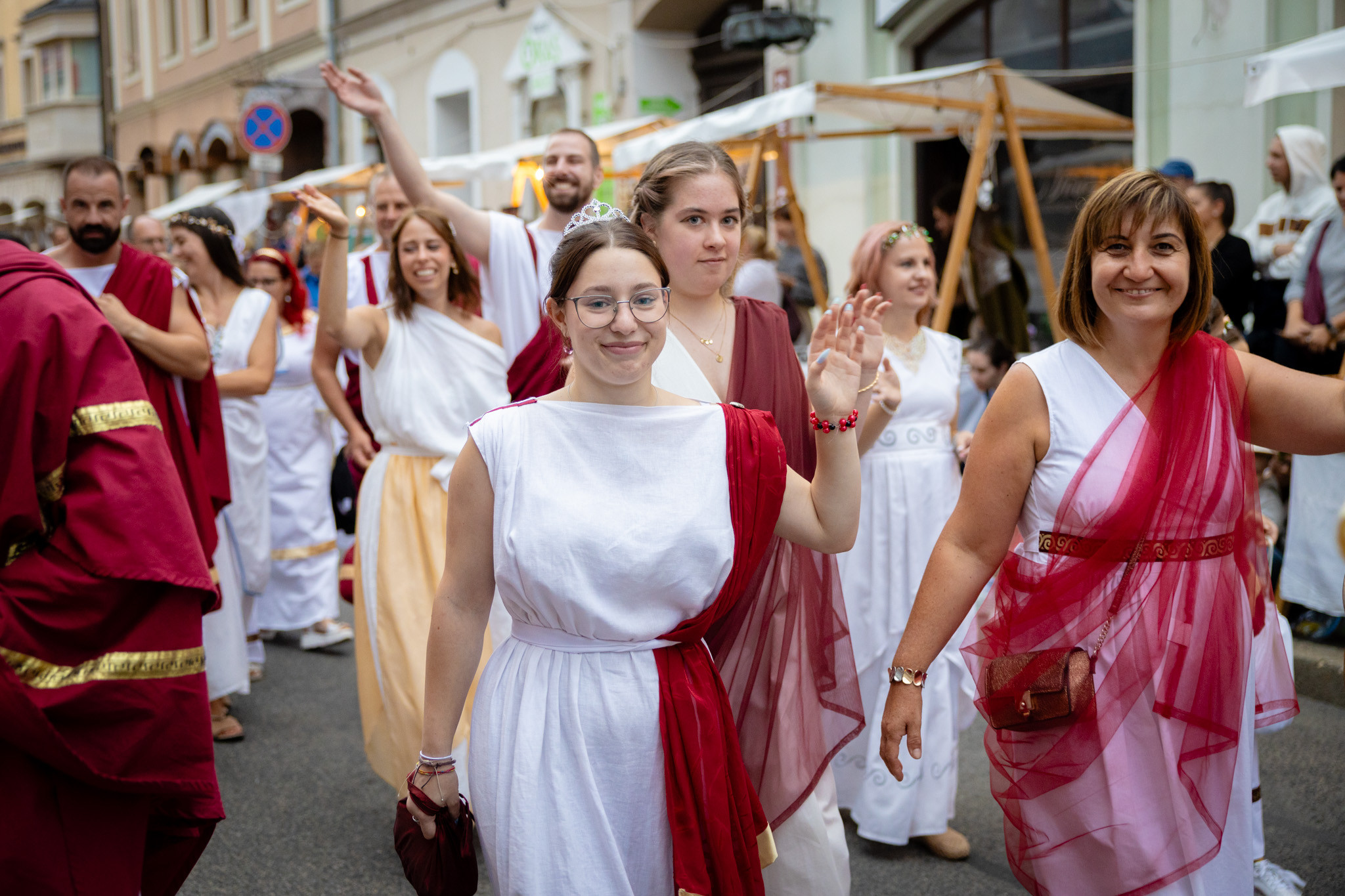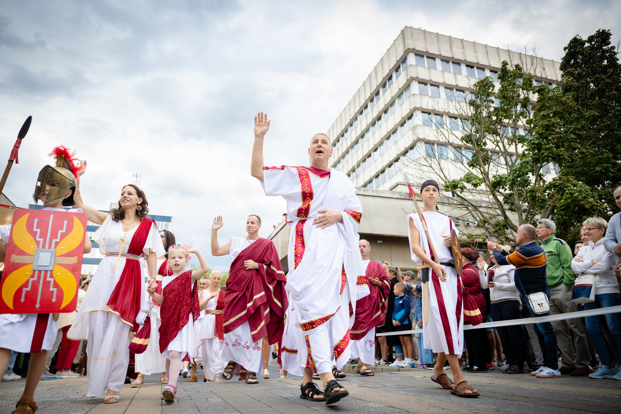 Augusztus 23-án, szombaton a Karnevál időkereke kétezer esztendő történelmi korait, a rómaiaktól a második világháborúig terjedő időszak kiemelten fontos szereplőit és eseményeit vonultatta fel a belváros ünnepi kulisszái között, hasonlóan a pénteki felvonuláshoz. A város és Pannónia dicső történetét, híres szülötteit, a magyar történelem emblematikus figuráit felvonultató menetet gólyalábasok, dobosok, zenészek, tűznyelő és tűzfújó mutatványosok, valamint zászlóforgatók produkciói színesítették.