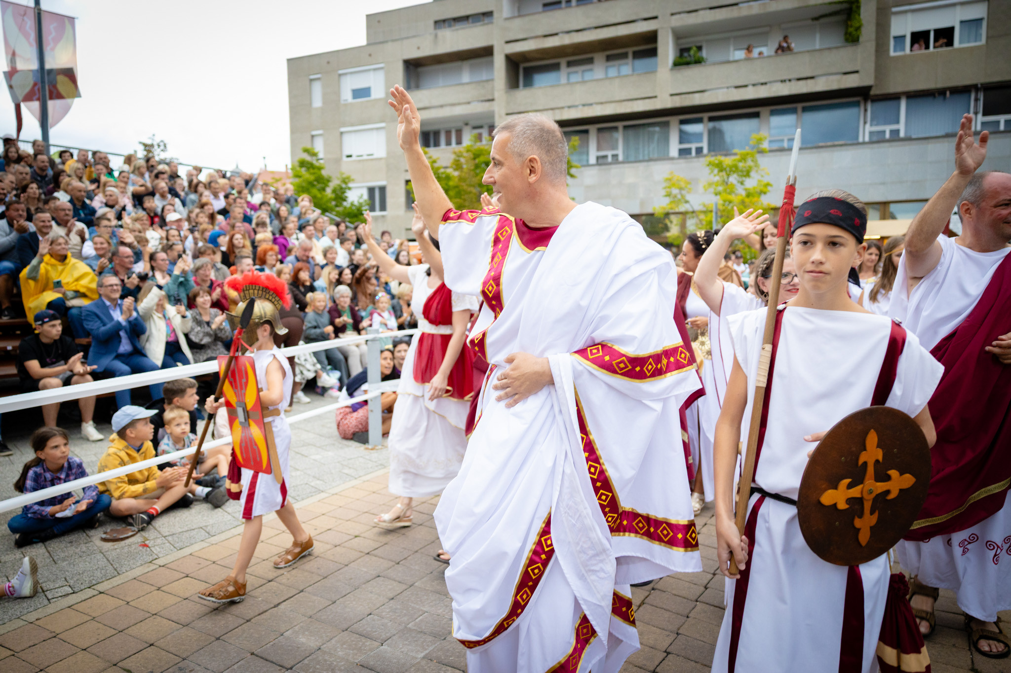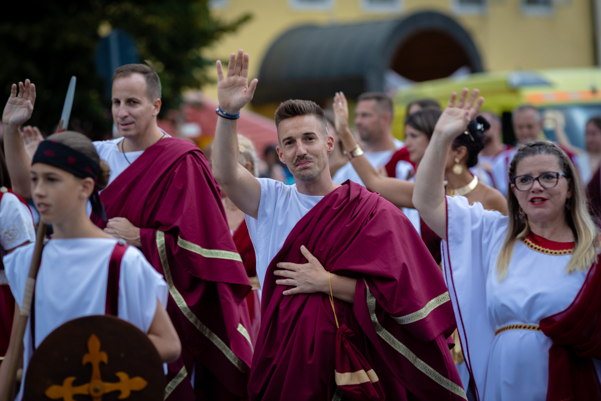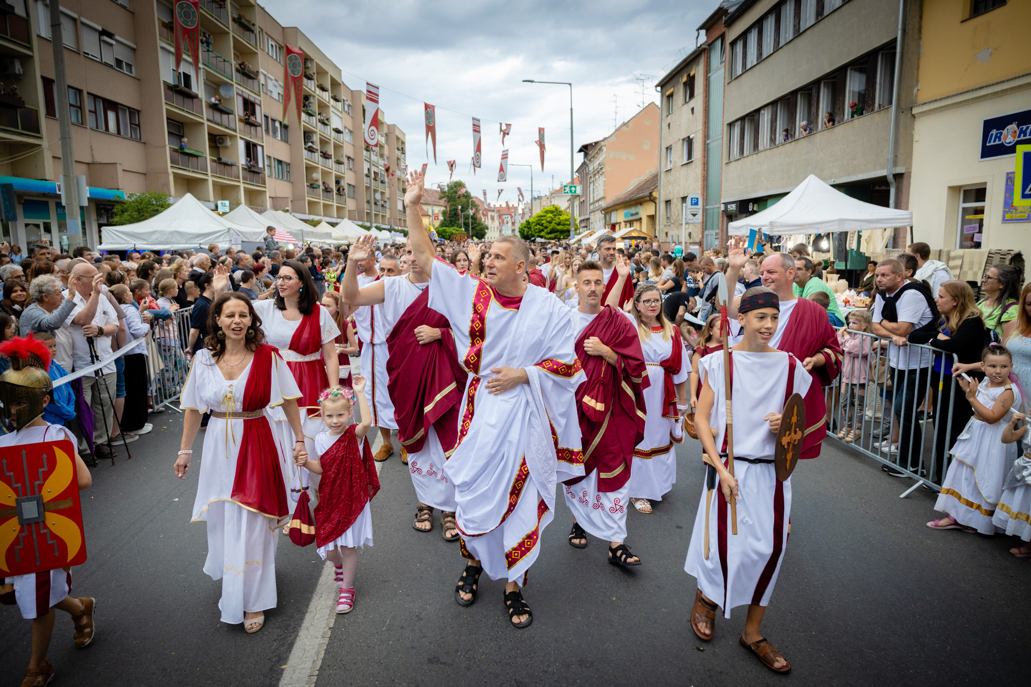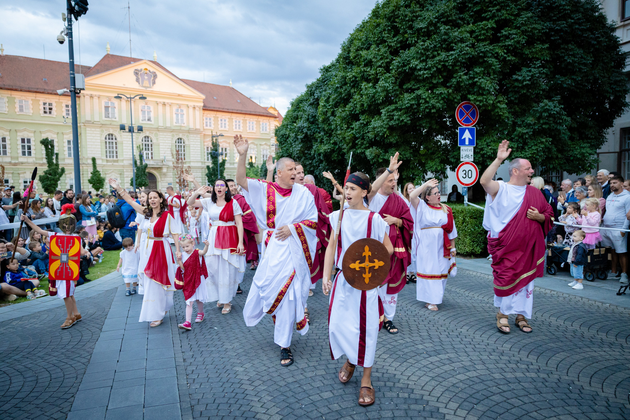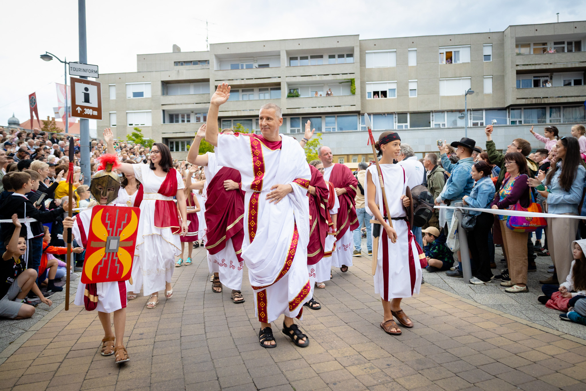 Augusztus 23-án, szombaton a Karnevál időkereke kétezer esztendő történelmi korait, a rómaiaktól a második világháborúig terjedő időszak kiemelten fontos szereplőit és eseményeit vonultatta fel a belváros ünnepi kulisszái között, hasonlóan a pénteki felvonuláshoz. A város és Pannónia dicső történetét, híres szülötteit, a magyar történelem emblematikus figuráit felvonultató menetet gólyalábasok, dobosok, zenészek, tűznyelő és tűzfújó mutatványosok, valamint zászlóforgatók produkciói színesítették.