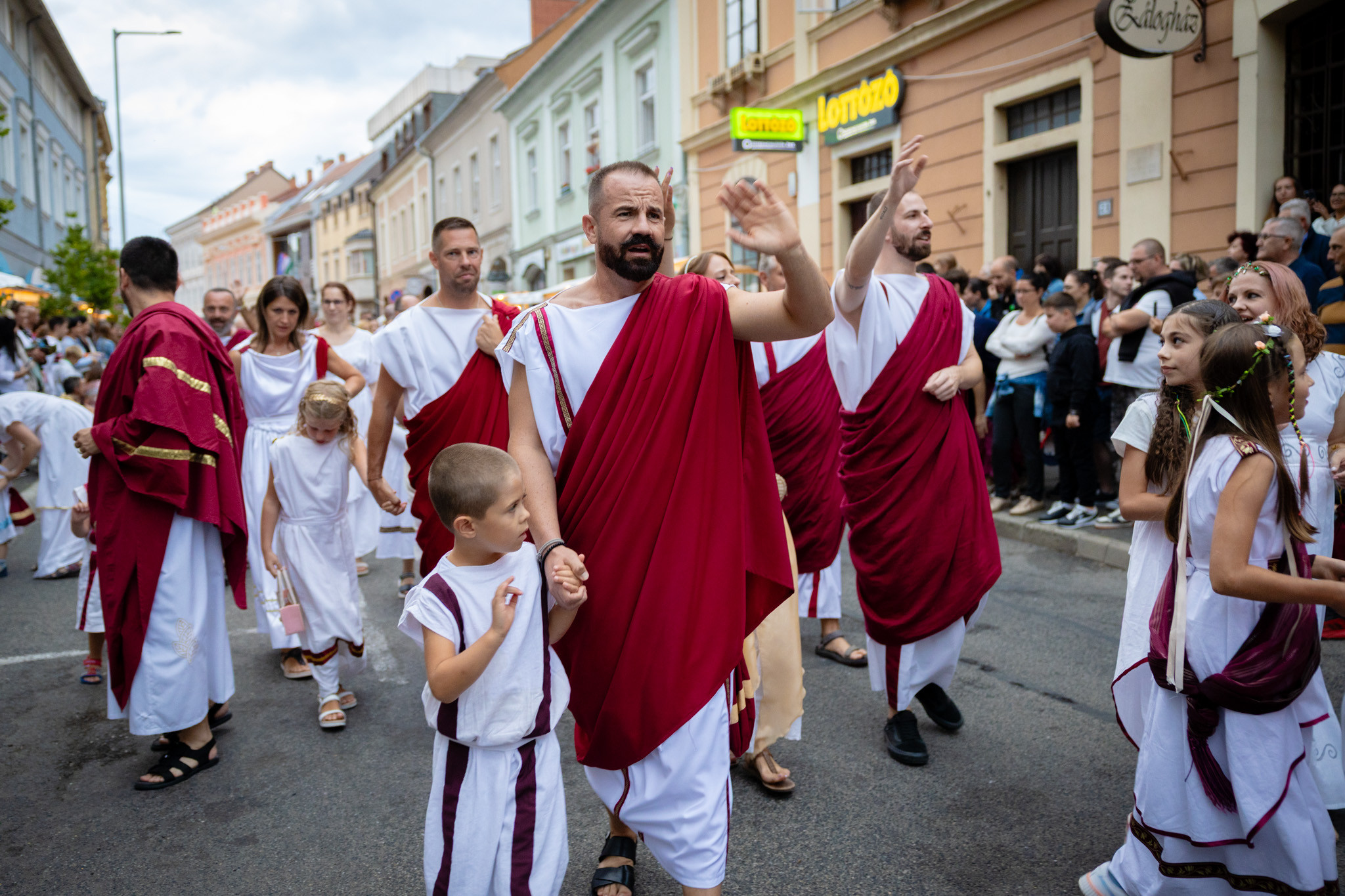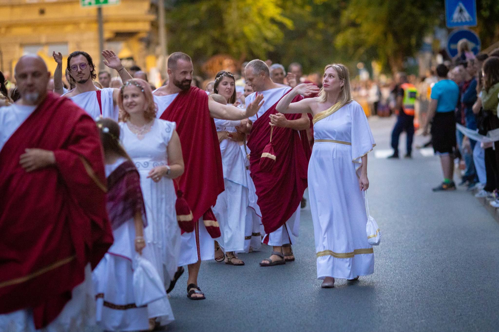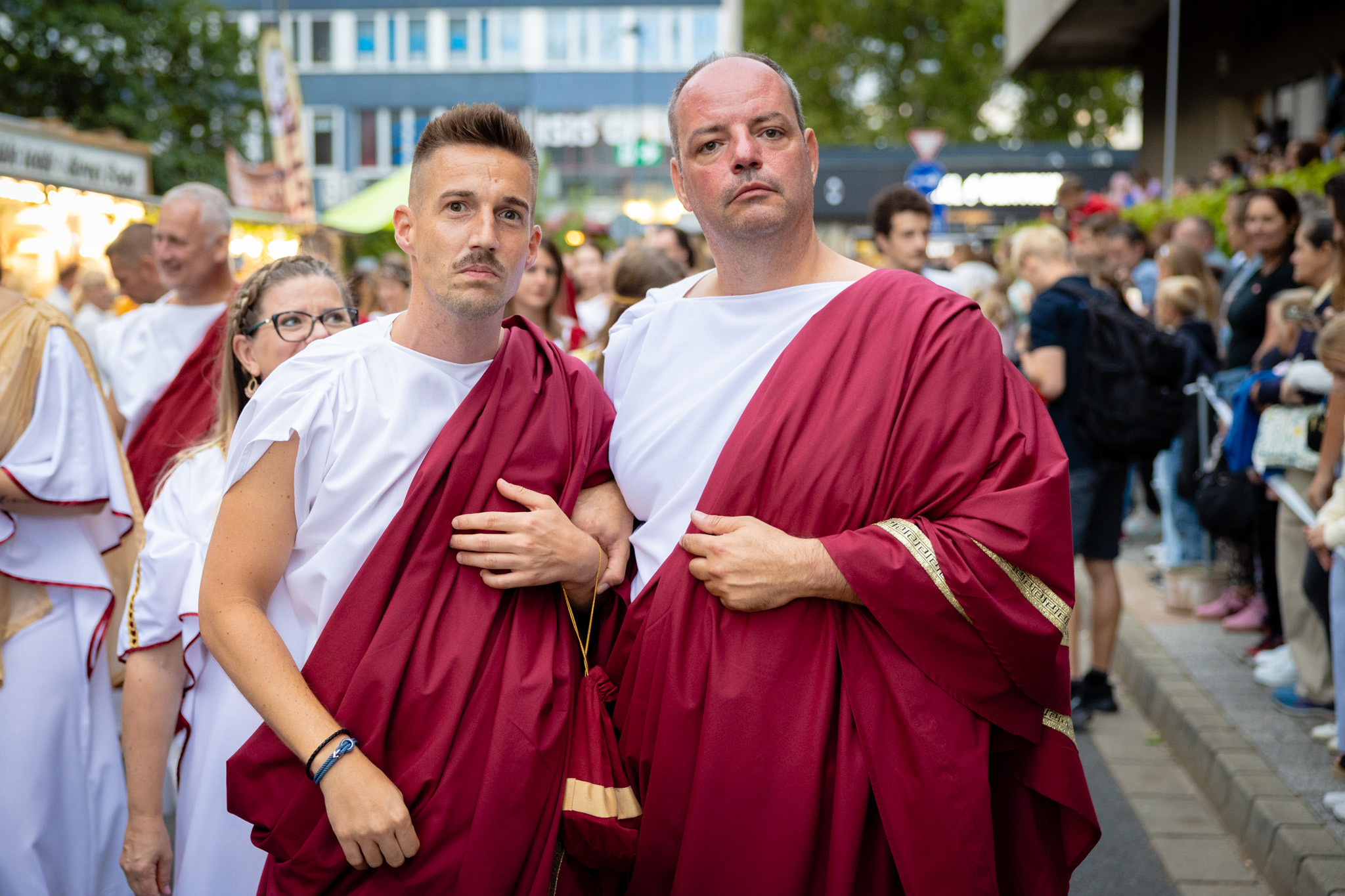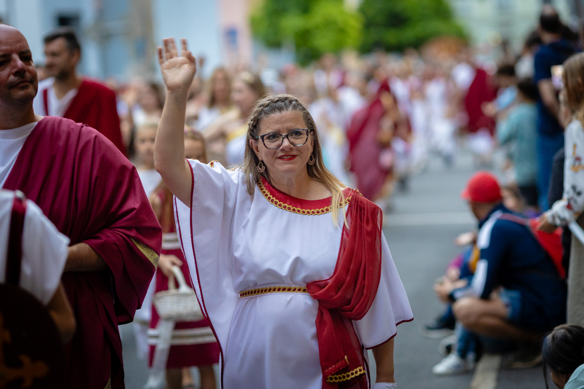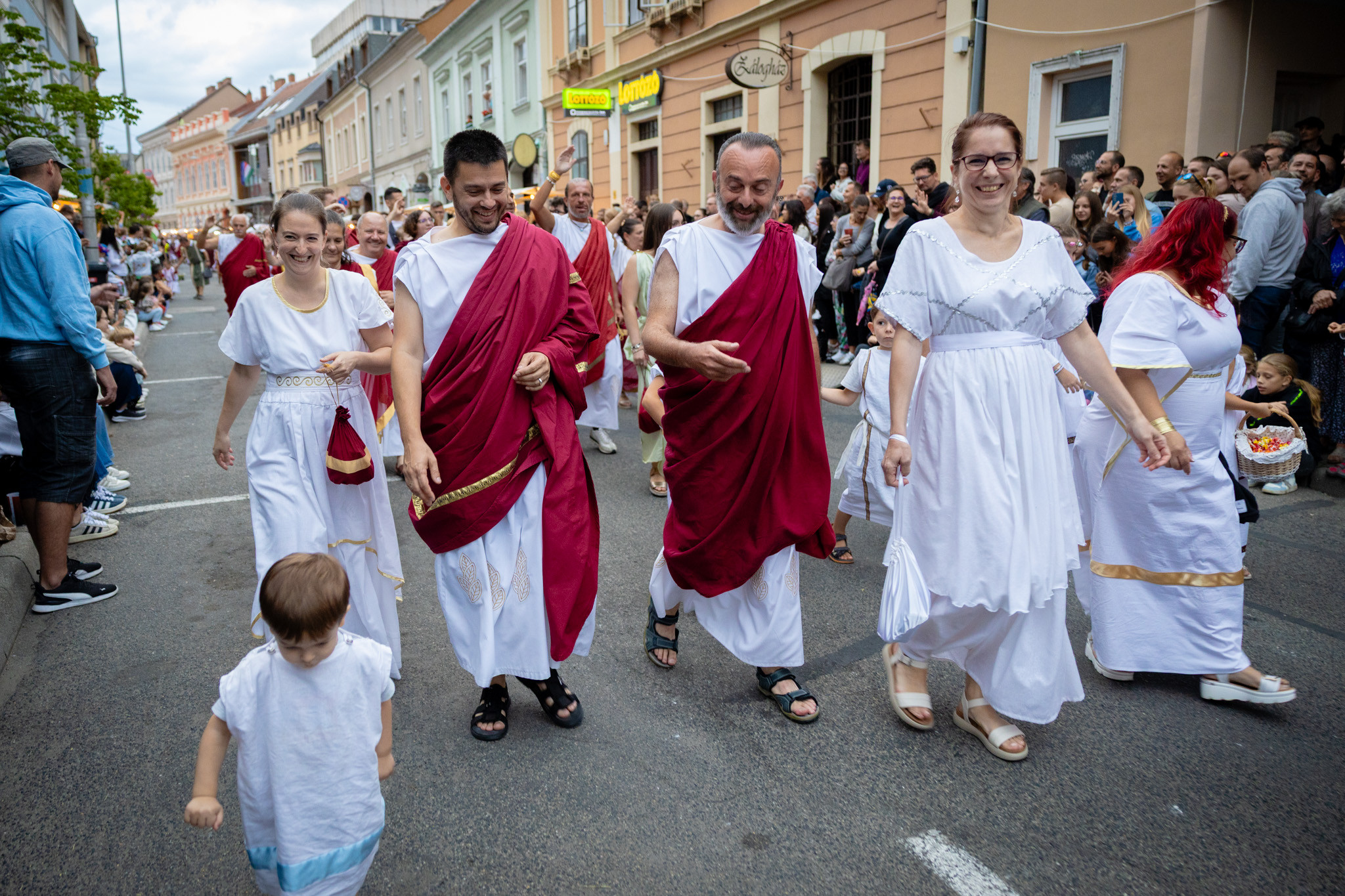Augusztus 23-án, szombaton a Karnevál időkereke kétezer esztendő történelmi korait, a rómaiaktól a második világháborúig terjedő időszak kiemelten fontos szereplőit és eseményeit vonultatta fel a belváros ünnepi kulisszái között, hasonlóan a pénteki felvonuláshoz. A város és Pannónia dicső történetét, híres szülötteit, a magyar történelem emblematikus figuráit felvonultató menetet gólyalábasok, dobosok, zenészek, tűznyelő és tűzfújó mutatványosok, valamint zászlóforgatók produkciói színesítették.