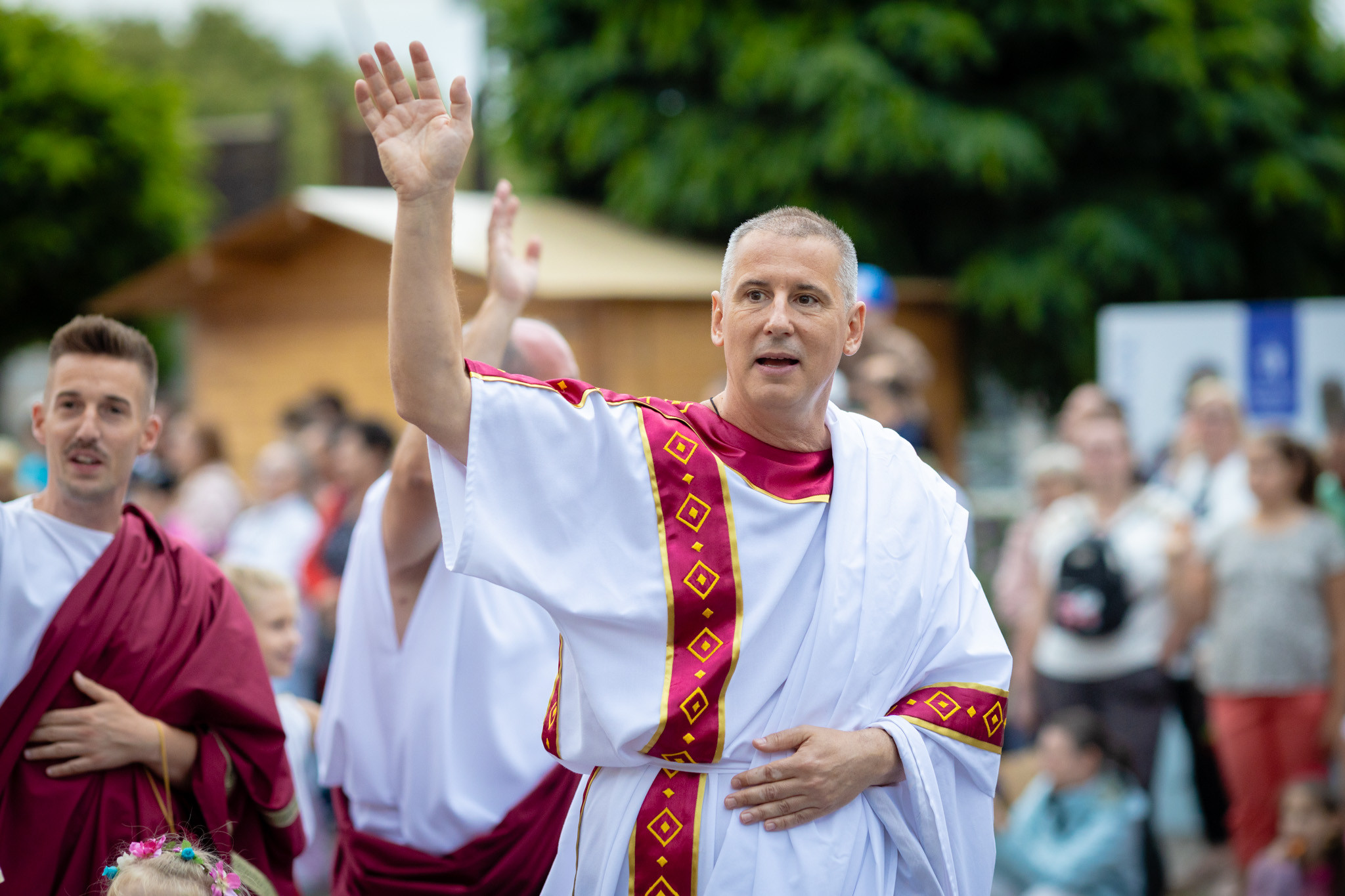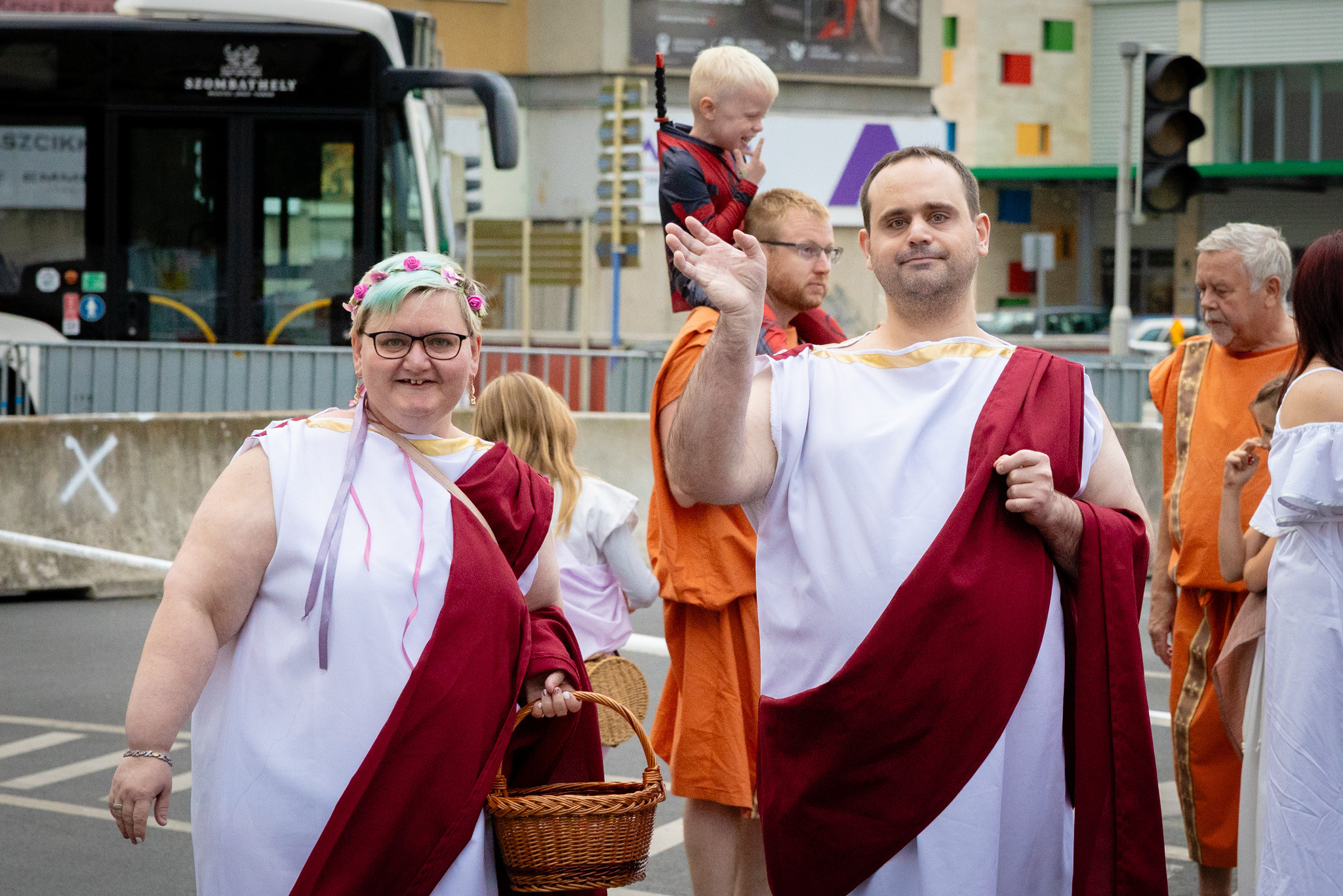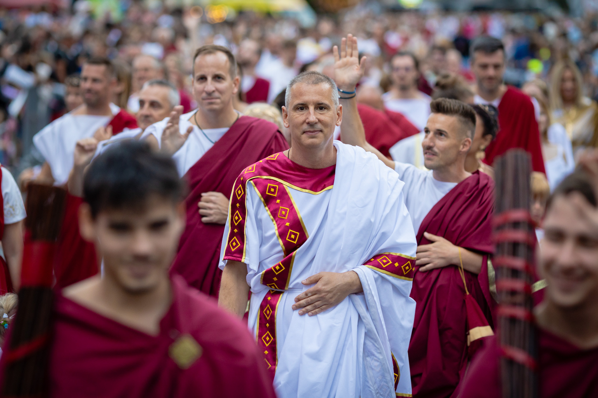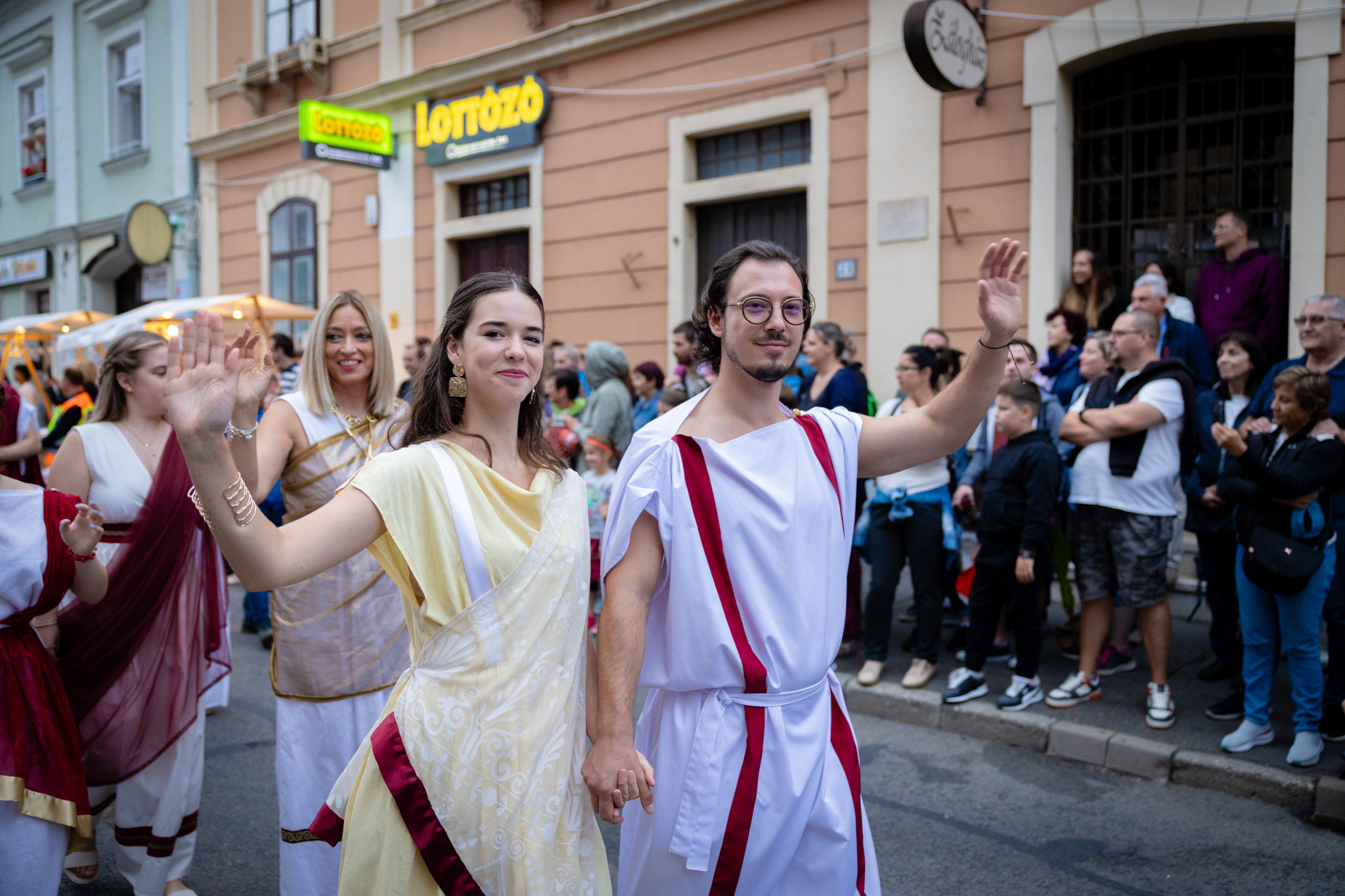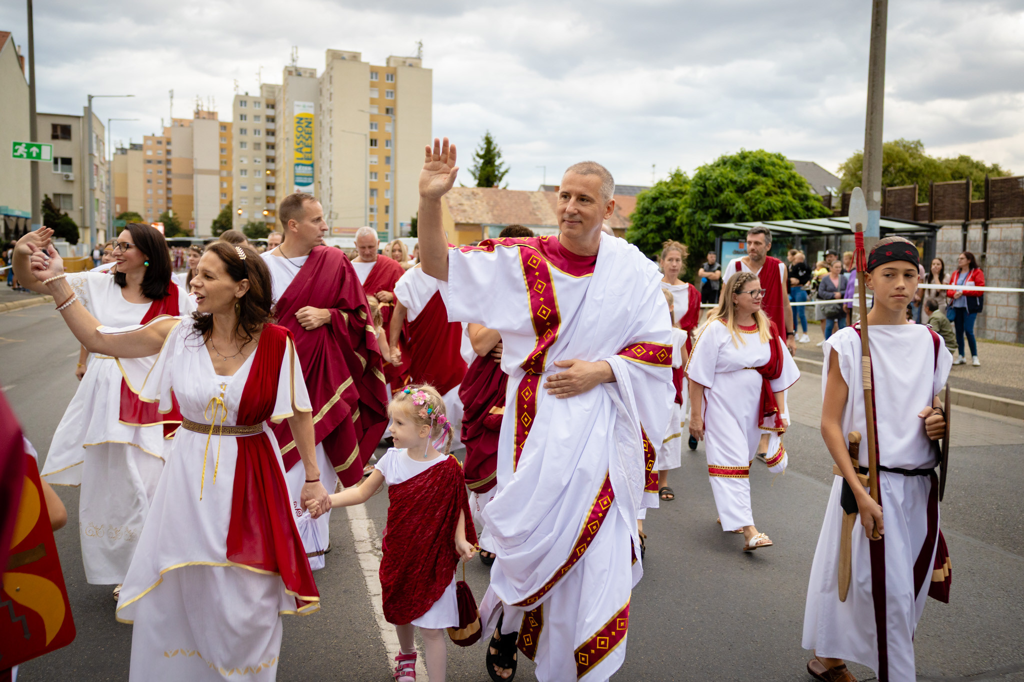Augusztus 23-án, szombaton a Karnevál időkereke kétezer esztendő történelmi korait, a rómaiaktól a második világháborúig terjedő időszak kiemelten fontos szereplőit és eseményeit vonultatta fel a belváros ünnepi kulisszái között, hasonlóan a pénteki felvonuláshoz. A város és Pannónia dicső történetét, híres szülötteit, a magyar történelem emblematikus figuráit felvonultató menetet gólyalábasok, dobosok, zenészek, tűznyelő és tűzfújó mutatványosok, valamint zászlóforgatók produkciói színesítették.