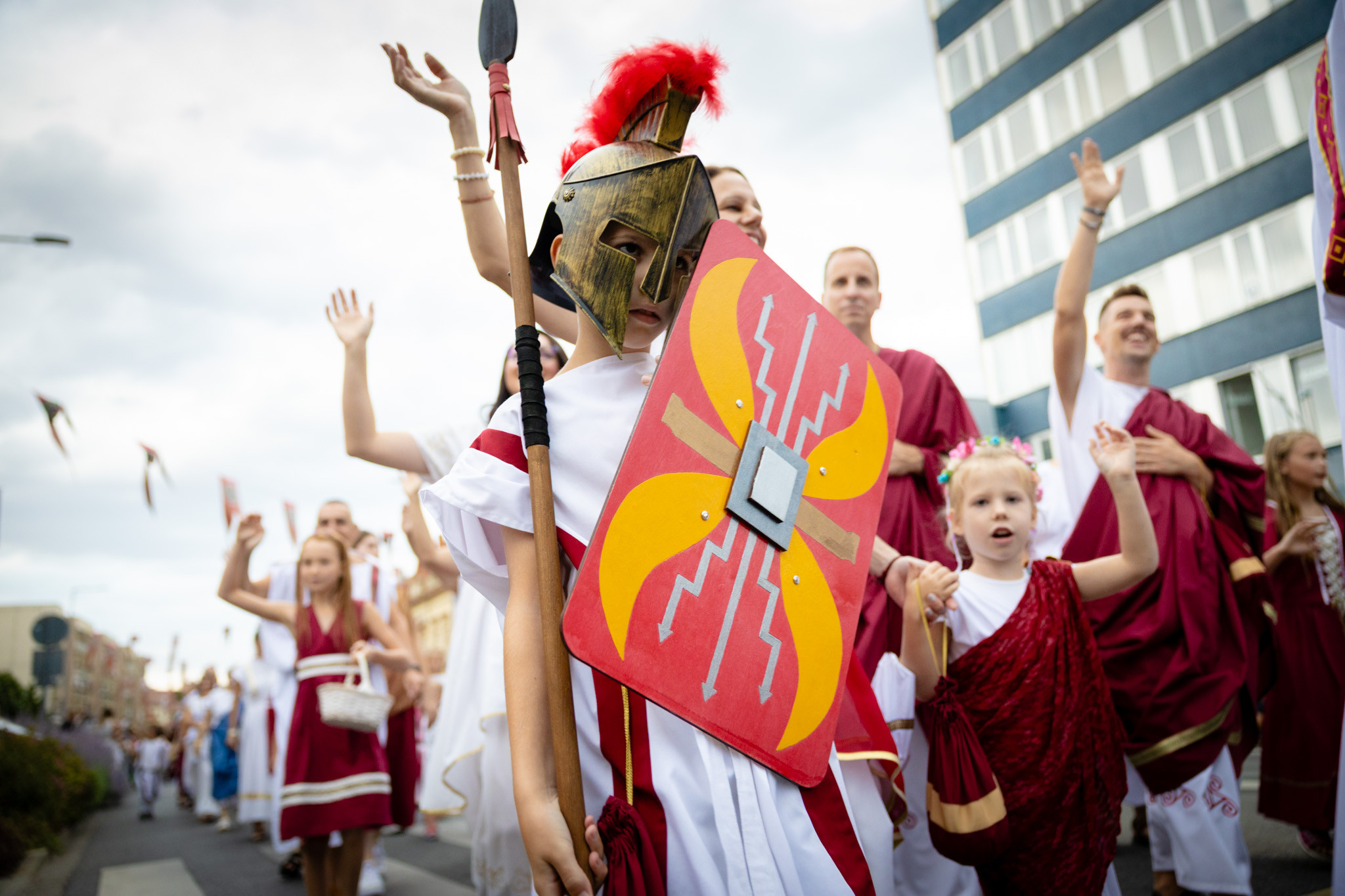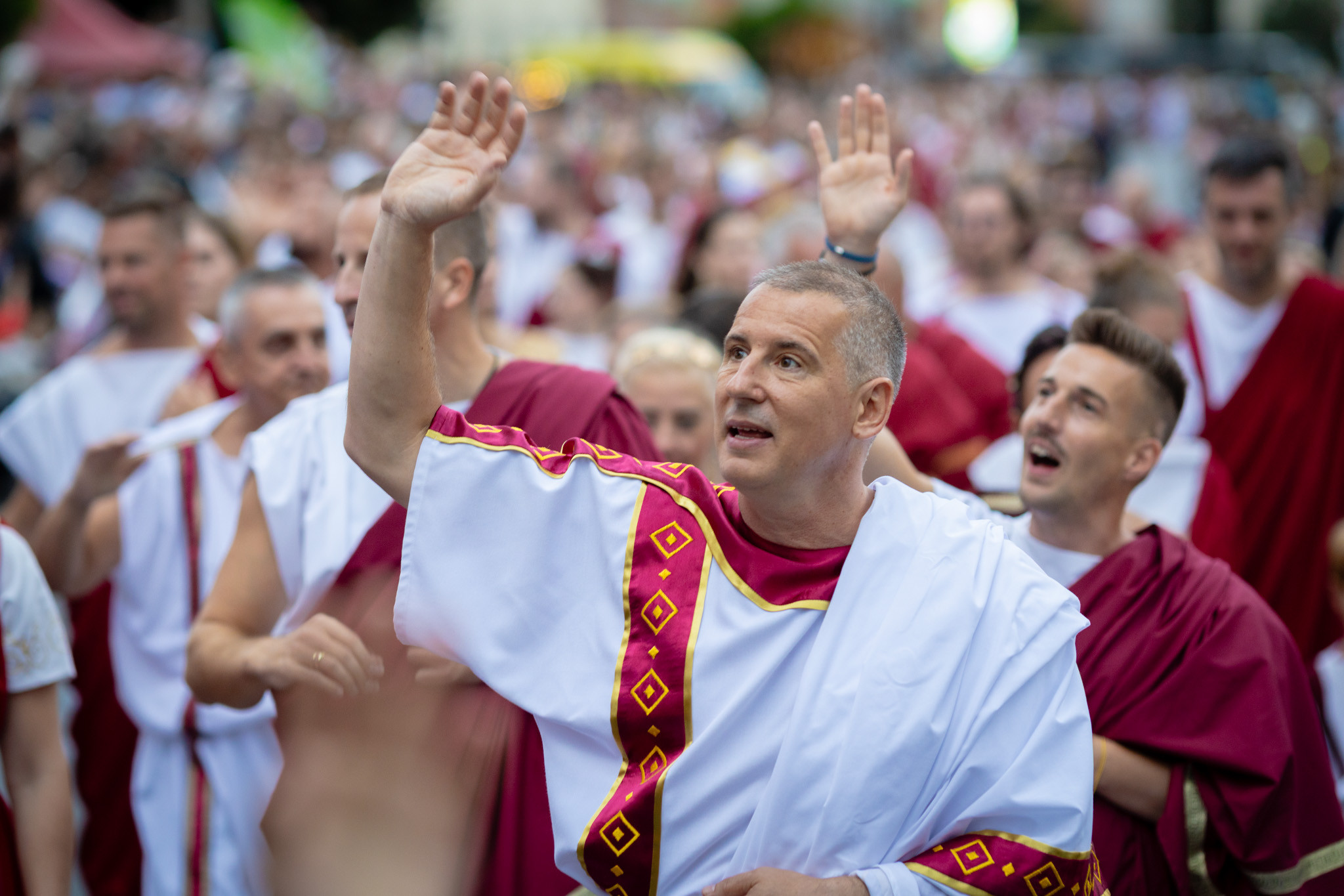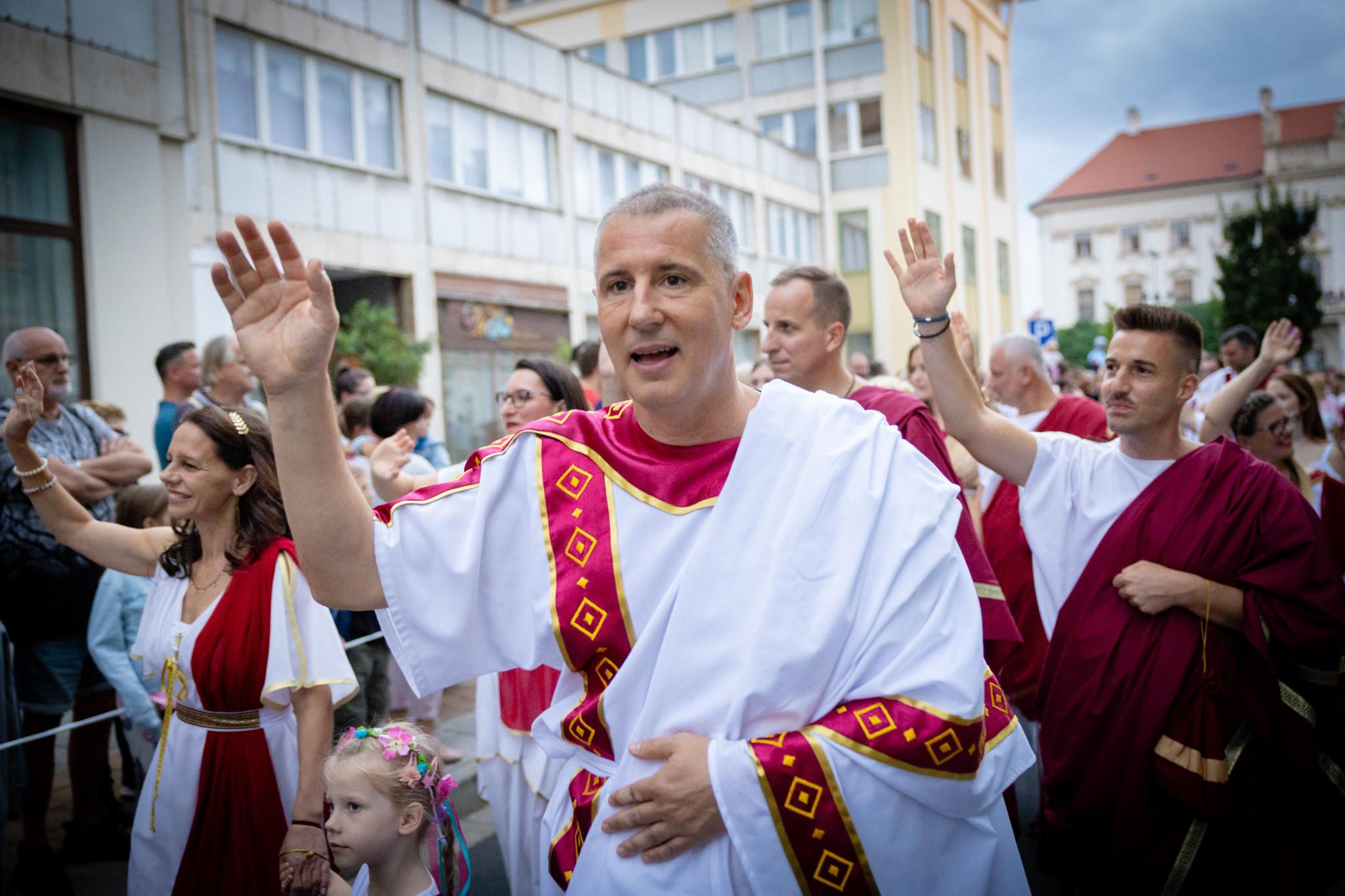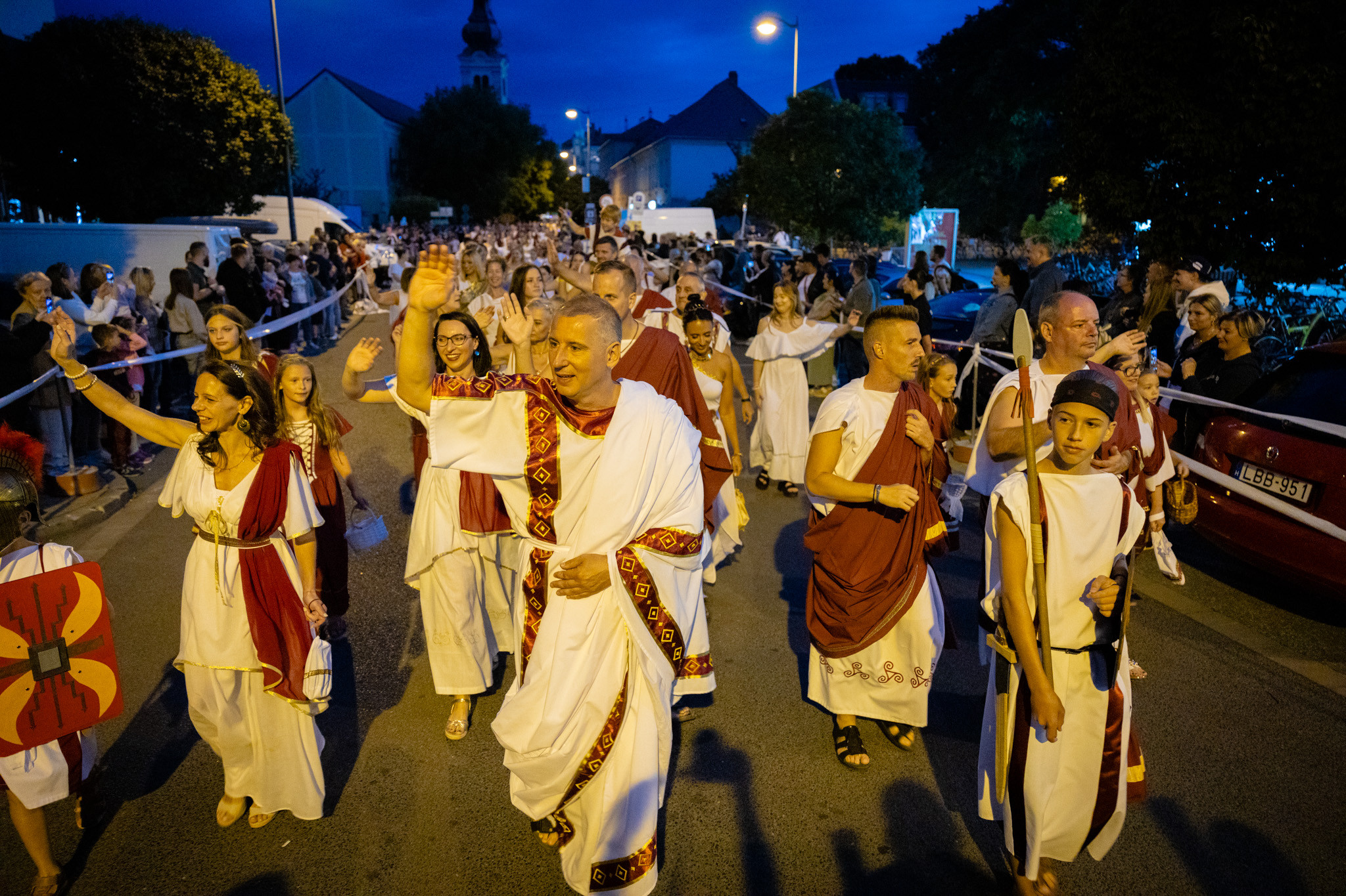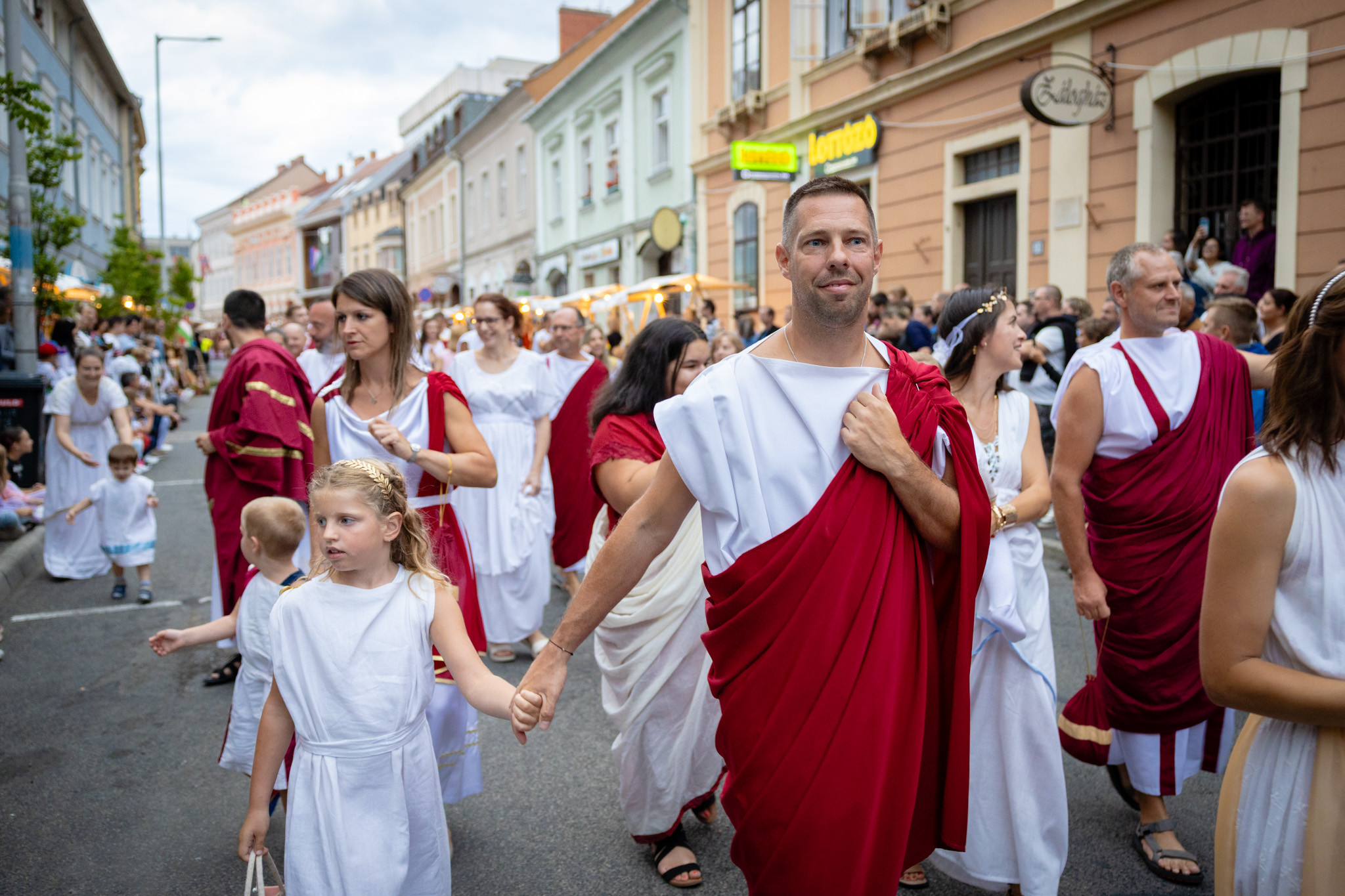 Augusztus 23-án, szombaton a Karnevál időkereke kétezer esztendő történelmi korait, a rómaiaktól a második világháborúig terjedő időszak kiemelten fontos szereplőit és eseményeit vonultatta fel a belváros ünnepi kulisszái között, hasonlóan a pénteki felvonuláshoz. A város és Pannónia dicső történetét, híres szülötteit, a magyar történelem emblematikus figuráit felvonultató menetet gólyalábasok, dobosok, zenészek, tűznyelő és tűzfújó mutatványosok, valamint zászlóforgatók produkciói színesítették.