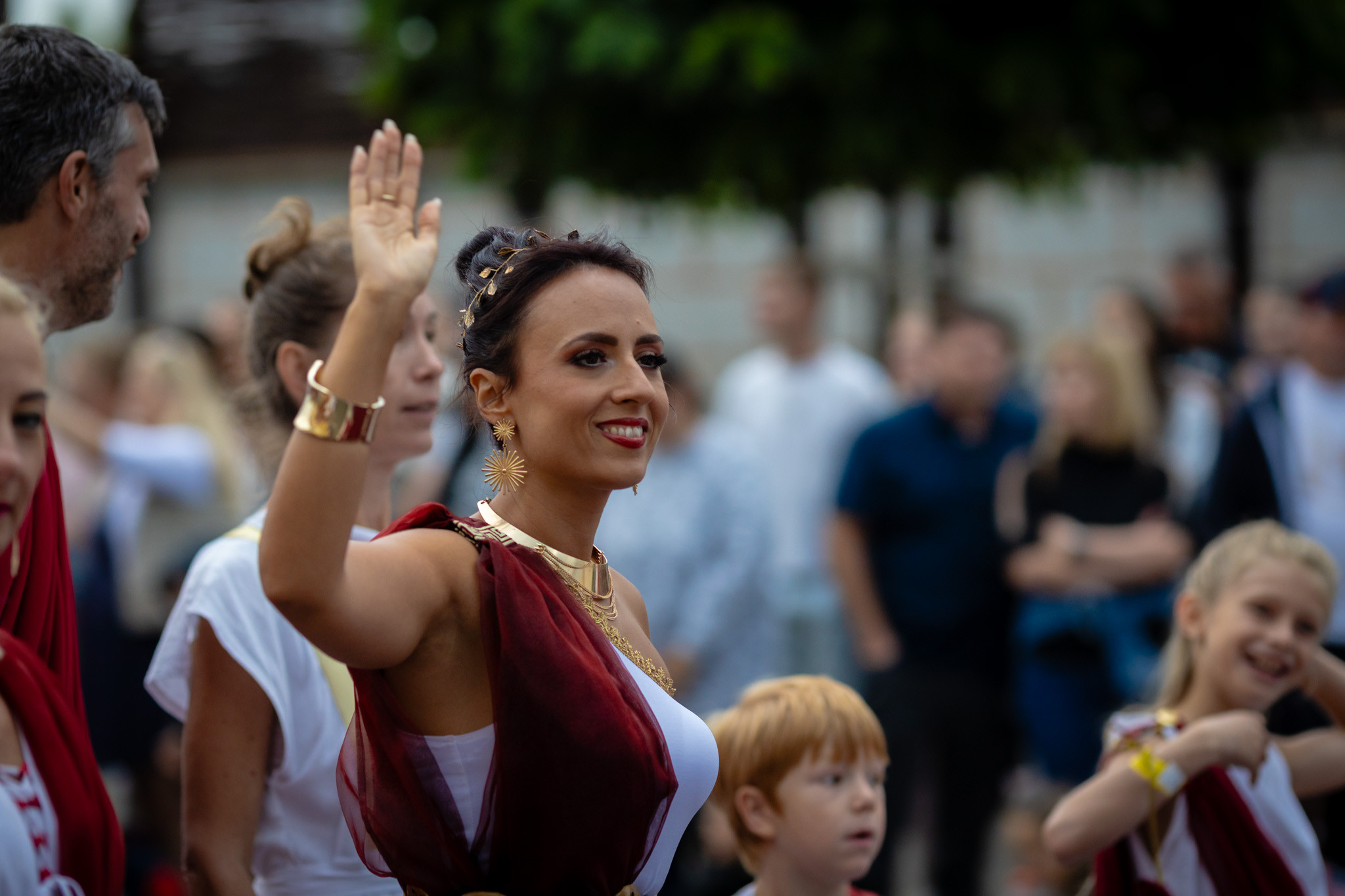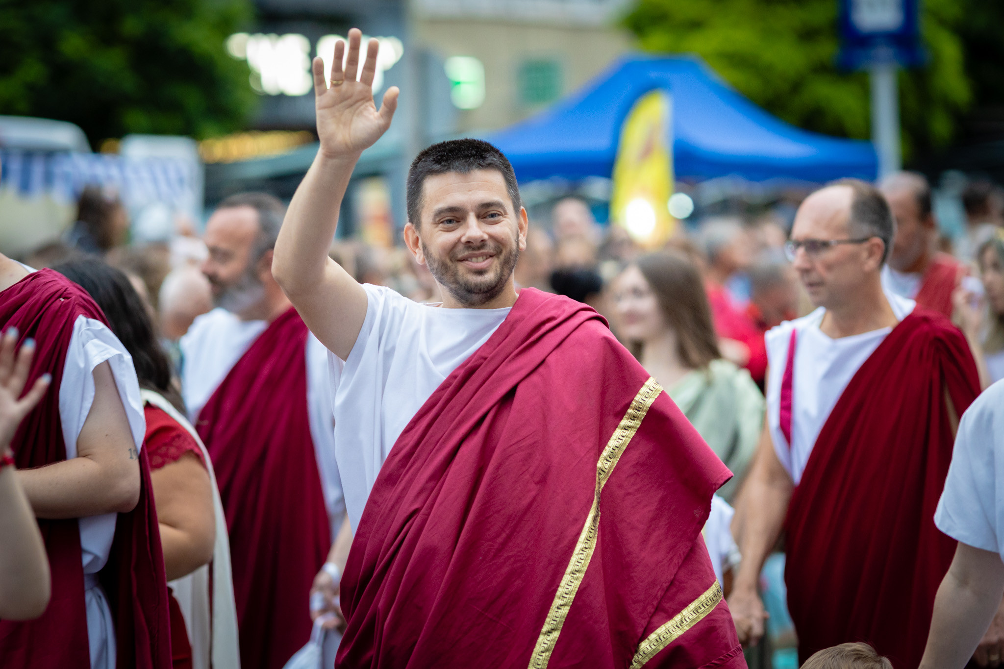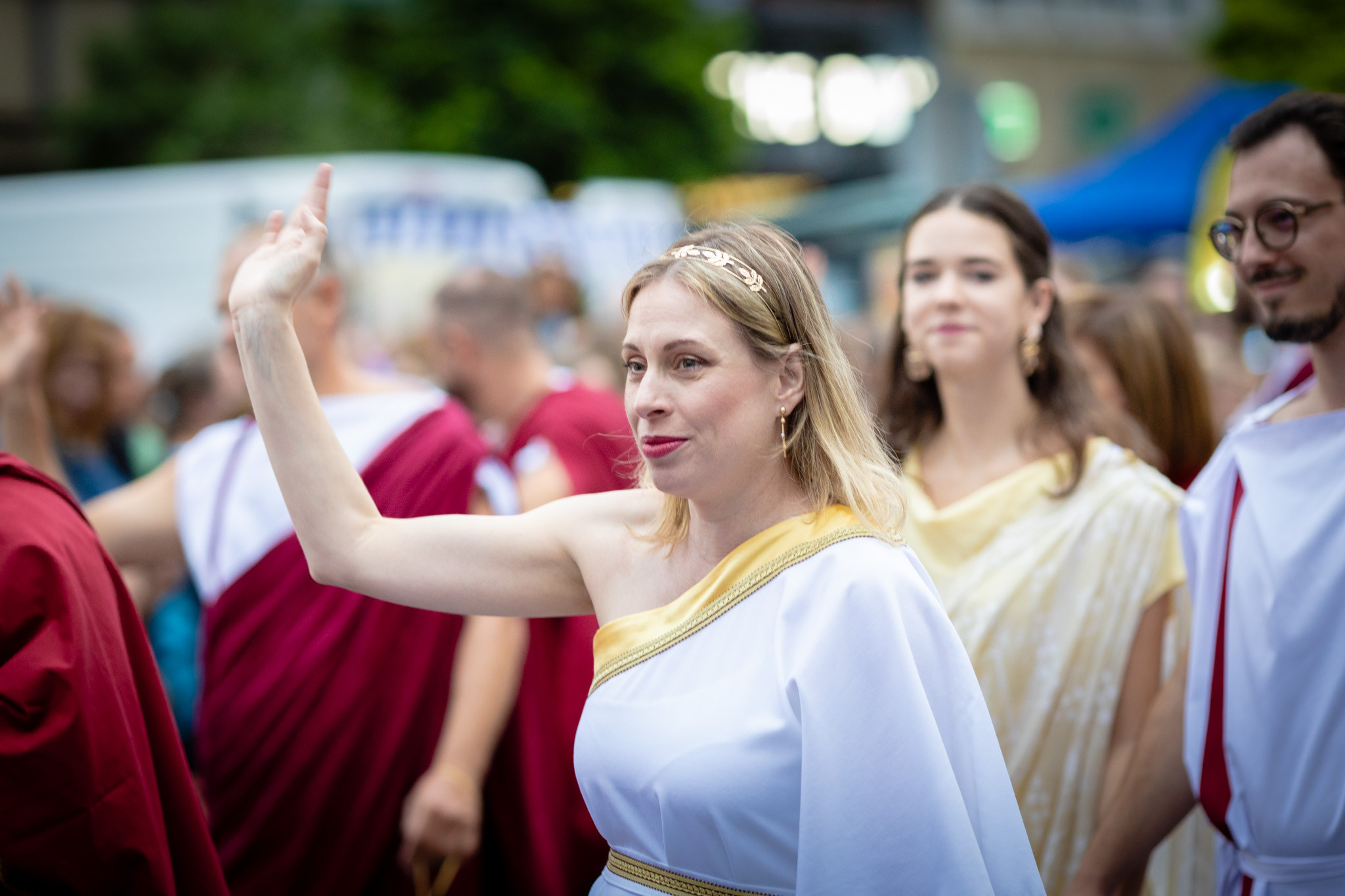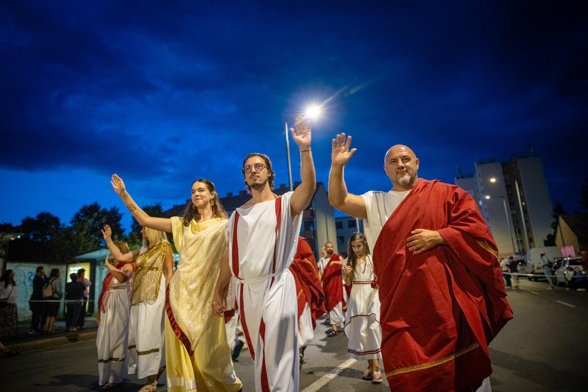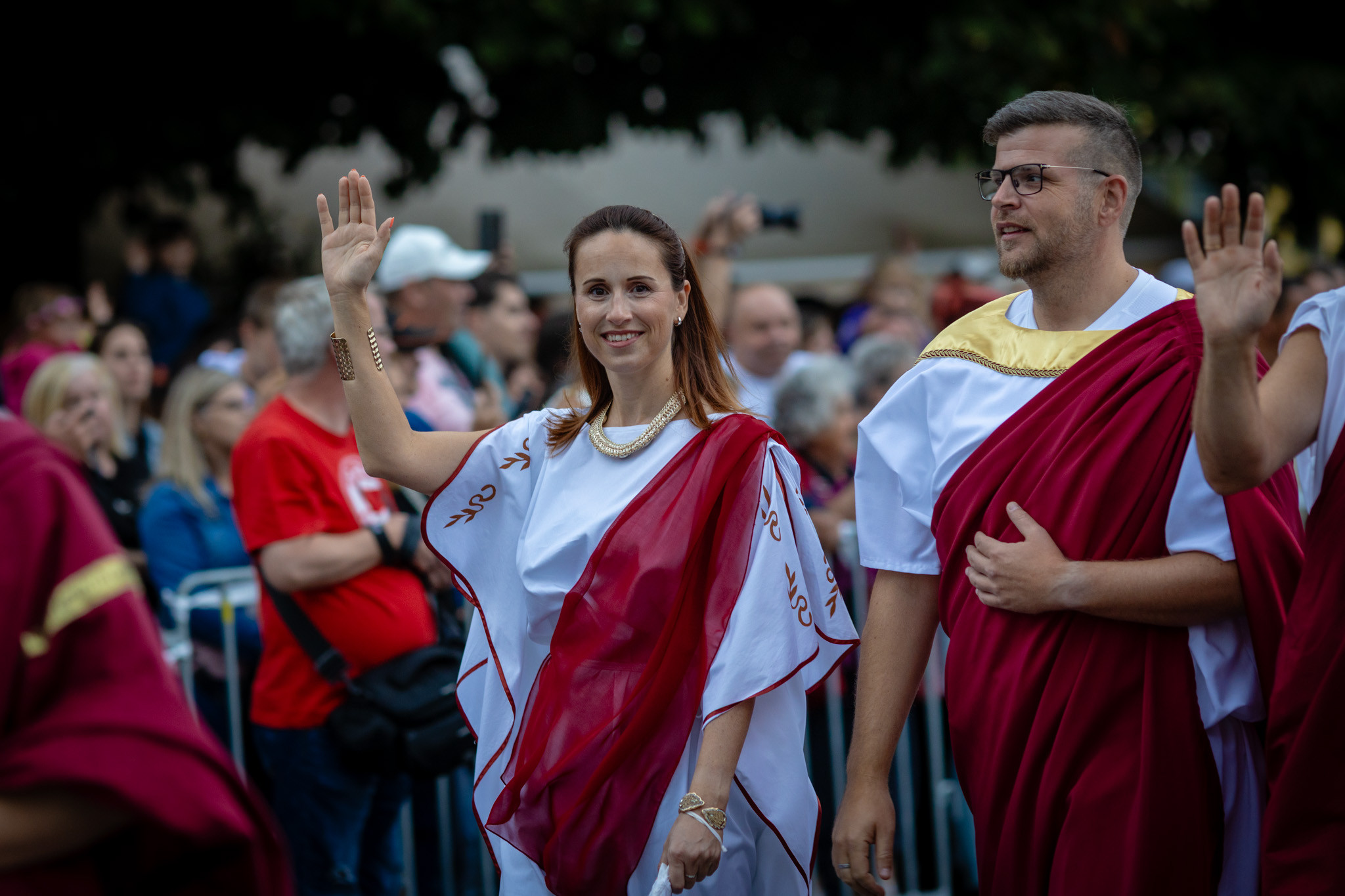 Augusztus 23-án, szombaton a Karnevál időkereke kétezer esztendő történelmi korait, a rómaiaktól a második világháborúig terjedő időszak kiemelten fontos szereplőit és eseményeit vonultatta fel a belváros ünnepi kulisszái között, hasonlóan a pénteki felvonuláshoz. A város és Pannónia dicső történetét, híres szülötteit, a magyar történelem emblematikus figuráit felvonultató menetet gólyalábasok, dobosok, zenészek, tűznyelő és tűzfújó mutatványosok, valamint zászlóforgatók produkciói színesítették.