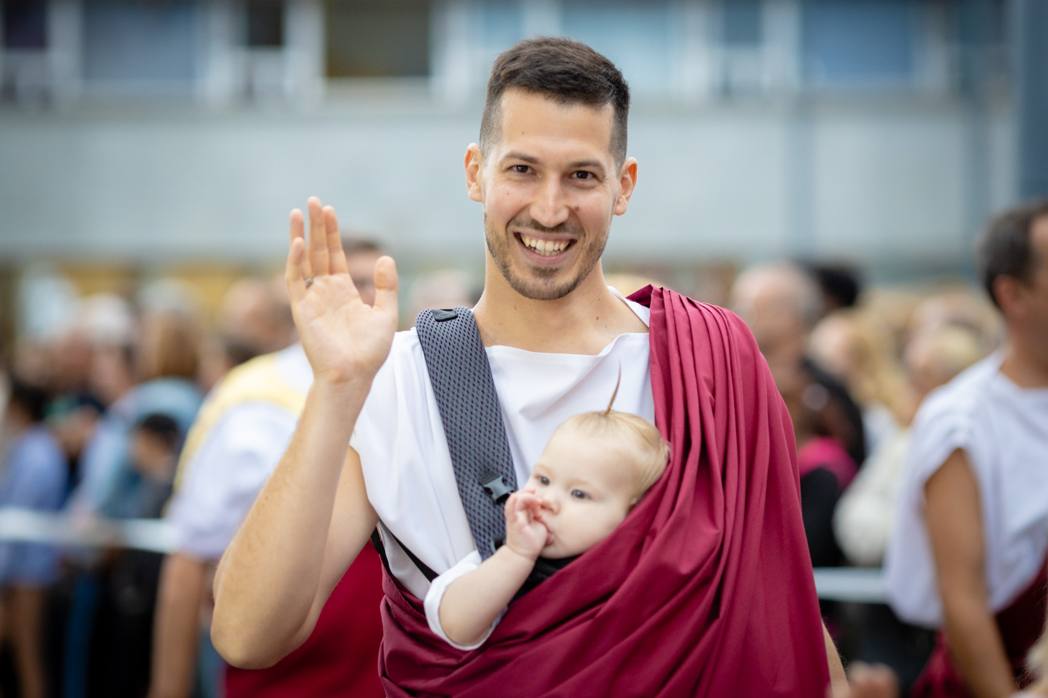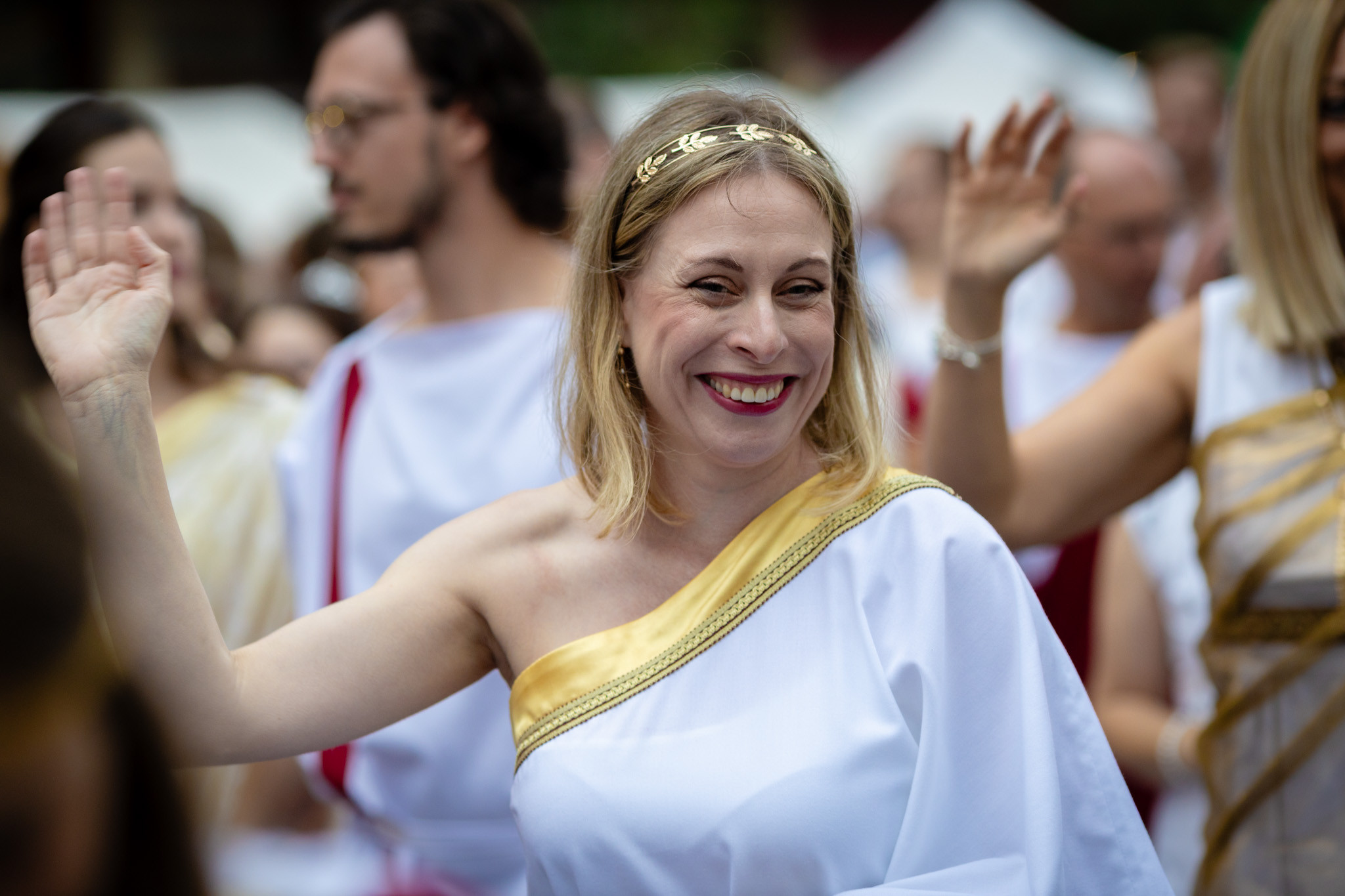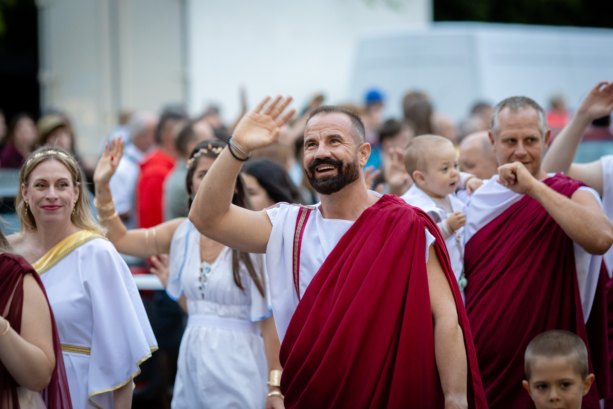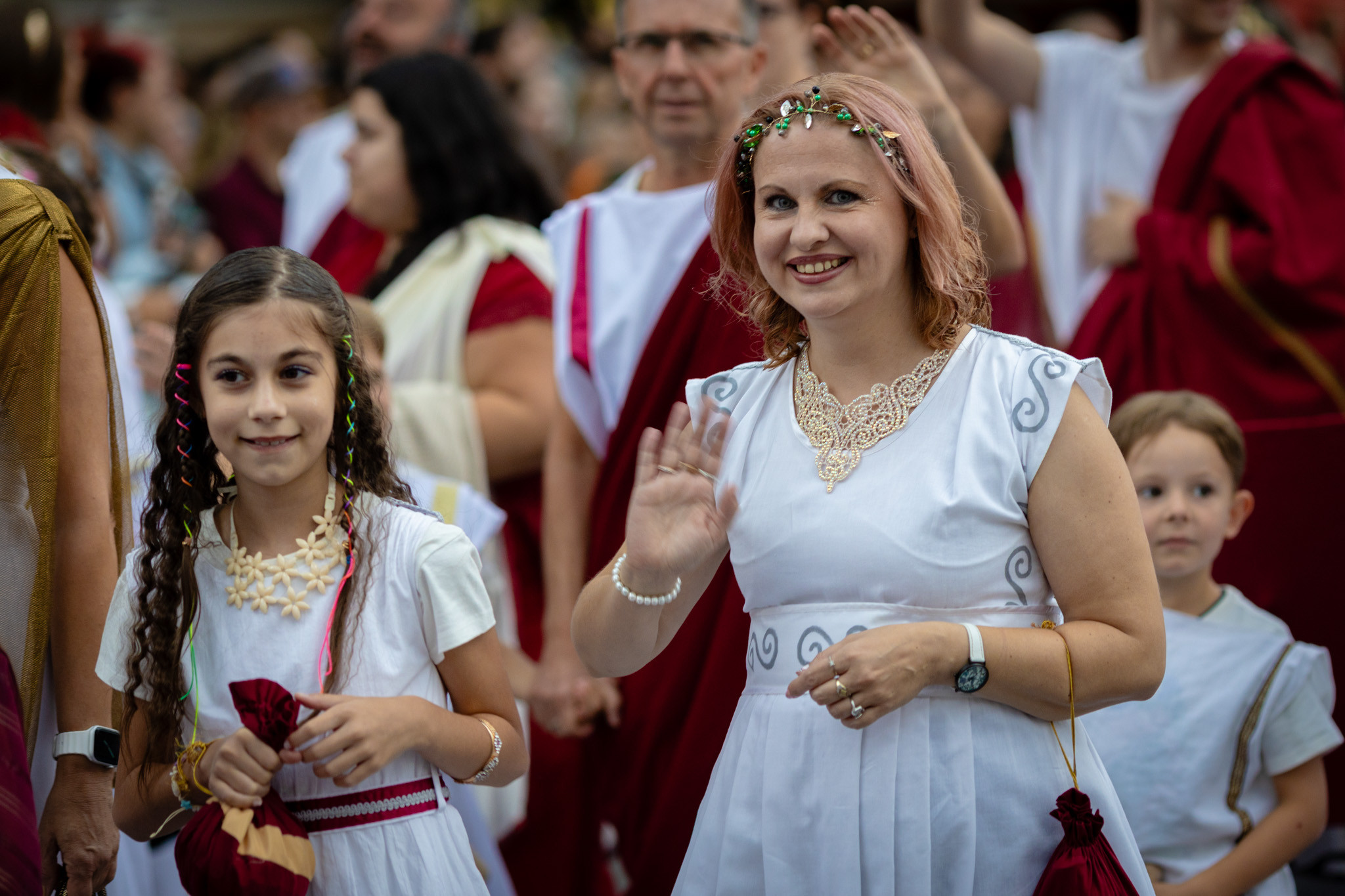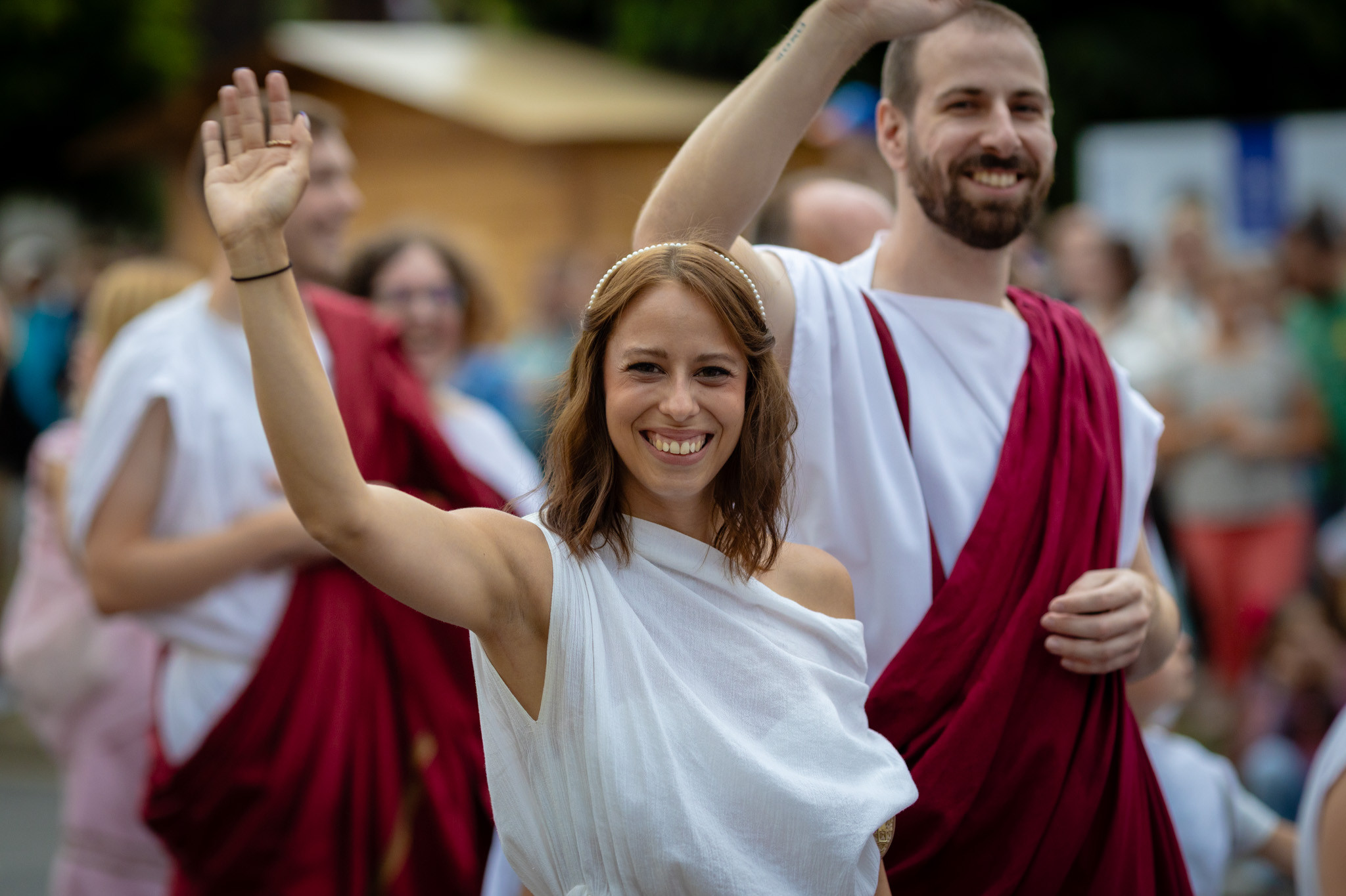 Augusztus 23-án, szombaton a Karnevál időkereke kétezer esztendő történelmi korait, a rómaiaktól a második világháborúig terjedő időszak kiemelten fontos szereplőit és eseményeit vonultatta fel a belváros ünnepi kulisszái között, hasonlóan a pénteki felvonuláshoz. A város és Pannónia dicső történetét, híres szülötteit, a magyar történelem emblematikus figuráit felvonultató menetet gólyalábasok, dobosok, zenészek, tűznyelő és tűzfújó mutatványosok, valamint zászlóforgatók produkciói színesítették.