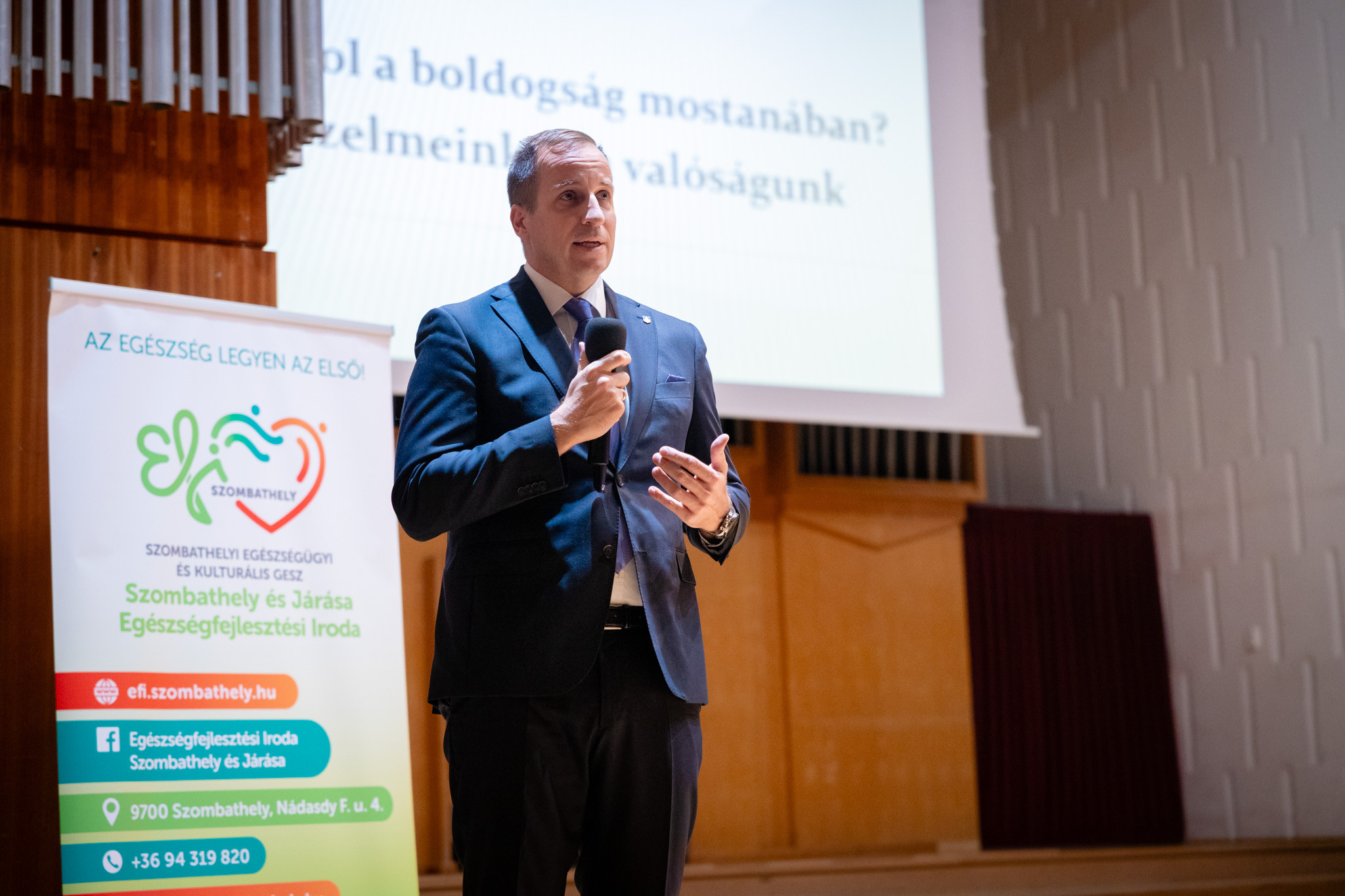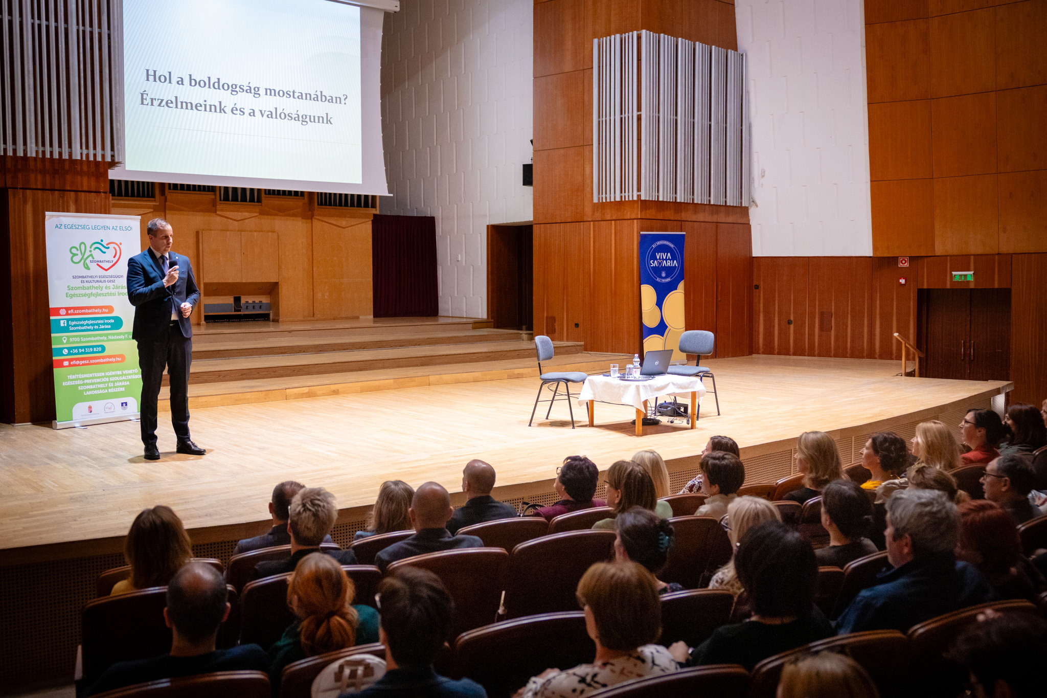 A XXIX. Városi Egészségnap alkalmából az Egészségfejlesztési Iroda Szombathely és Járása (EFI) és Szombathely Önkormányzata szervezésében október 10-én napközben mobil egészségügyi szűrőállomás fogadta az érdeklődőket a városháza előtt, délután pedig Tari Annamária pszichoanalitikus „Hol a boldogság mostanában? AI és az életünk” című előadását hallgathatták meg a Bartók Teremben. Az eseményeken részt vett, utóbbin köszöntőt mondott dr. László Győző, egészségügyért is felelős alpolgármester.