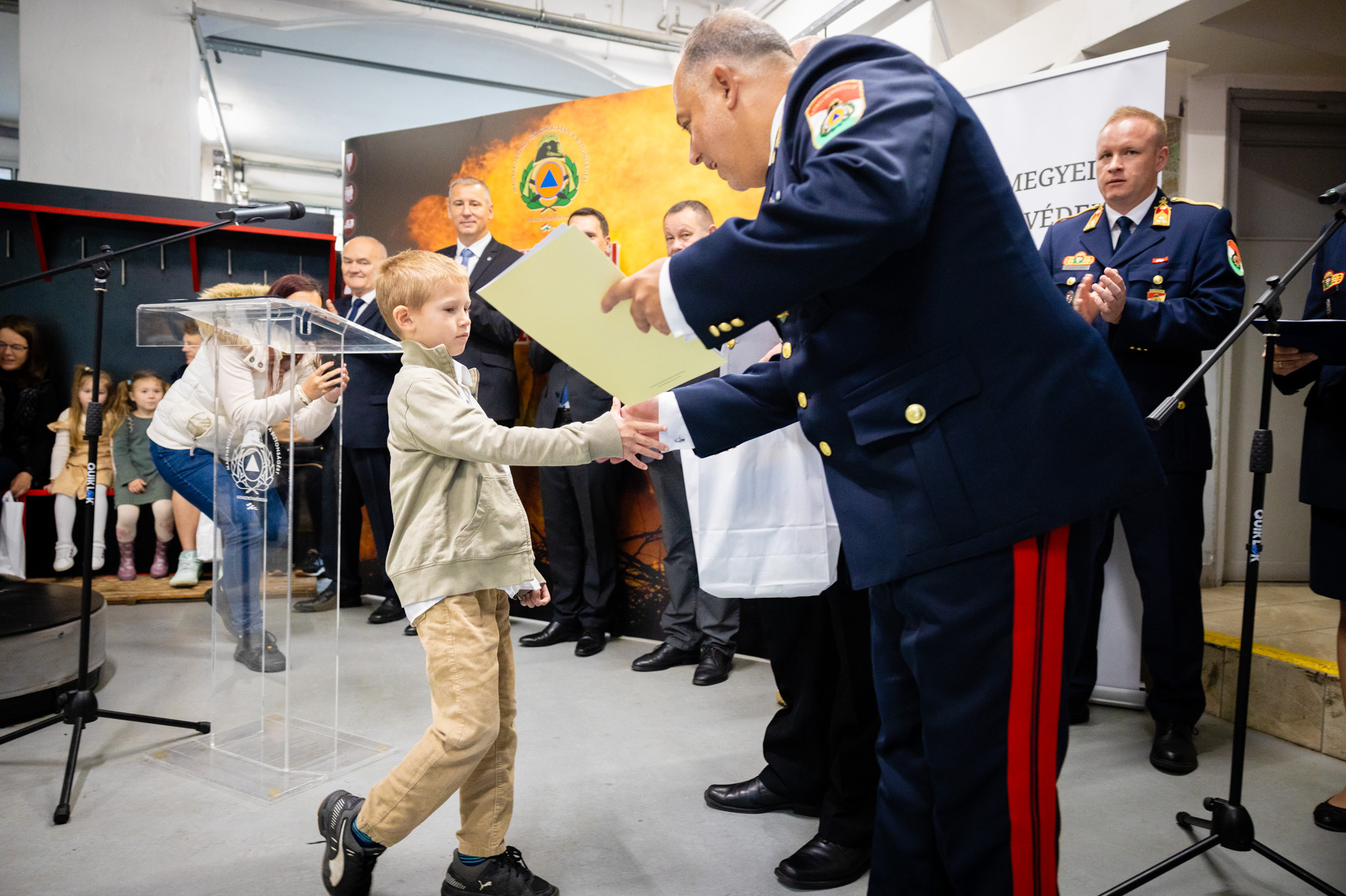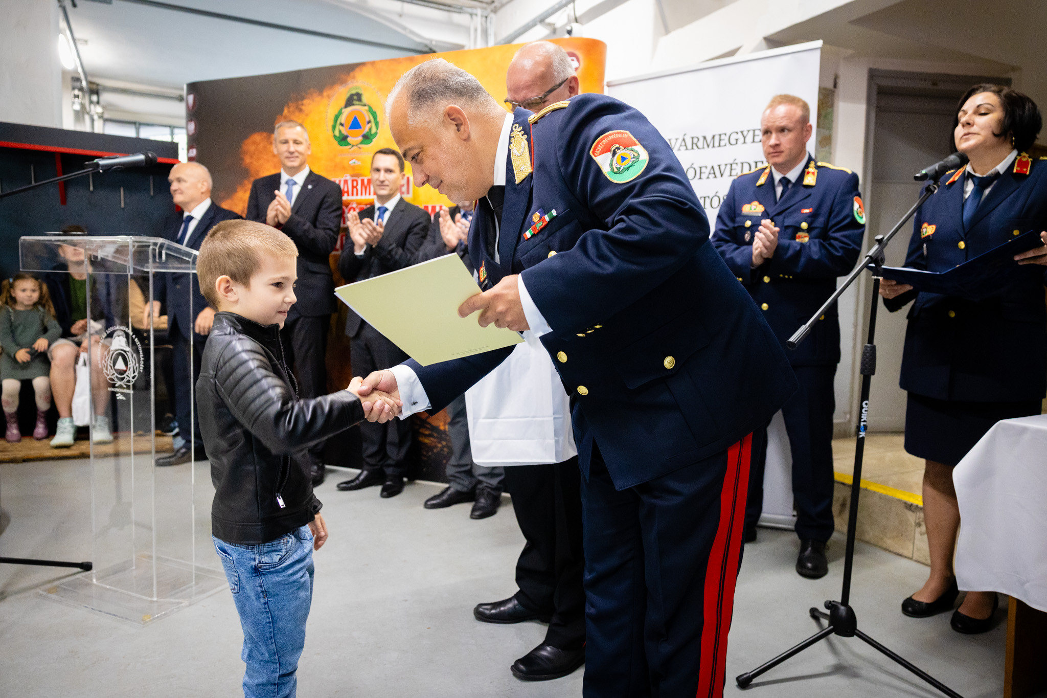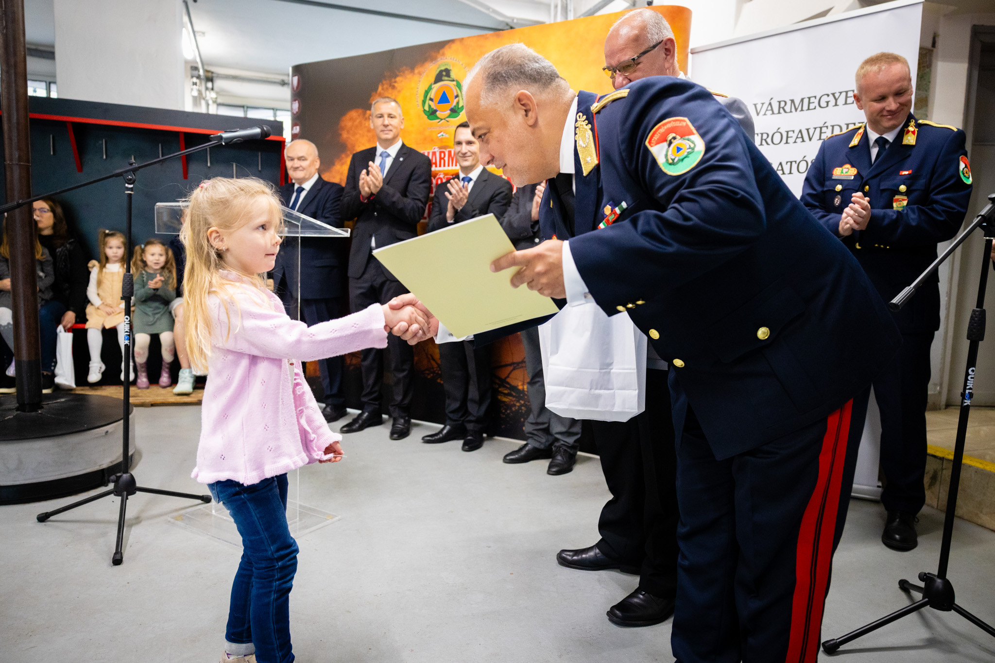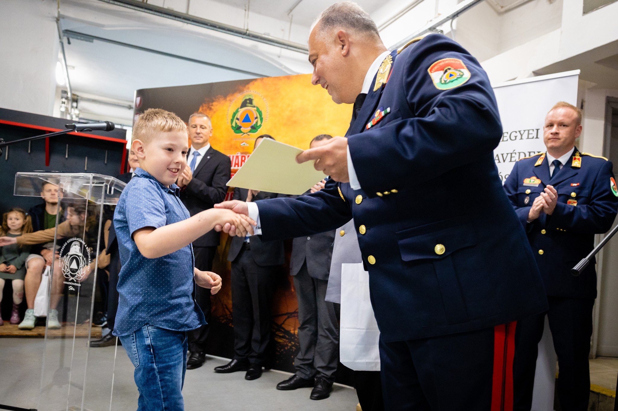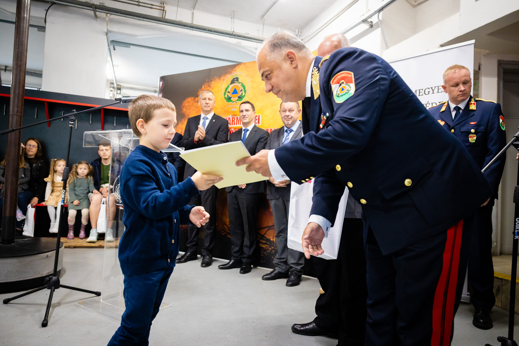 Dr. Nemény András a város nevében kimagasló szakmai munkájáért és szolgálatának kiváló ellátásáért elismerésben részesítette Kalamár Zoltán beosztott tűzoltót, Németh Csaba János különleges szerkezelőt, Stampf Ferenc beosztott tűzoltót, Hajnal László beosztott tűzoltót, Szabó Ferenc János beosztott tűzoltót, valamint Kovács Attila beosztott tűzoltót.