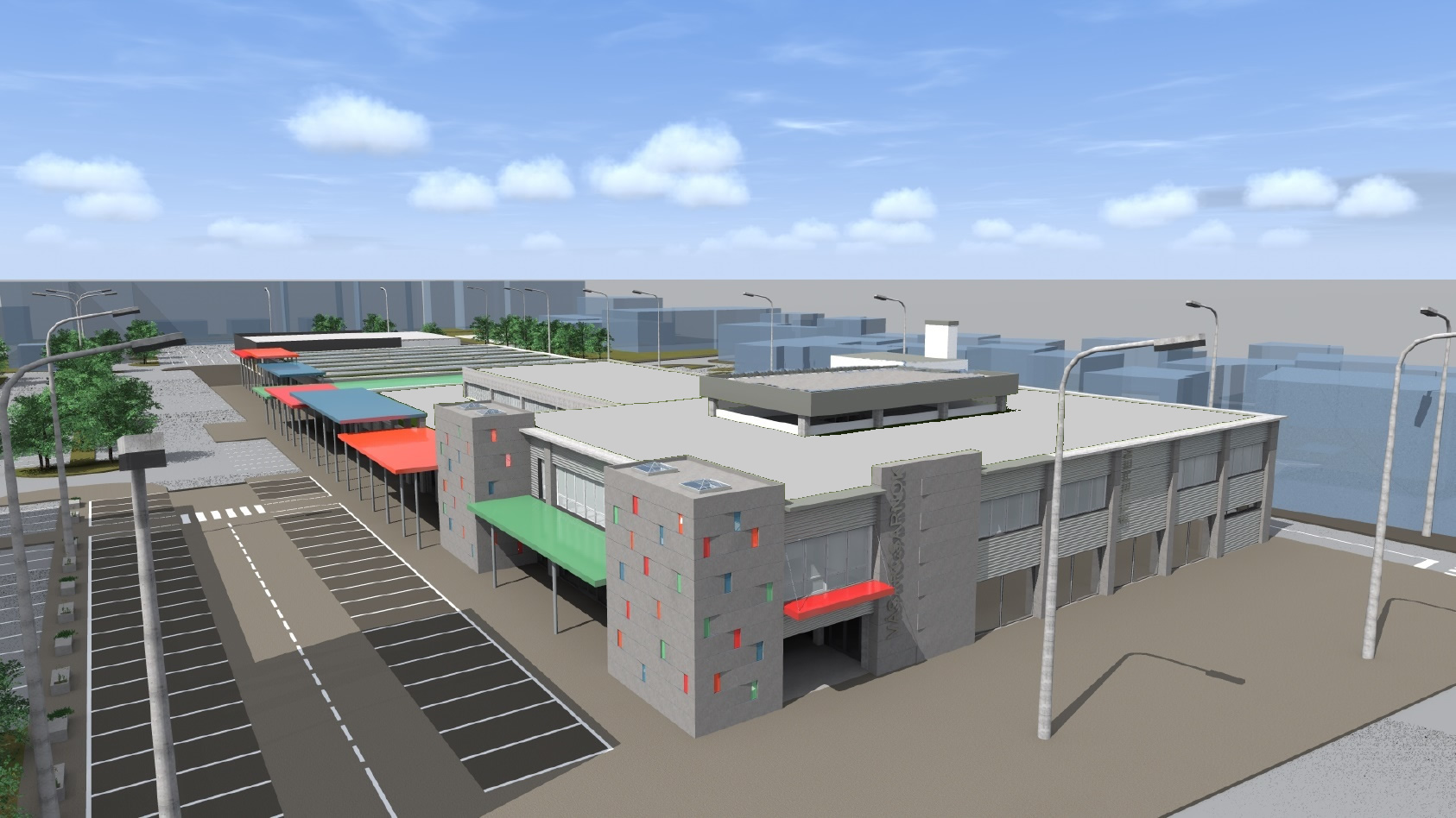 A felújítás az Önkormányzat tulajdonát képező fejépületet, első és hátsó csarnokot érintette. A fejlesztés részeként megtörtént a csarnokok tetőszigetelése, a felülvilágítók felújítása, valamint a nyílászárók cseréje. Megújult mindkét csarnok járófelülete és új belső üzletek kerültek kialakításra. Megtörtént az épületgépészet korszerűsítése és a komplexum teljes belső festése. Megújult a hulladékgazdálkodás, komposztálás, zárt és szelektív hulladékgyűjtés került kialakításra. Az elavult vizesblokkok is átépítésre kerültek.